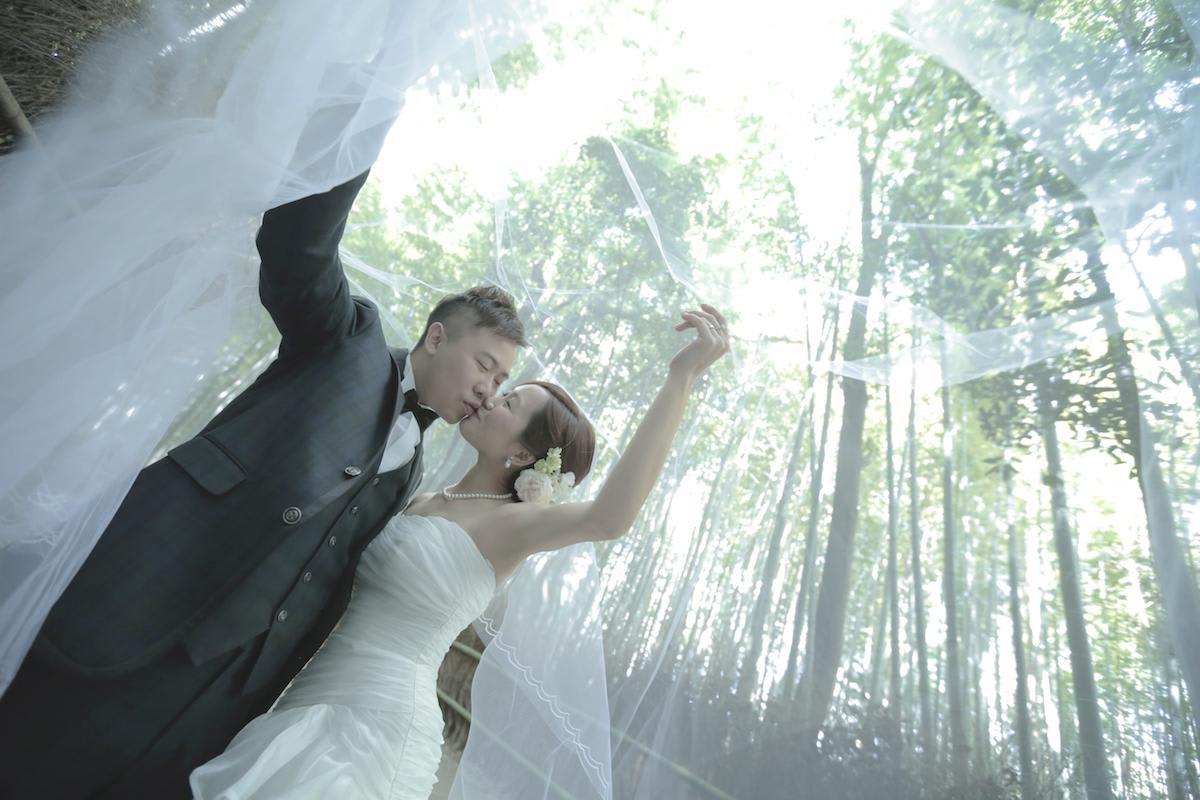 本格日本庭園を再現したスタジオで撮る 和装の結婚写真