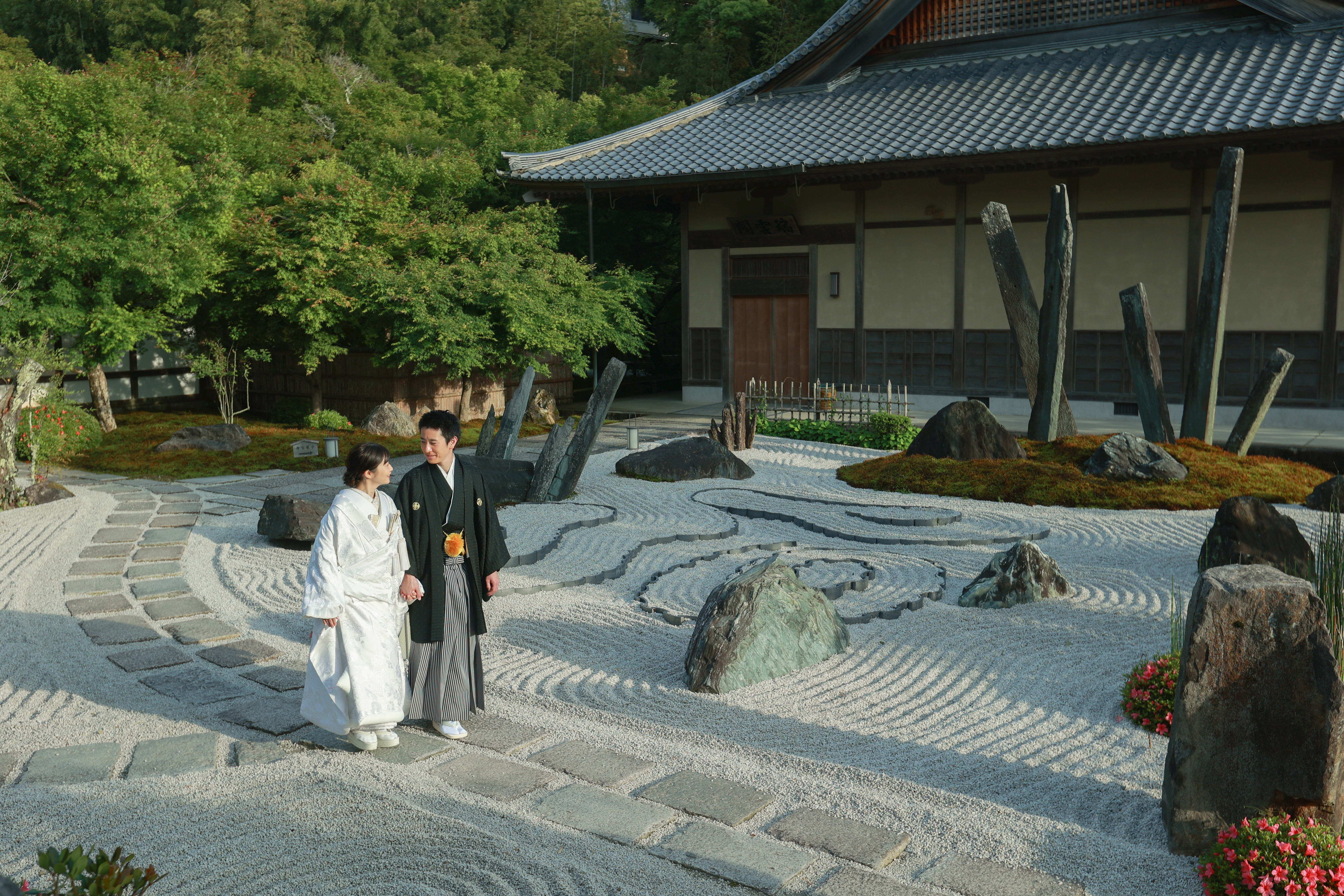 本格日本庭園を再現したスタジオで撮る 和装の結婚写真