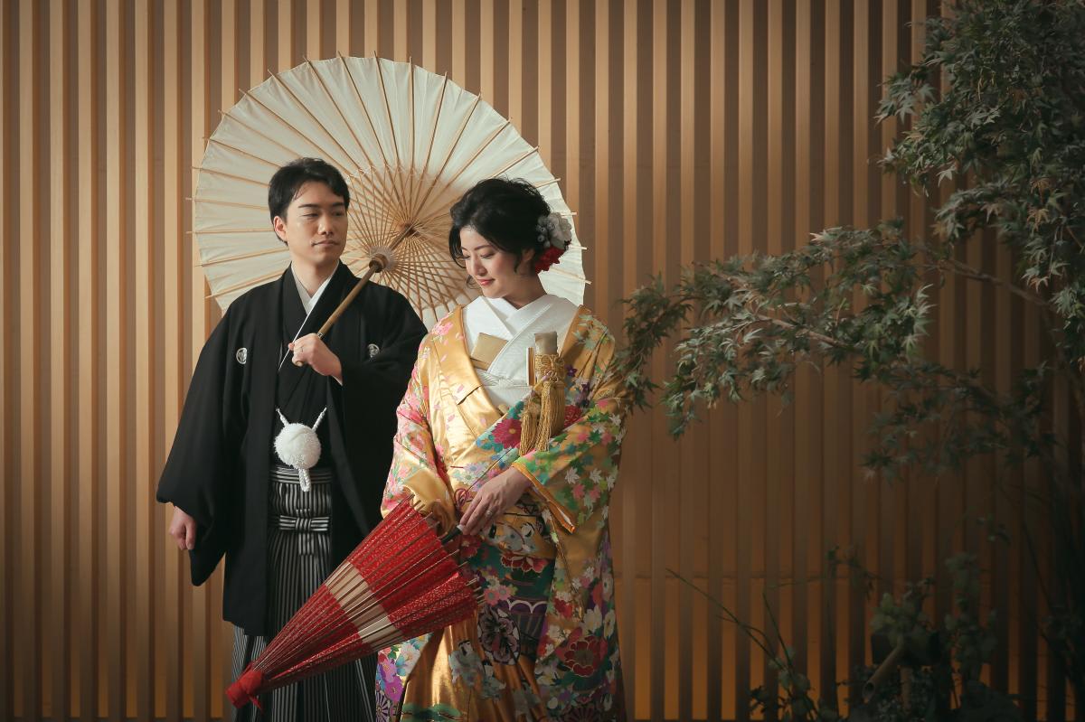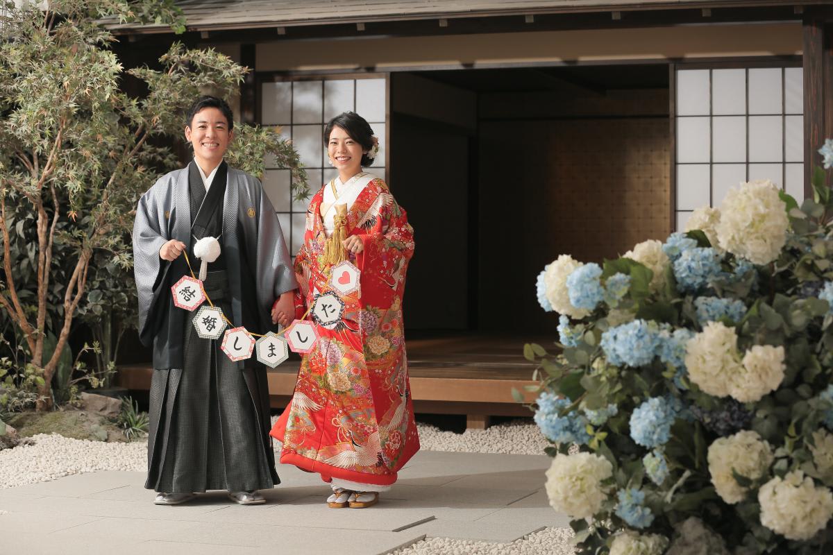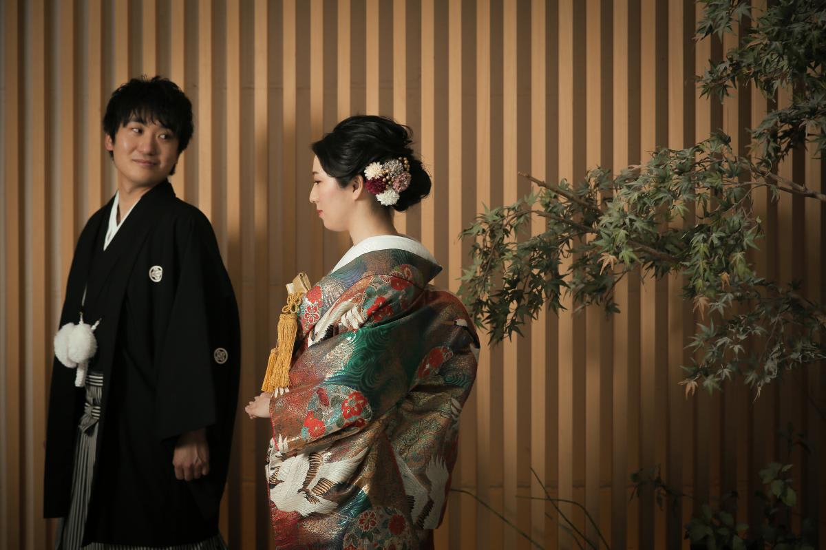 本格日本庭園を再現したスタジオで撮る 和装の結婚写真