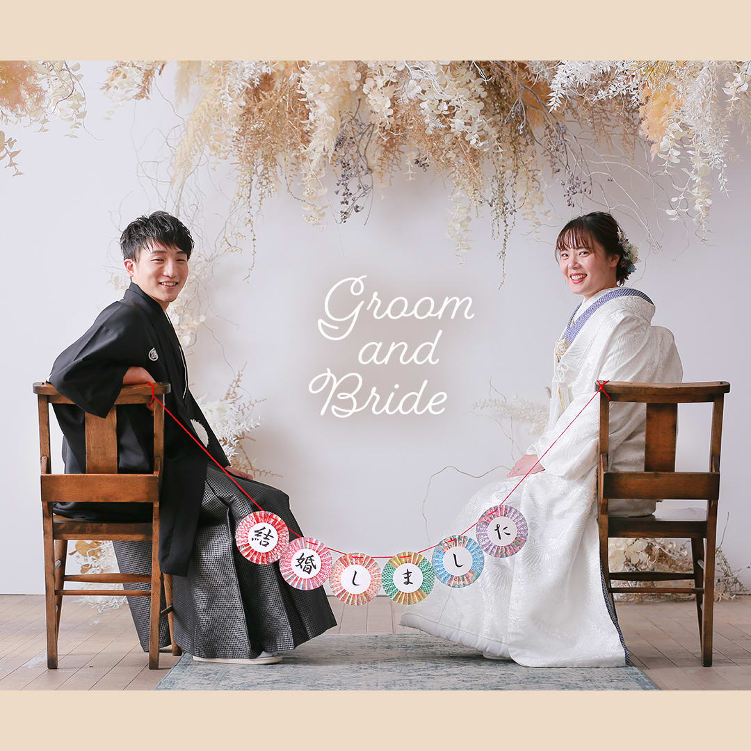 本格日本庭園を再現したスタジオで撮る 和装の結婚写真