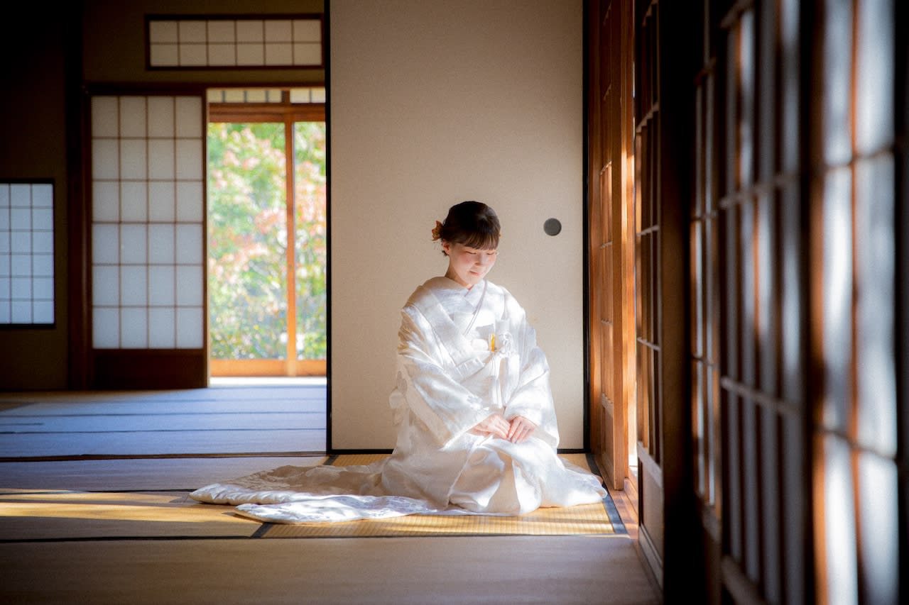 本格日本庭園を再現したスタジオで撮る 和装の結婚写真