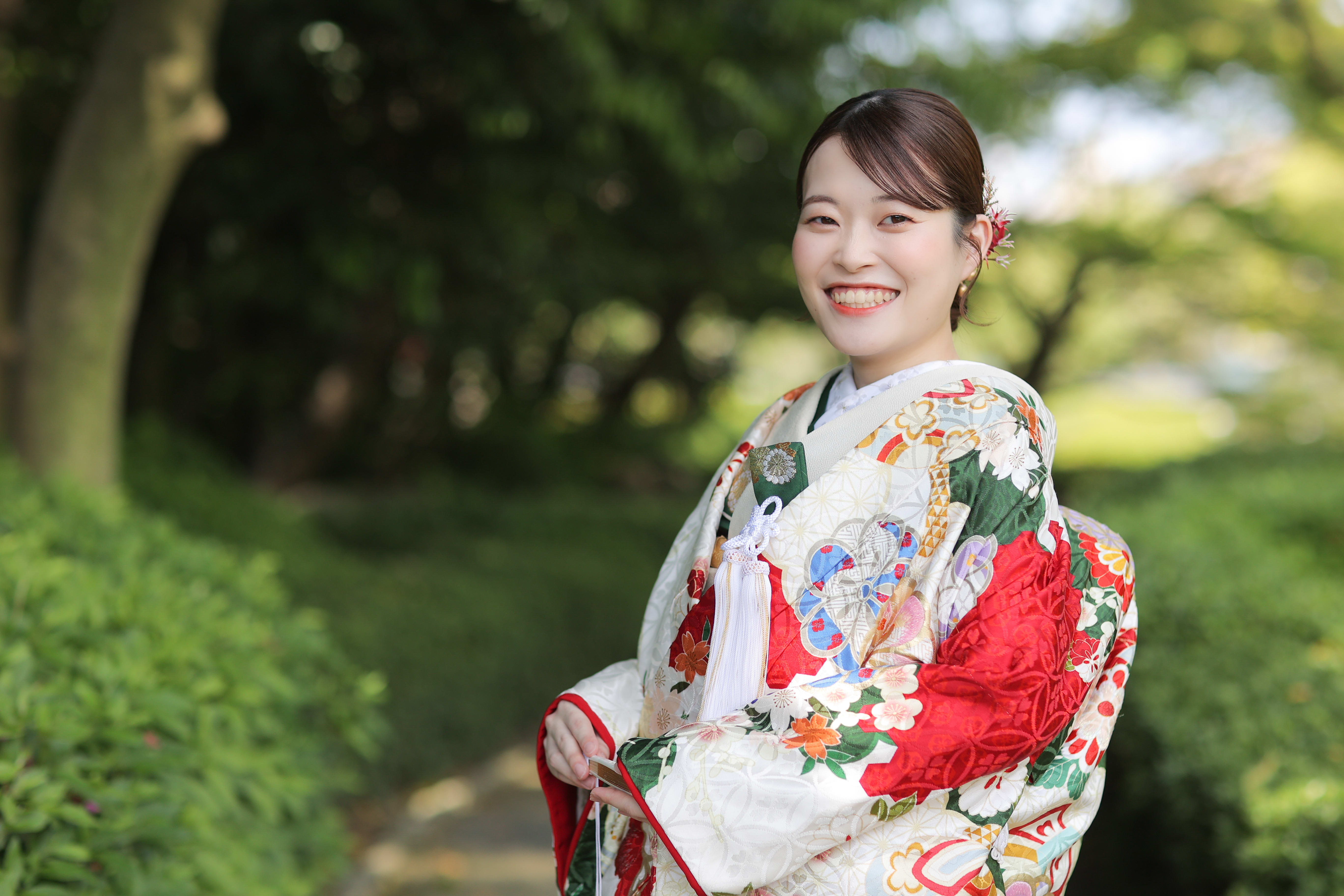 本格日本庭園を再現したスタジオで撮る 和装の結婚写真