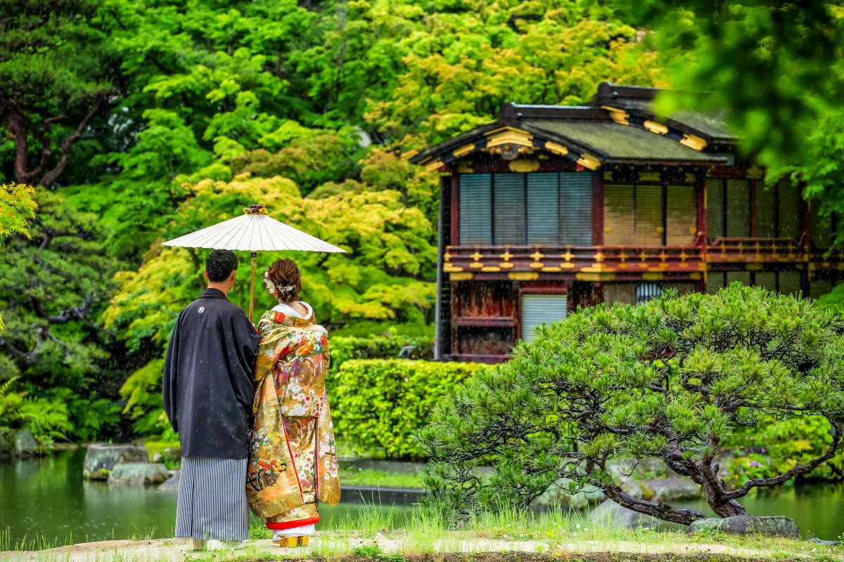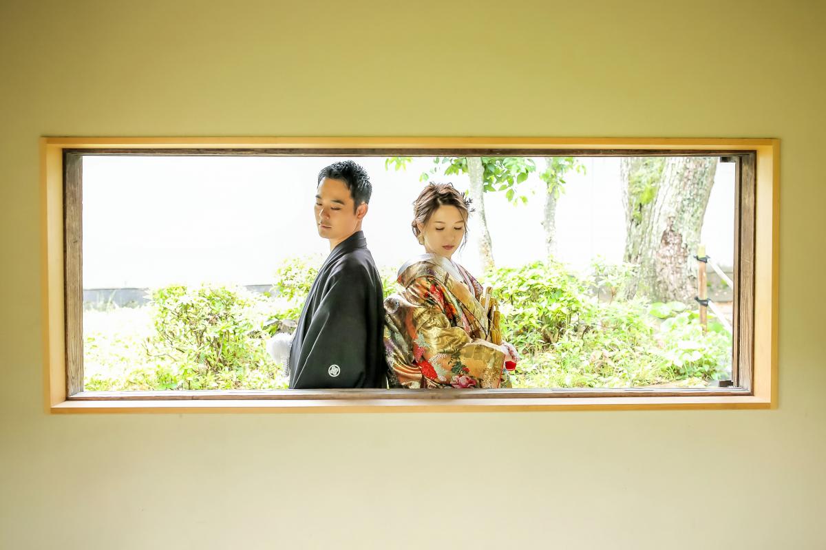 本格日本庭園を再現したスタジオで撮る 和装の結婚写真