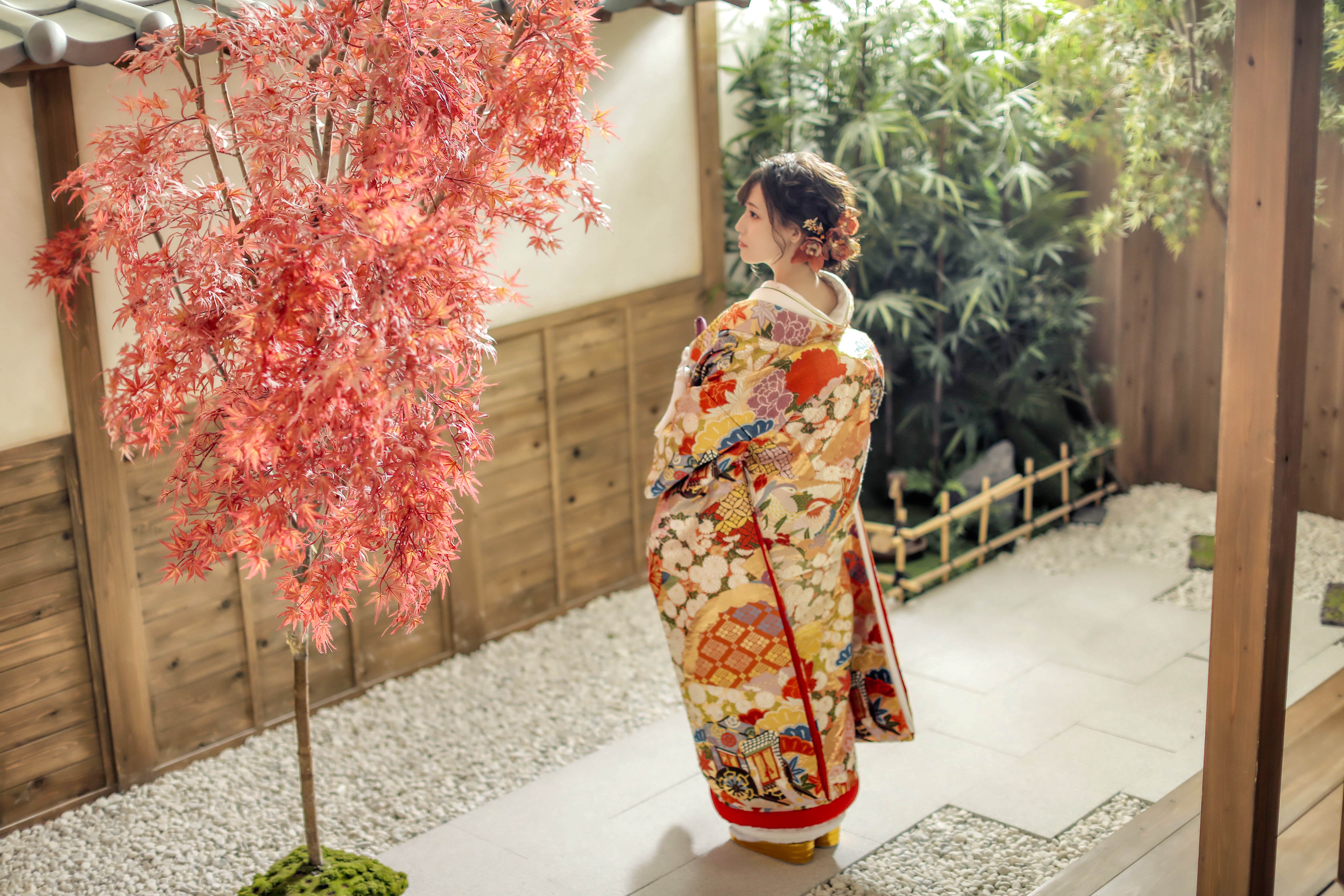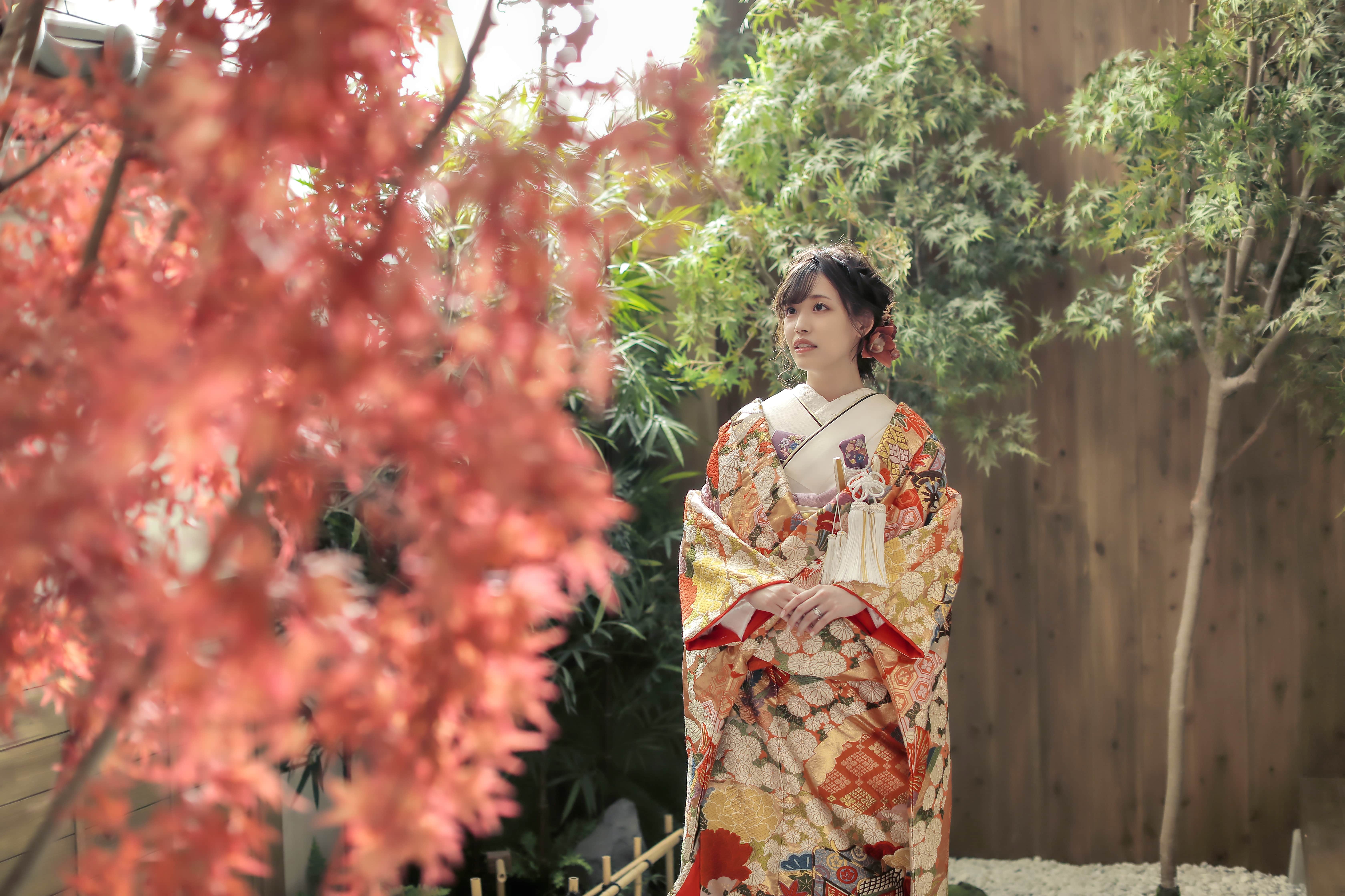 本格日本庭園を再現したスタジオで撮る 和装の結婚写真