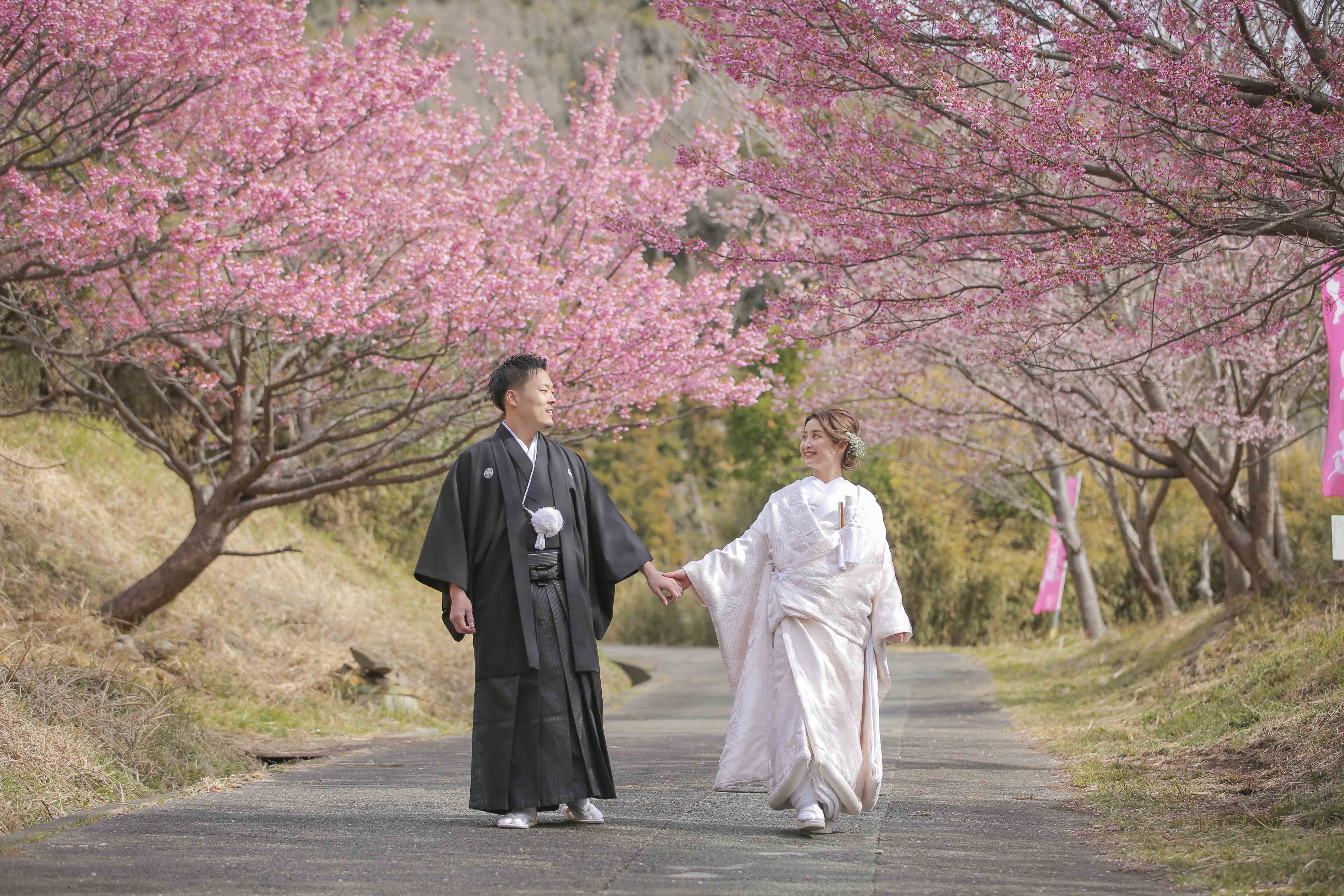 本格日本庭園を再現したスタジオで撮る 和装の結婚写真