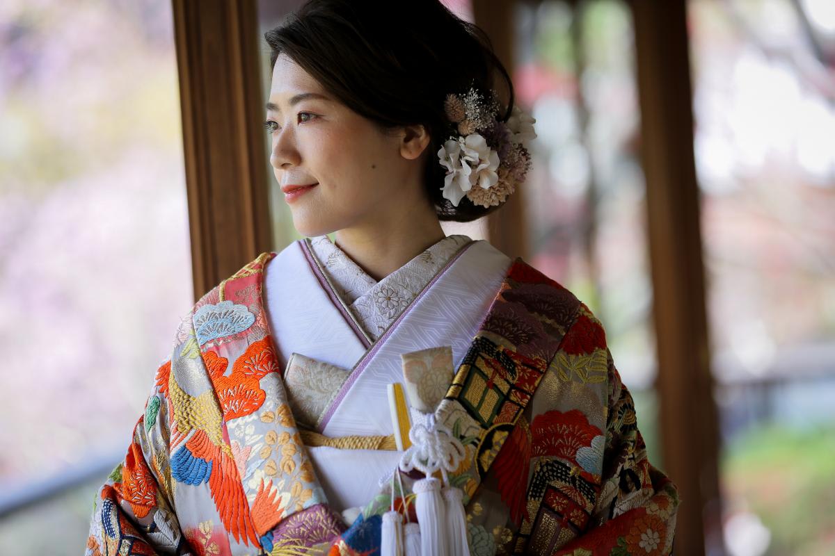 本格日本庭園を再現したスタジオで撮る 和装の結婚写真
