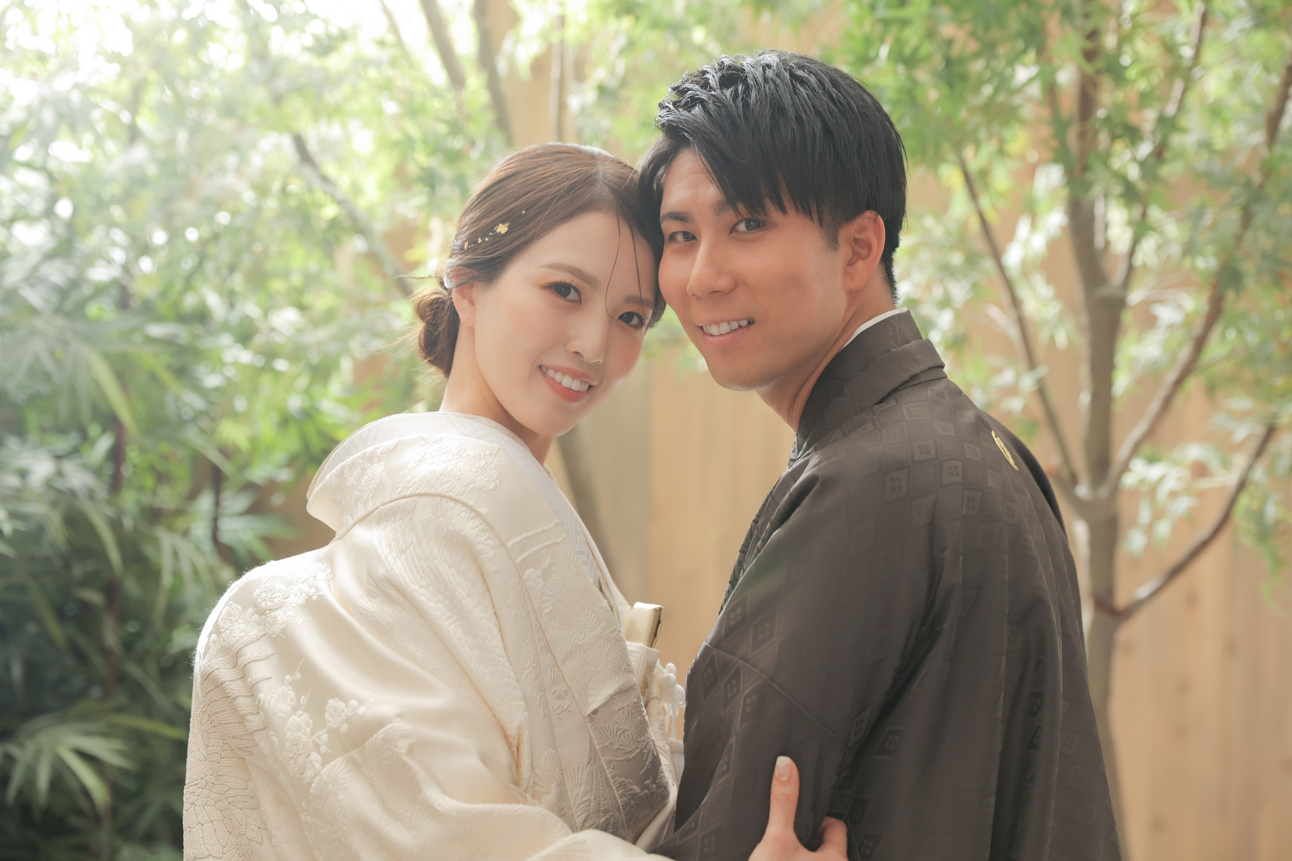 本格日本庭園を再現したスタジオで撮る 和装の結婚写真