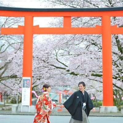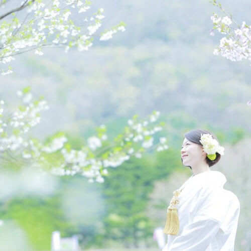 本格日本庭園を再現したスタジオで撮る 和装の結婚写真