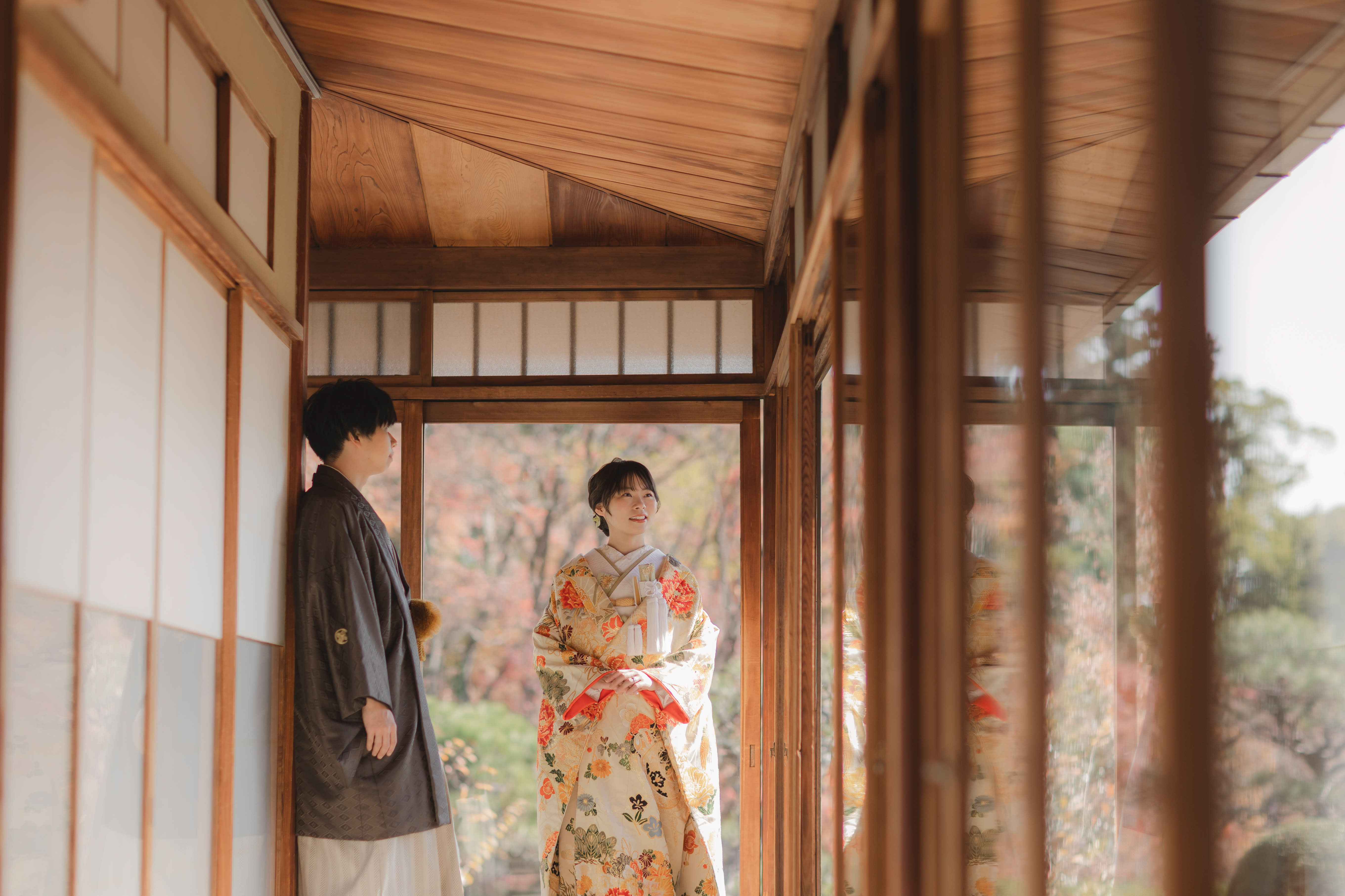 本格日本庭園を再現したスタジオで撮る 和装の結婚写真