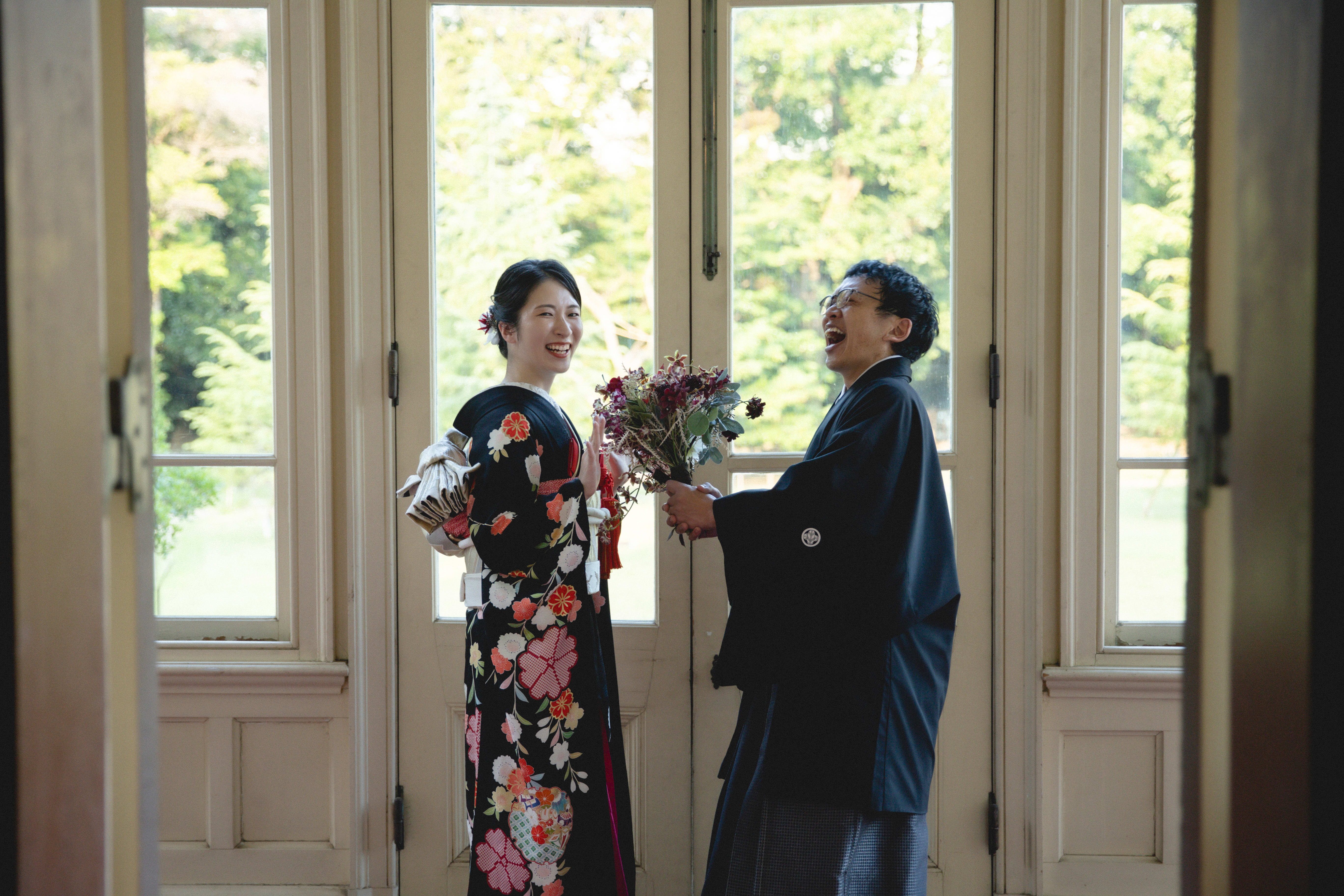 本格日本庭園を再現したスタジオで撮る 和装の結婚写真