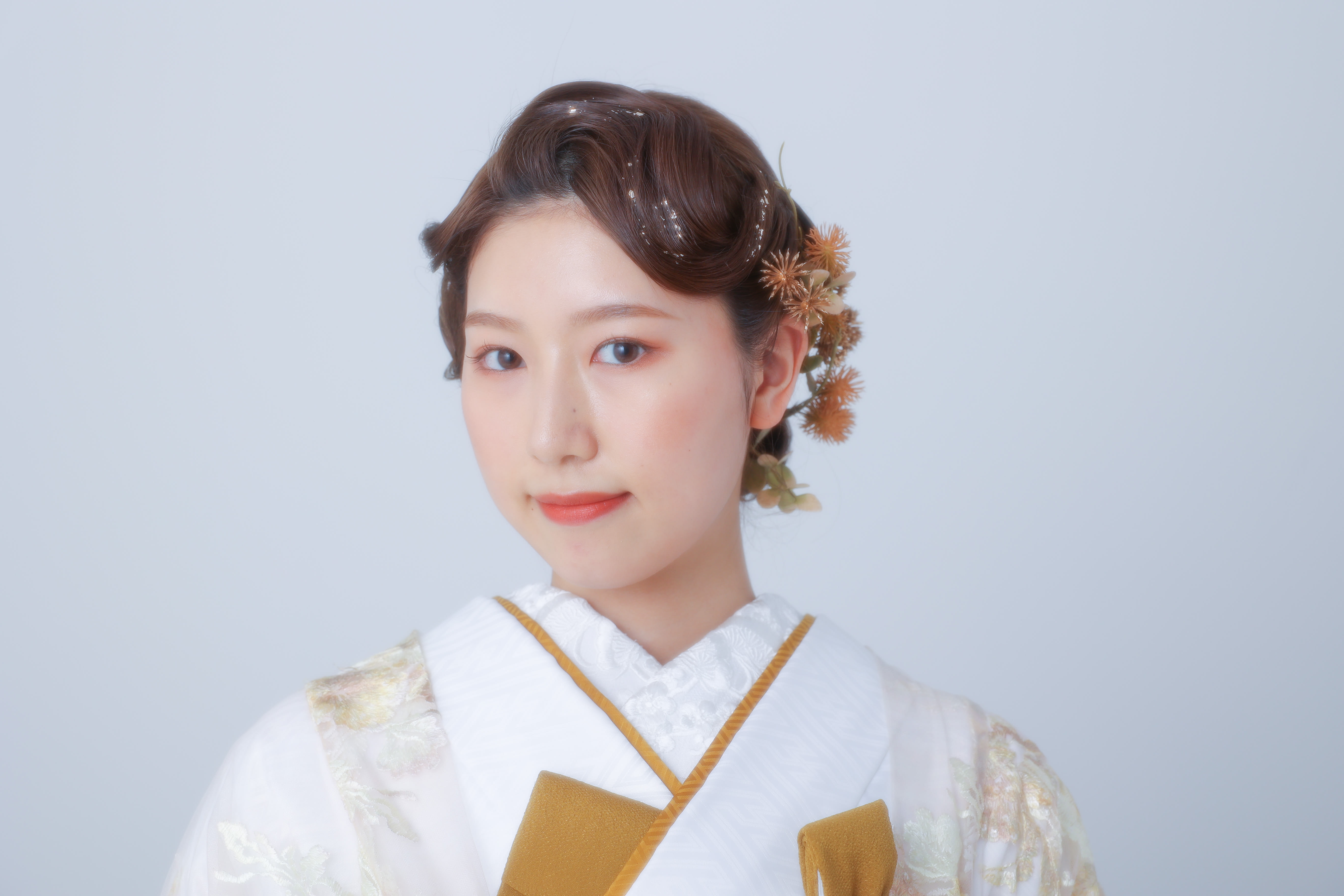 新郎新婦様お二人の個性やお好みに合ったヘアメイク、お衣装選び、小物アレンジをご提案させて頂きます。 新婦様の柔らかい雰囲気を引き出せるようなヘアメイクを心がけております。 一級着付け技能士資格も取得し、着付けの技術にこだわって新郎新婦様のお着付けをさせていただいております!! 美容師の経験を積み、現在のヘアメイクの仕事をさせていただいてます。 お二人らしさが残るウェディングフォトのサポートさせて頂きます!! どこの店舗でもご指名を承ります。 ヘアメイク歴 14年 美容師国家資格取得 一級着付け技能士資格取得