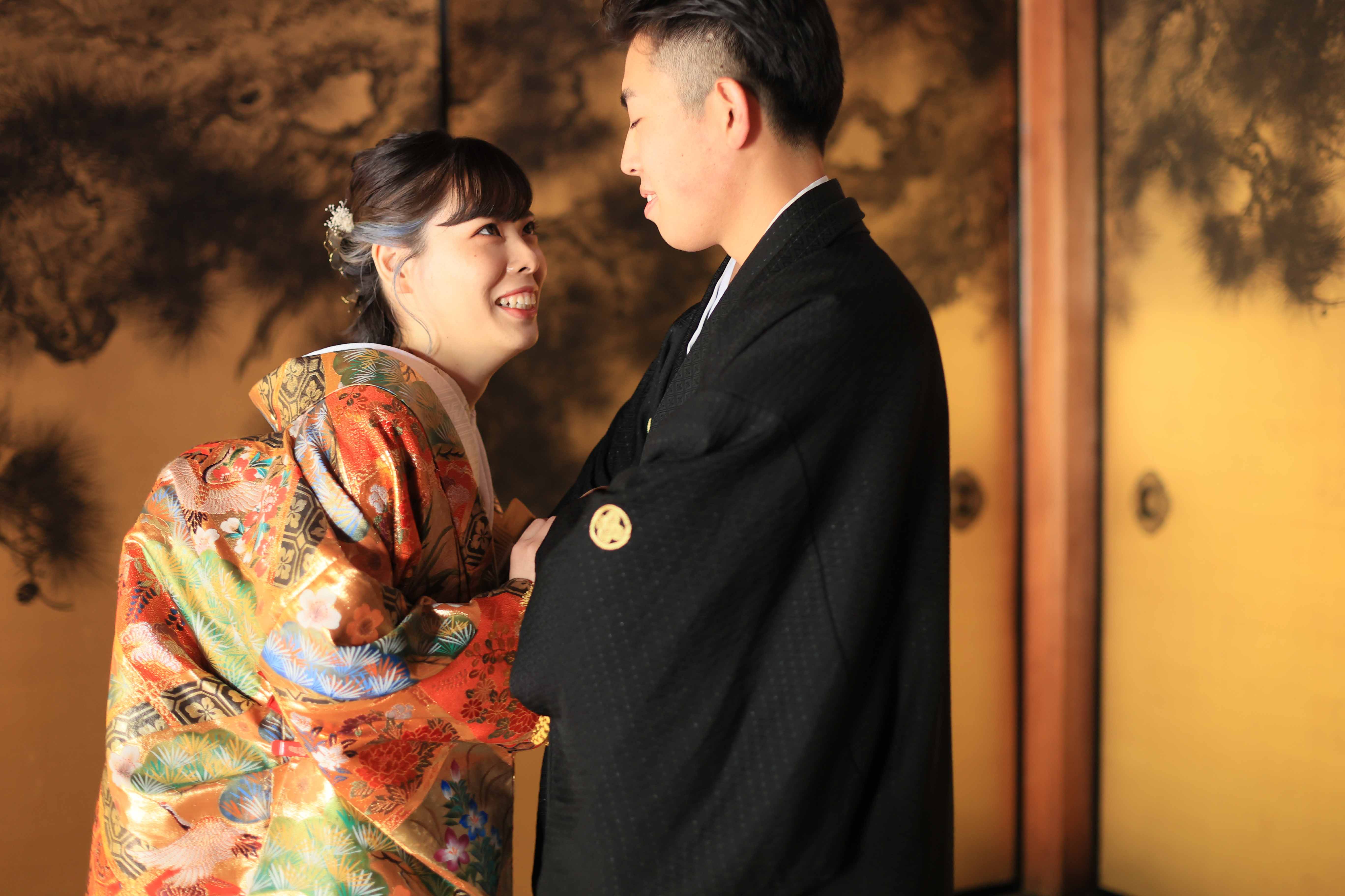 本格日本庭園を再現したスタジオで撮る 和装の結婚写真