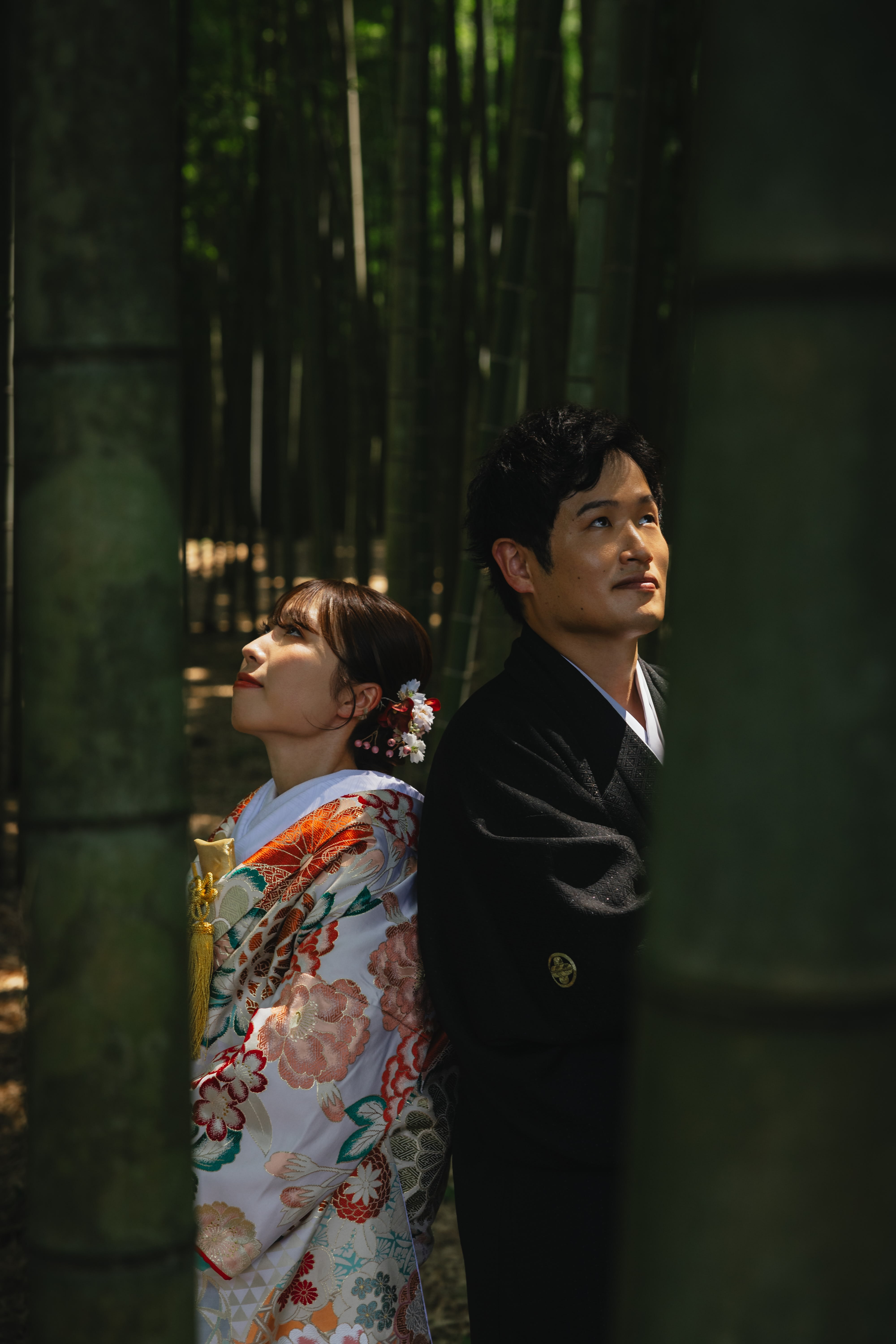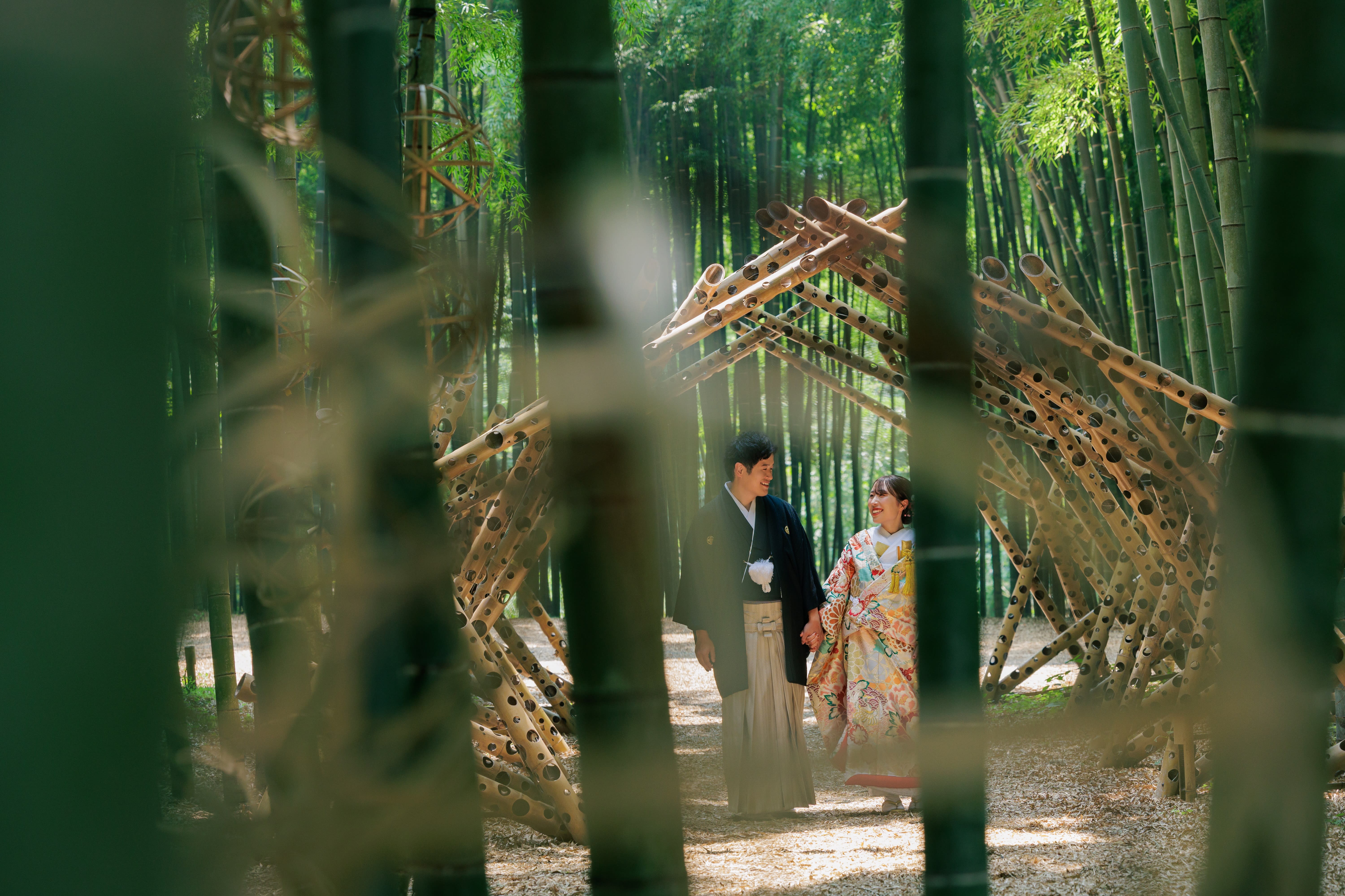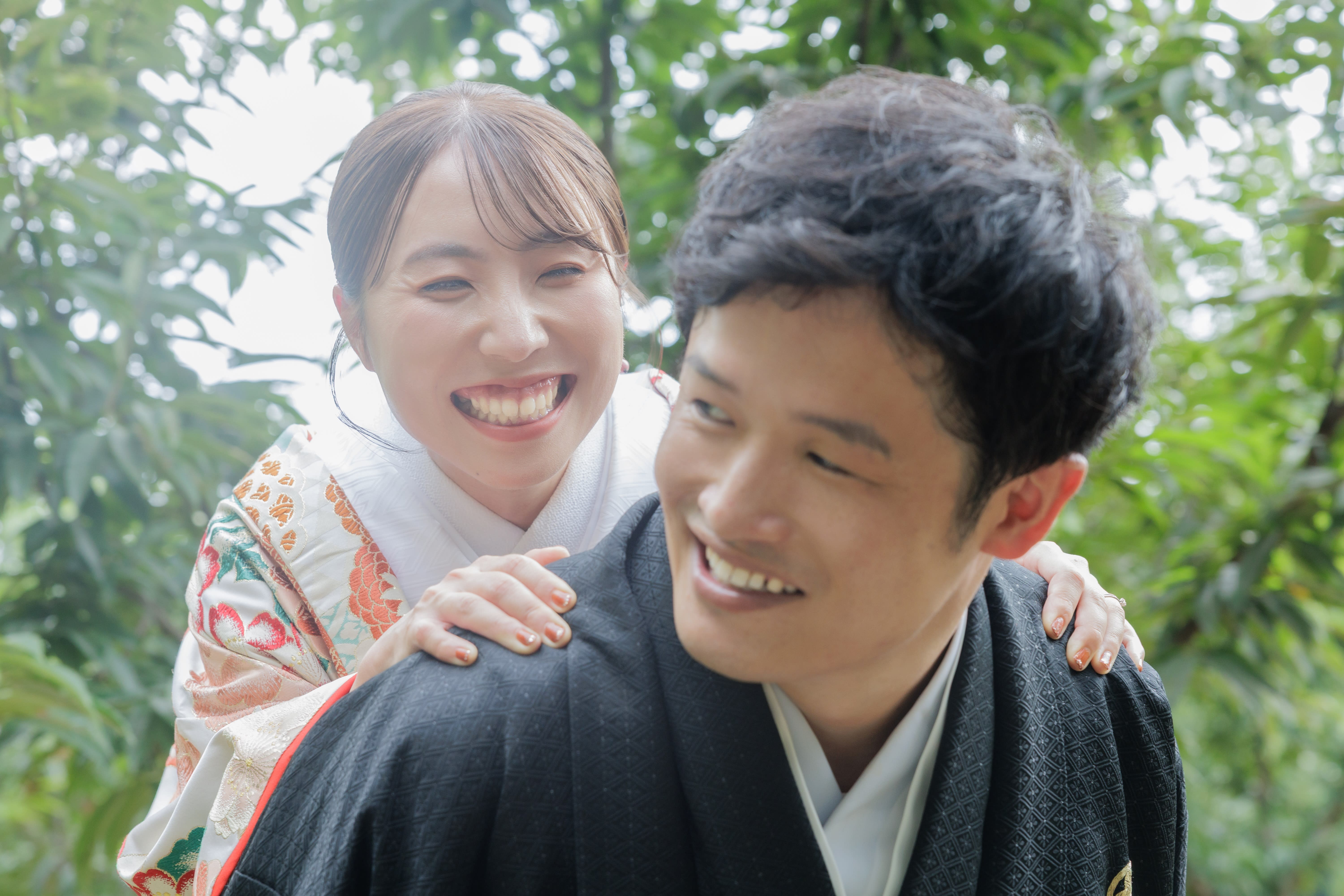 本格日本庭園を再現したスタジオで撮る 和装の結婚写真