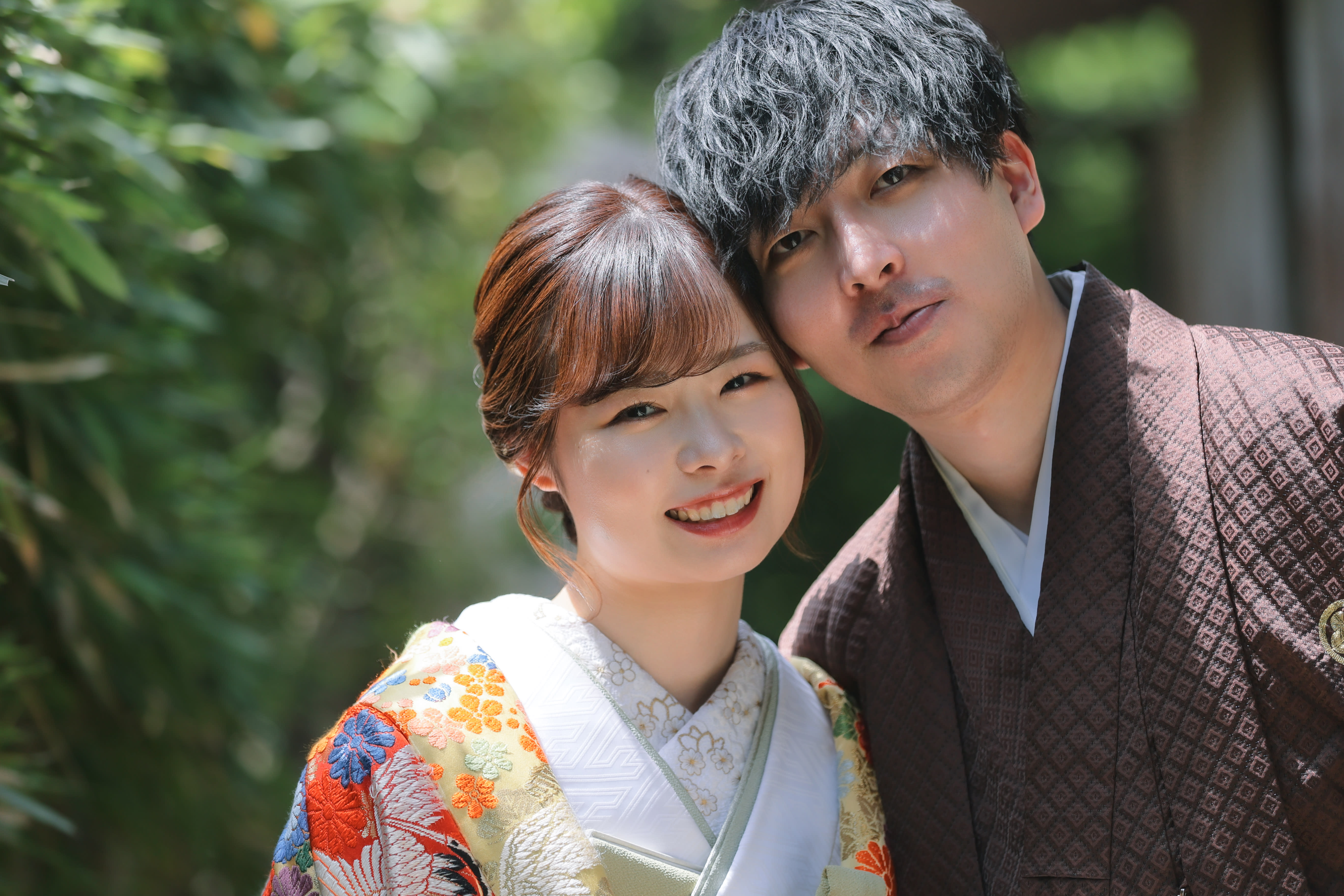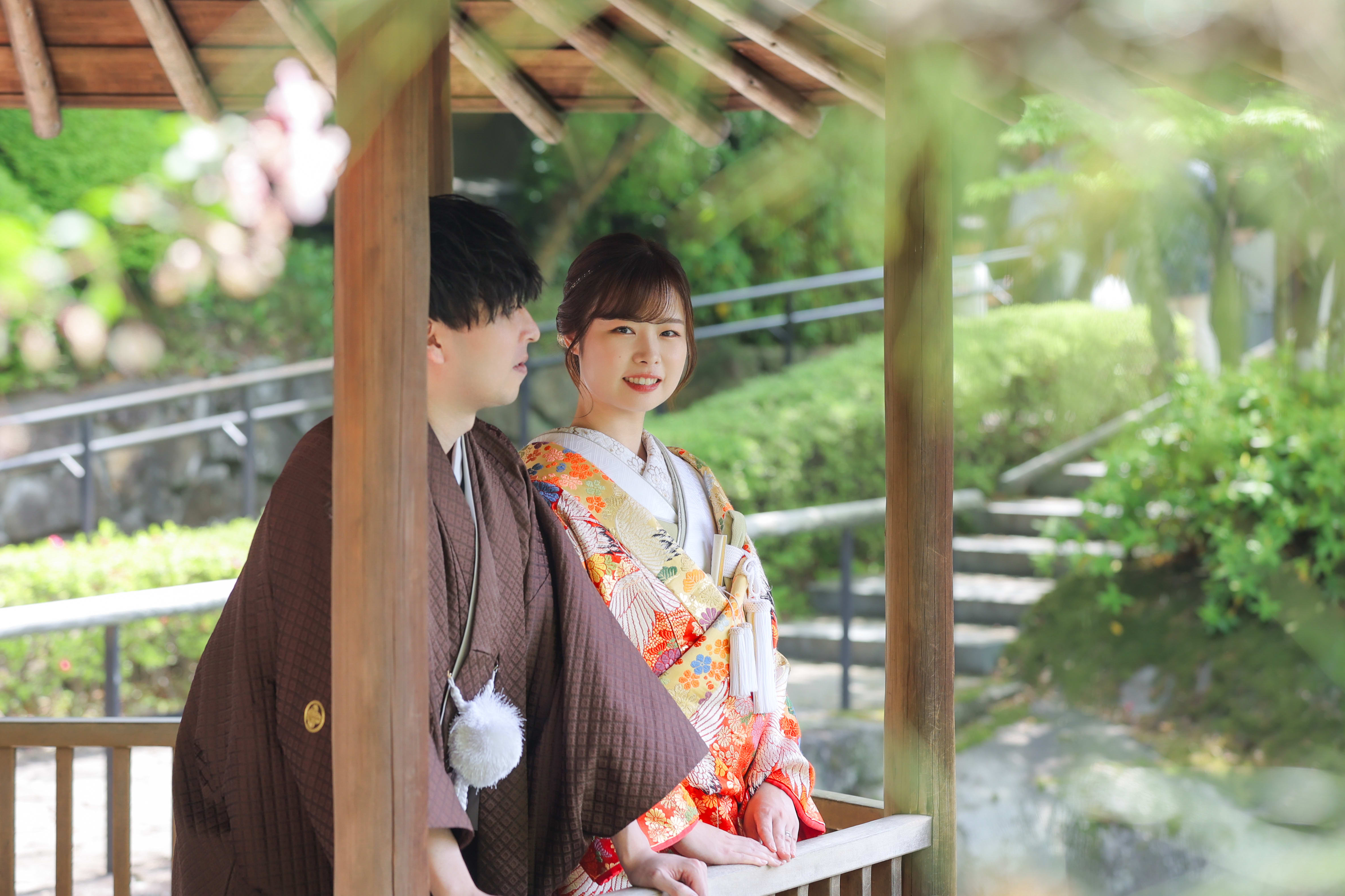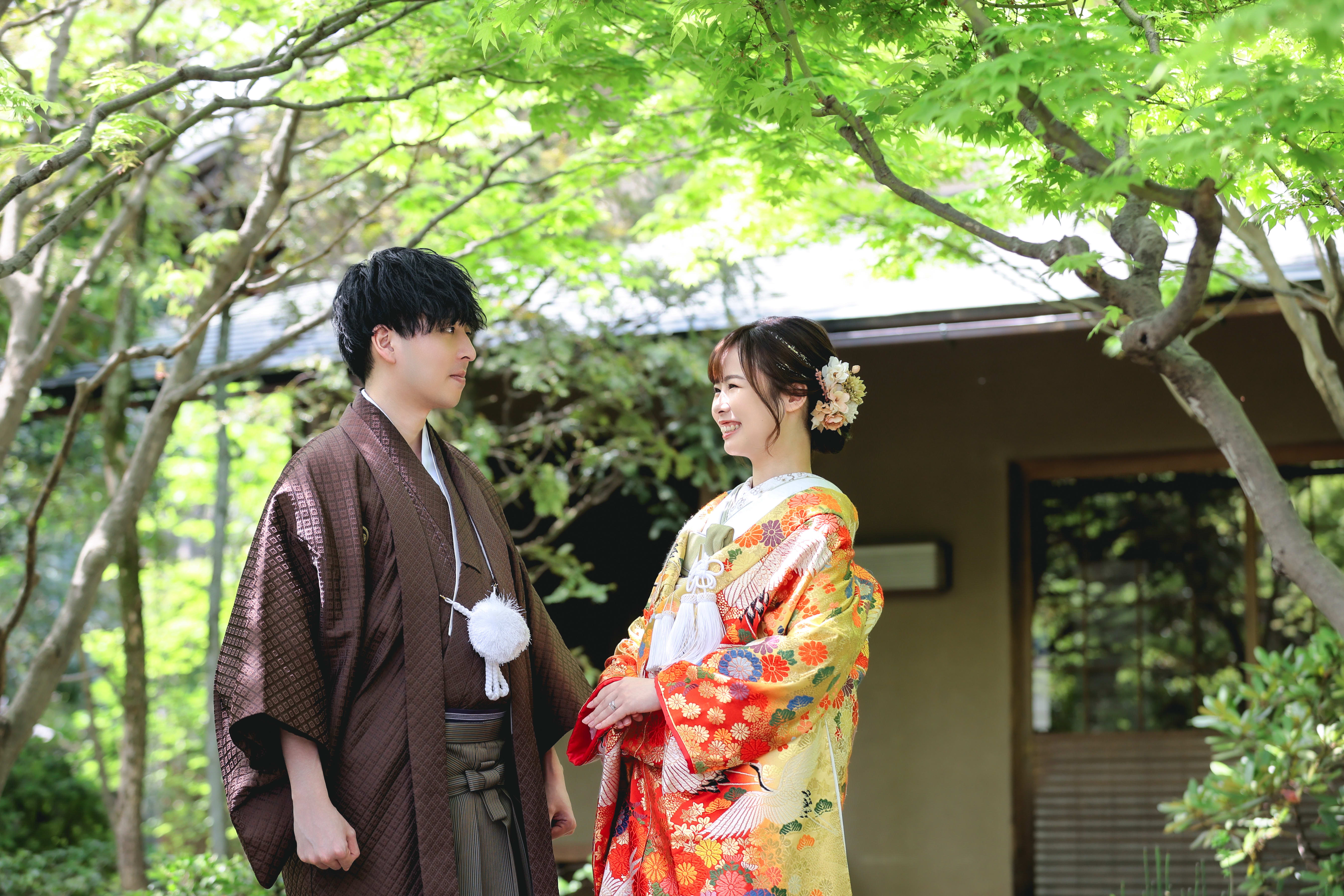 新宿店の本格的な茶室スタジオで撮影する、和装の結婚写真