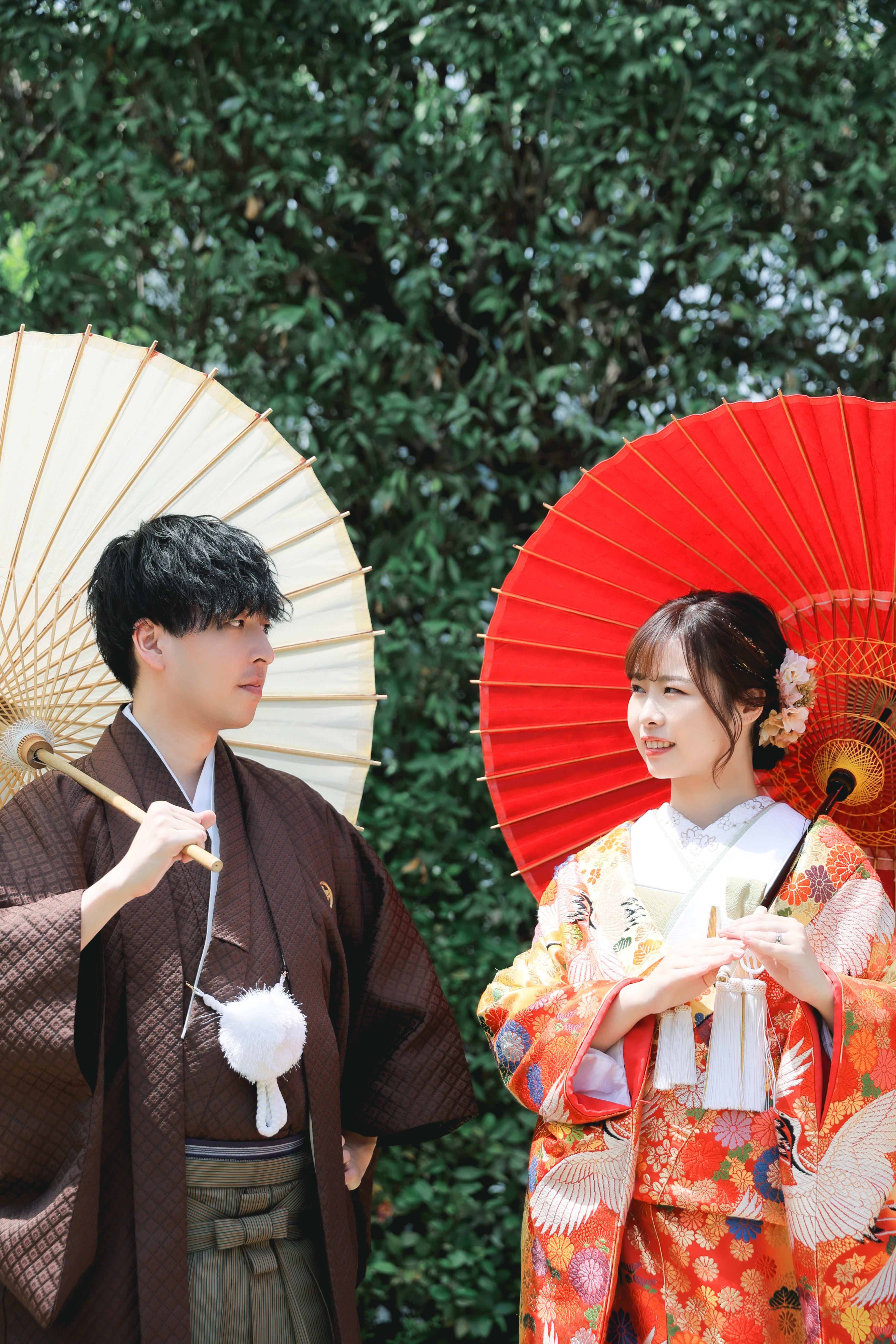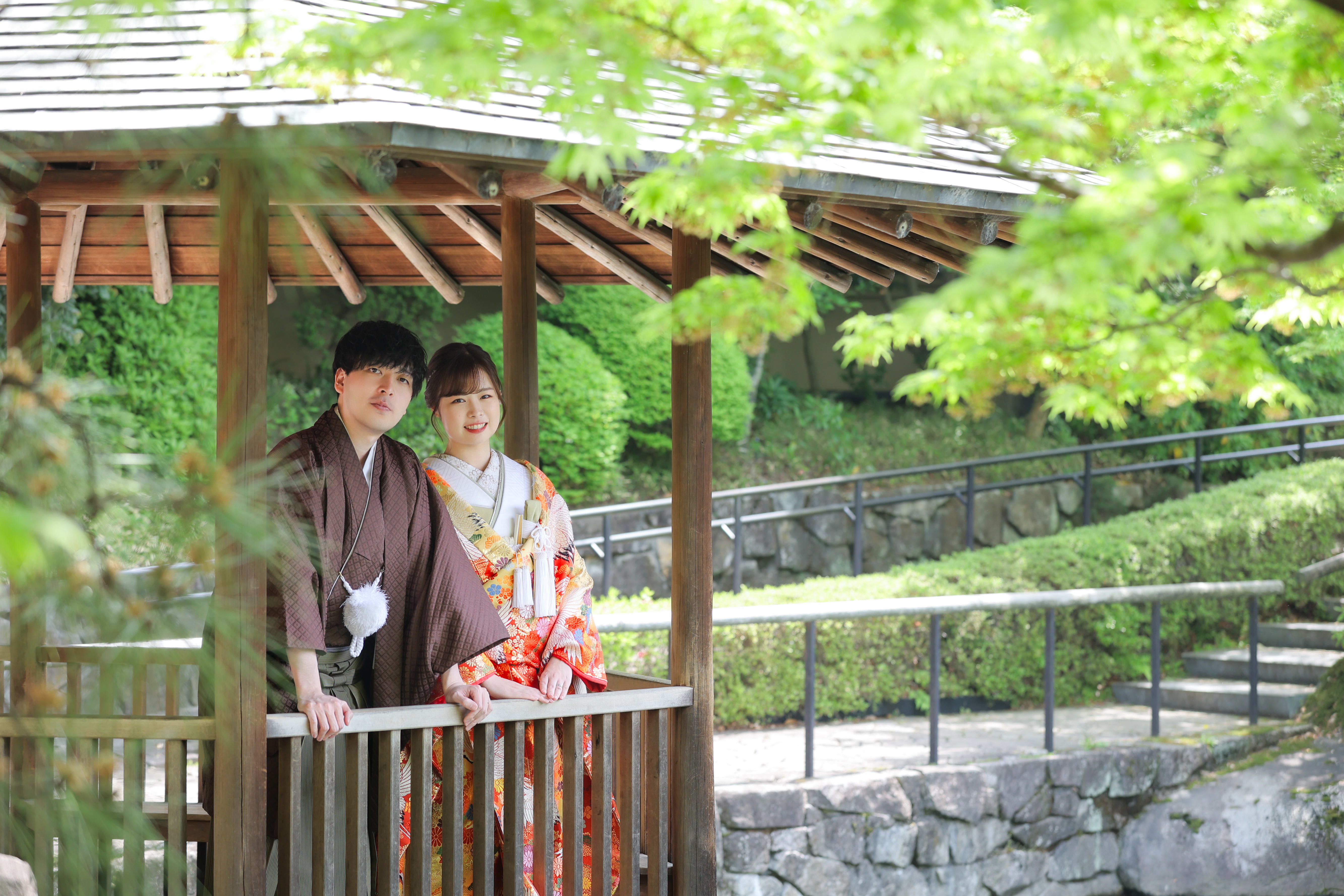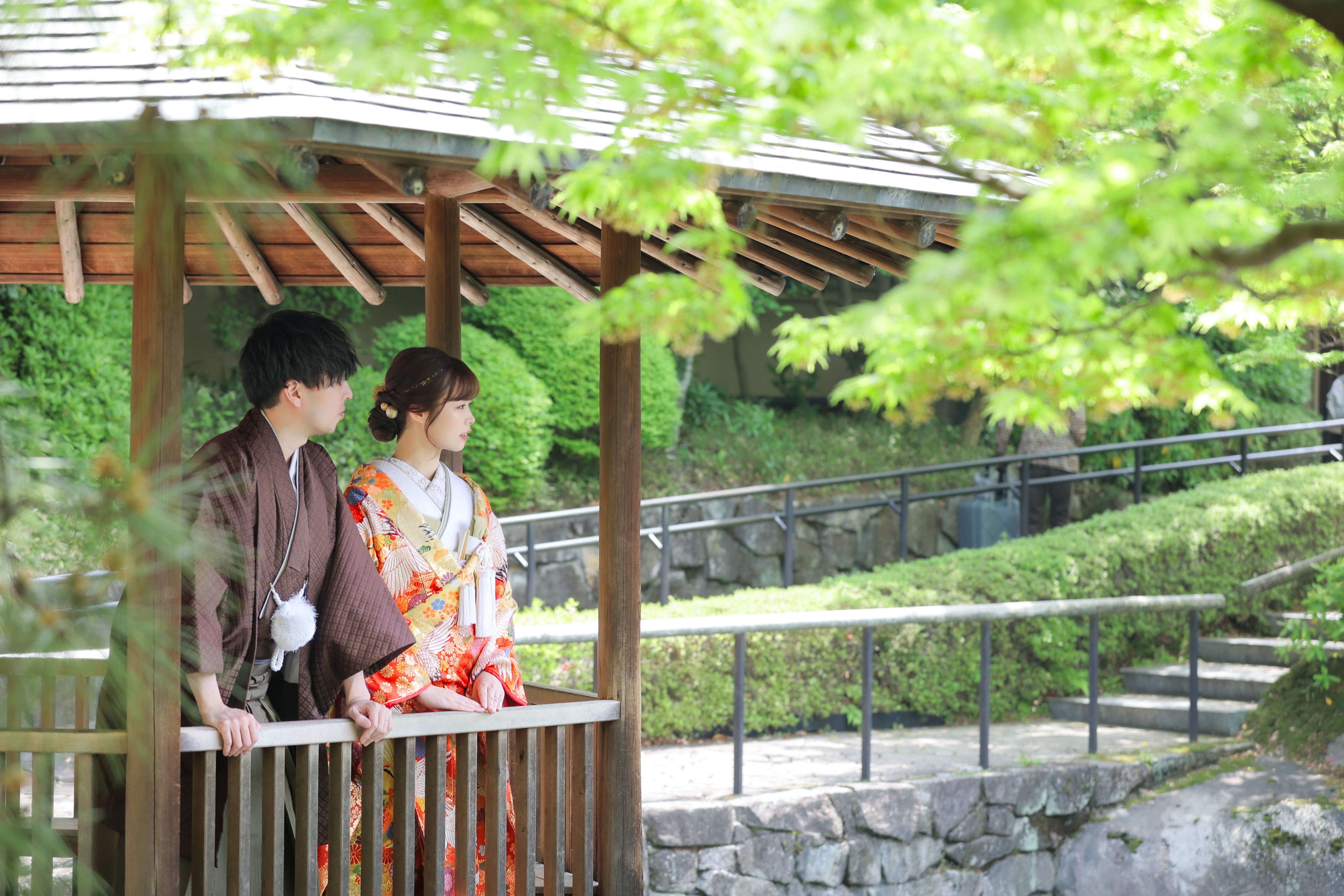 新宿店の本格的な茶室スタジオで撮影する、和装の結婚写真