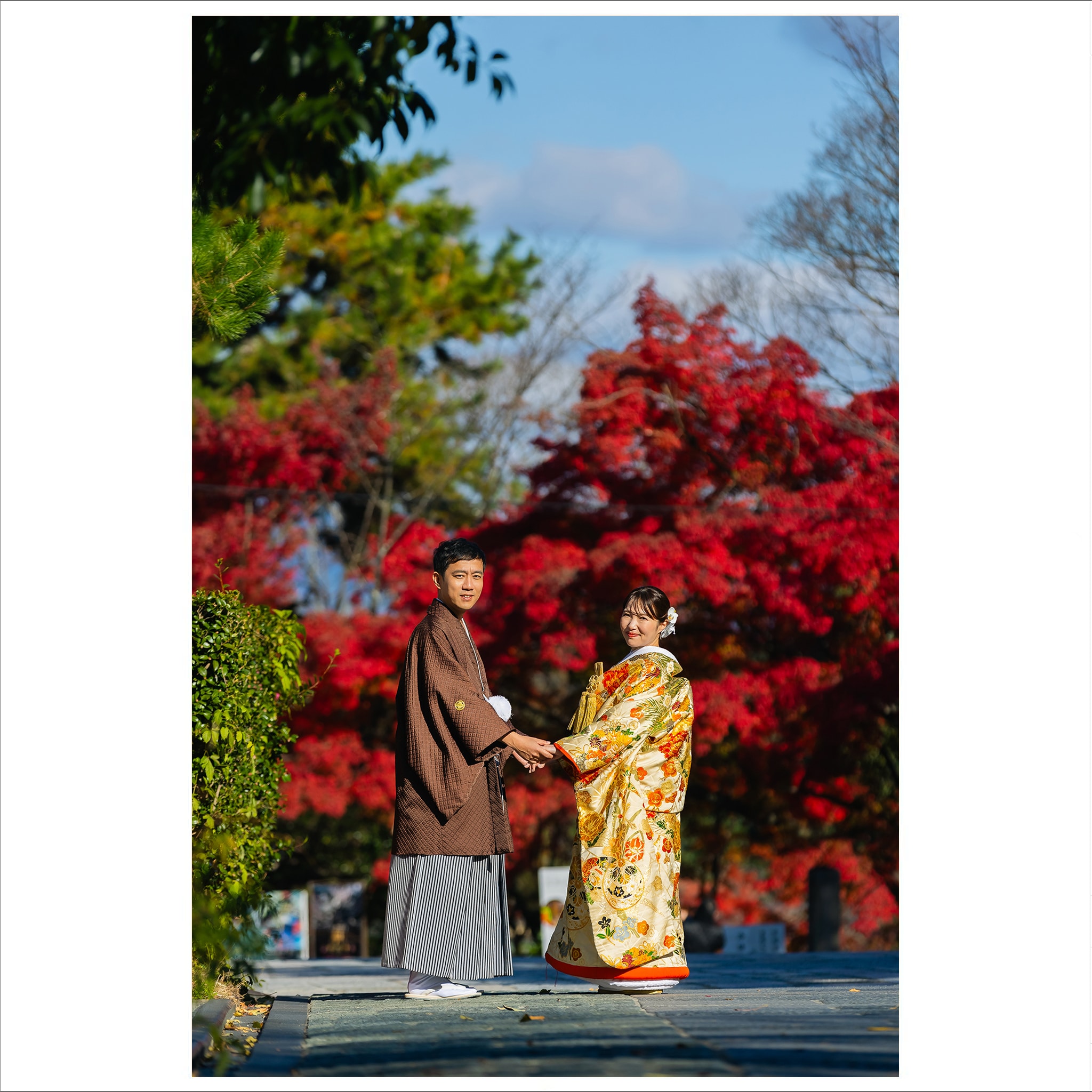 本格日本庭園を再現したスタジオで撮る 和装の結婚写真