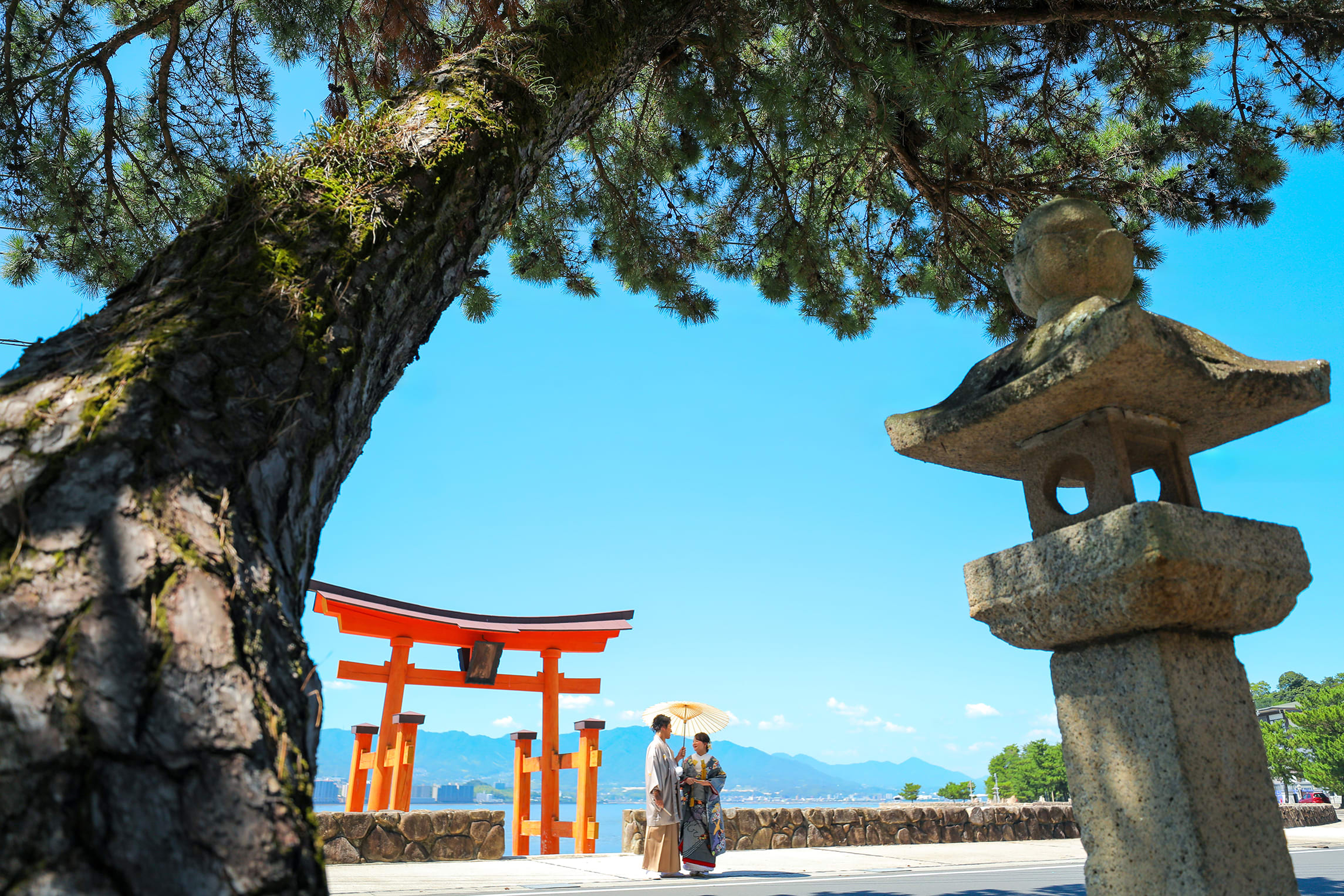 本格日本庭園を再現したスタジオで撮る 和装の結婚写真