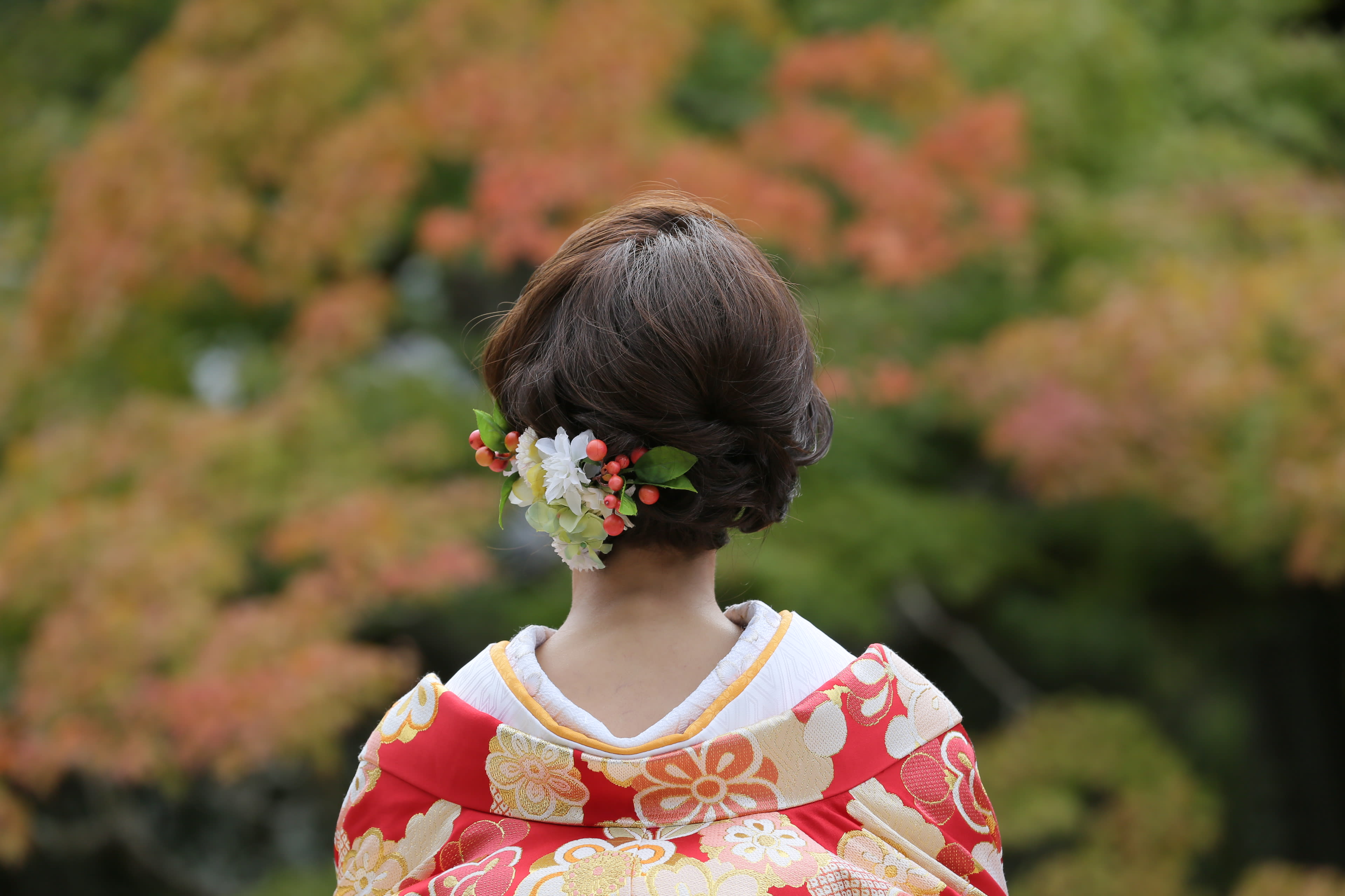 本格日本庭園を再現したスタジオで撮る 和装の結婚写真