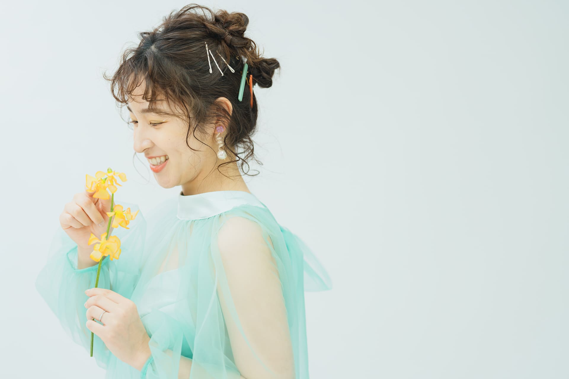 いくつになっても、一生に一度の瞬間を懐かしんでもらいたいから 新婦様に寄り添って、”自分らしさ”を大切にしたご提案を心掛けています🕊️ 衣装合わせから当日まで、楽しい時間を一緒に過ごしていただけたら嬉しいです🙌 美容師として7年の経験を積み、ブライダルの世界に飛び込みたくさんの花嫁さまを担当してきました👰♀️💐 明るく親しみやすい性格なので、どんなことでも気軽にご相談ください。 お二人の特別な思い出のお手伝いができるのを楽しみにしています。 お支度から楽しくリラックスしていきましょ〜 ※生花を使用したアレンジもご相談ください