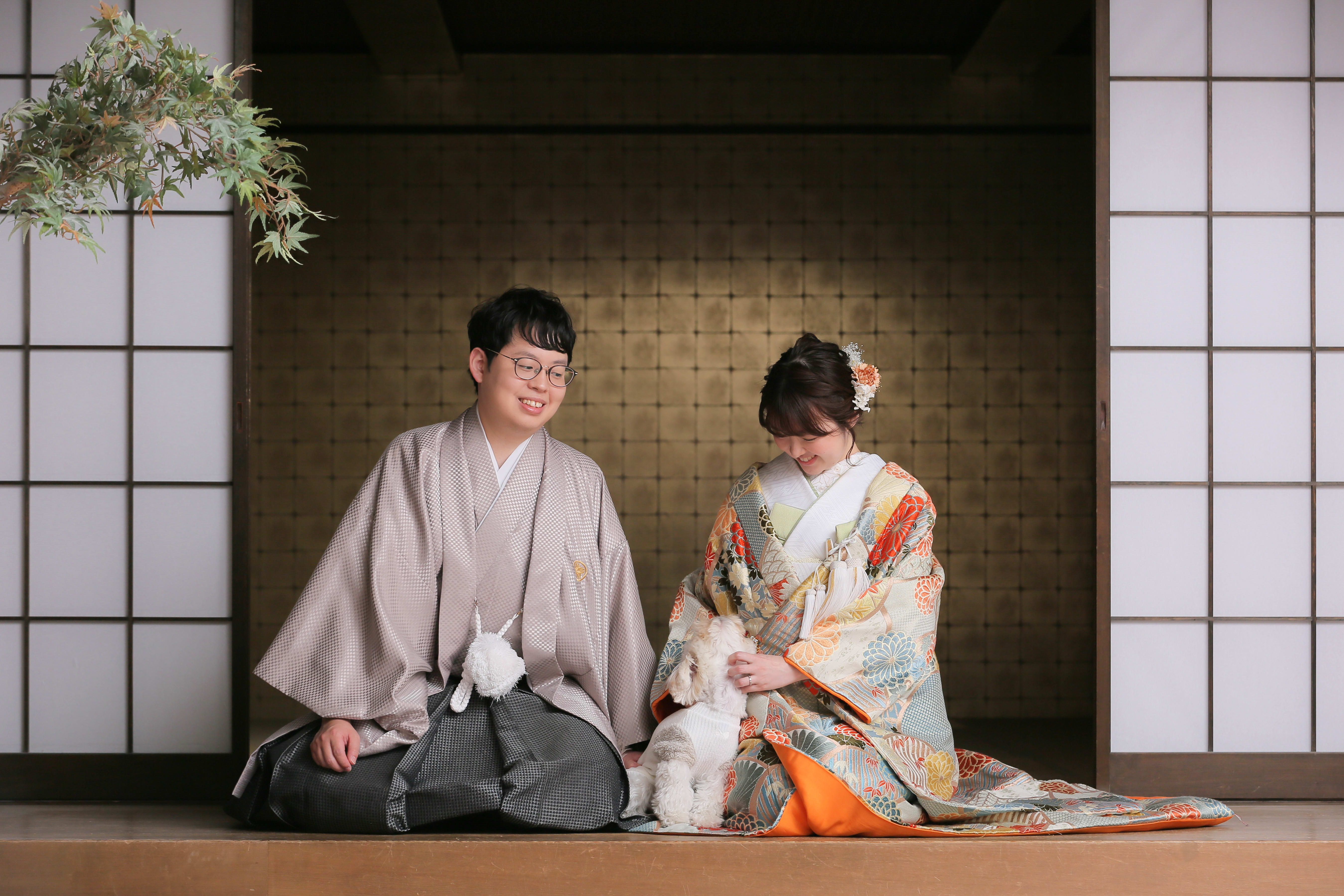 本格日本庭園を再現したスタジオで撮る 和装の結婚写真