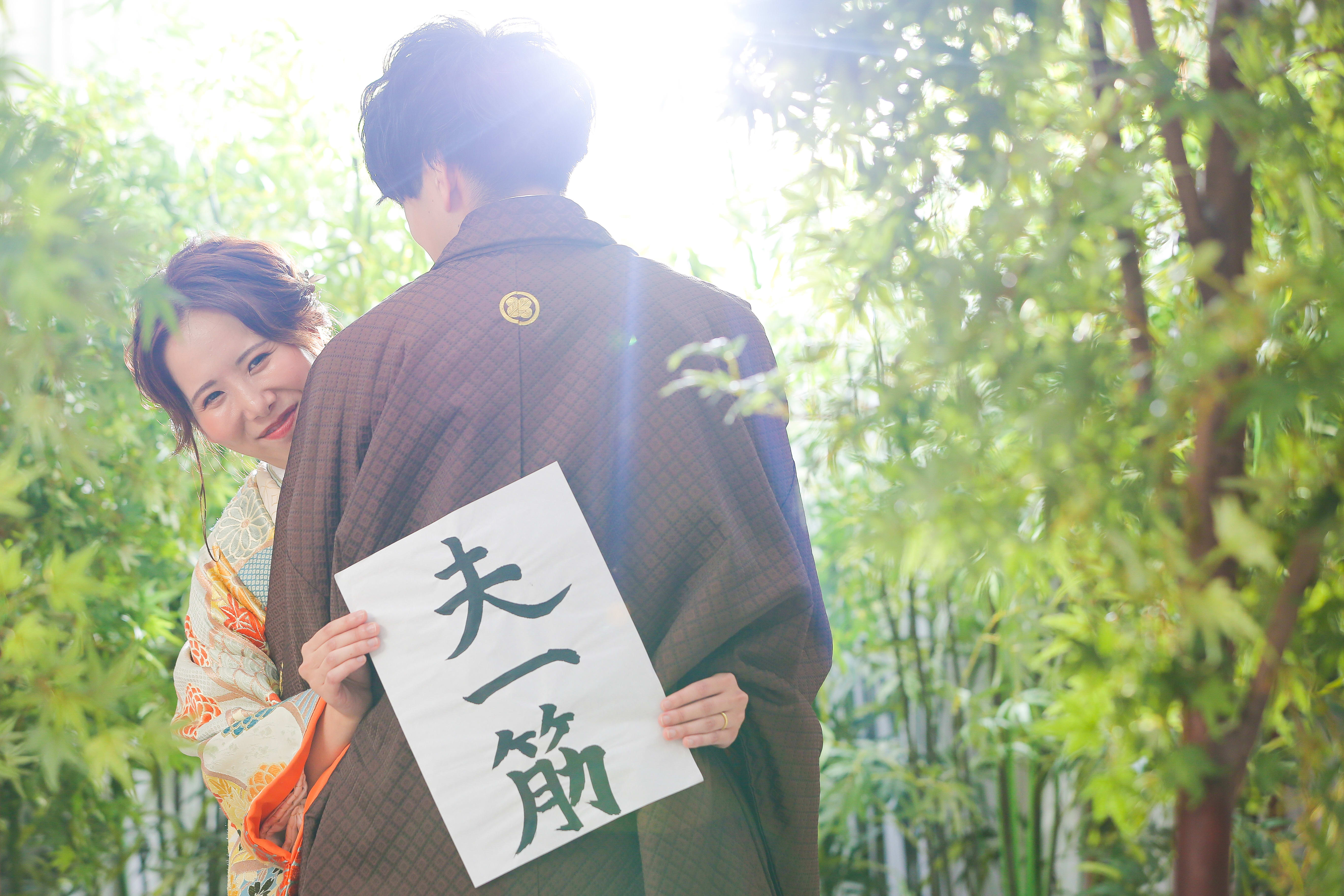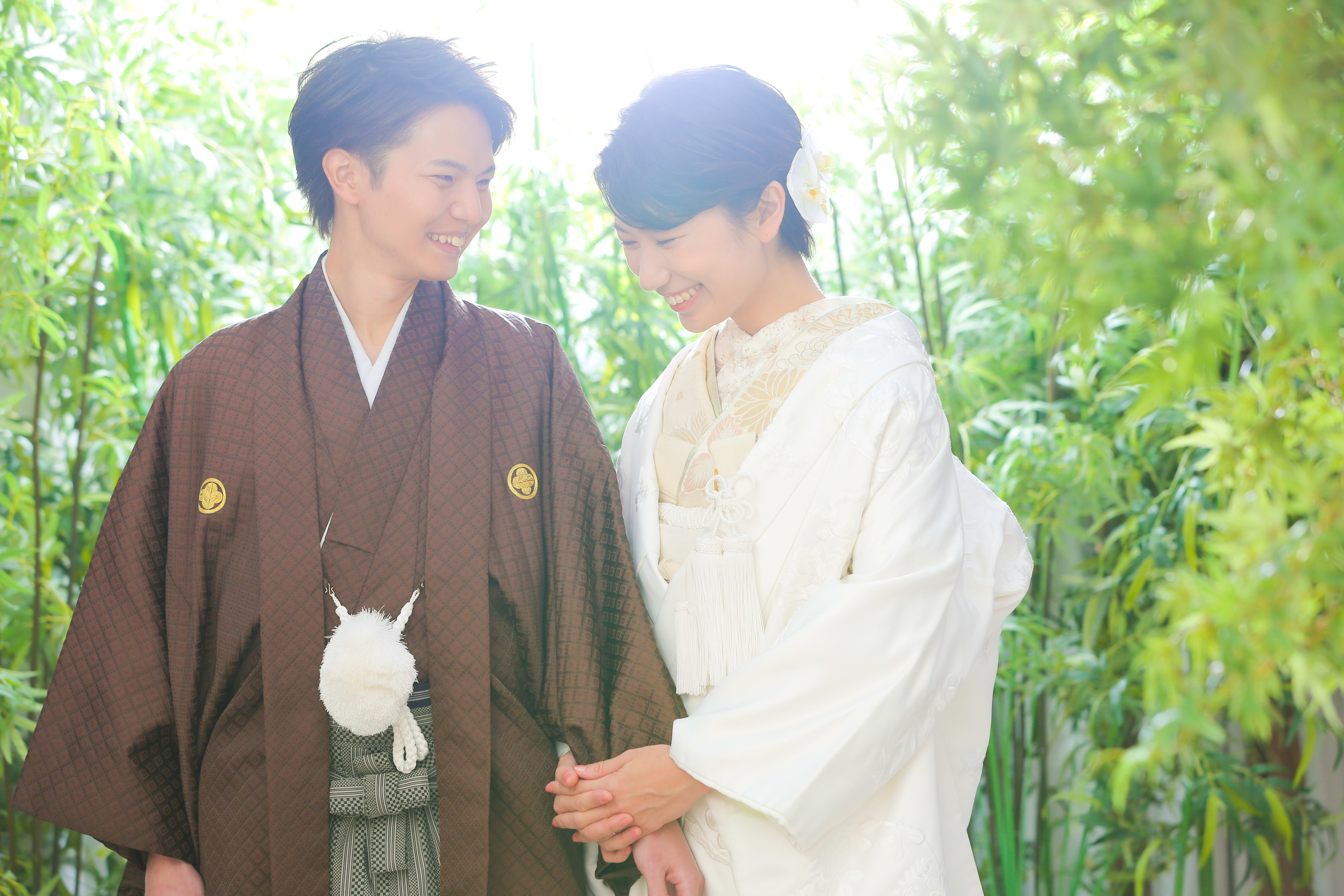 本格日本庭園を再現したスタジオで撮る 和装の結婚写真