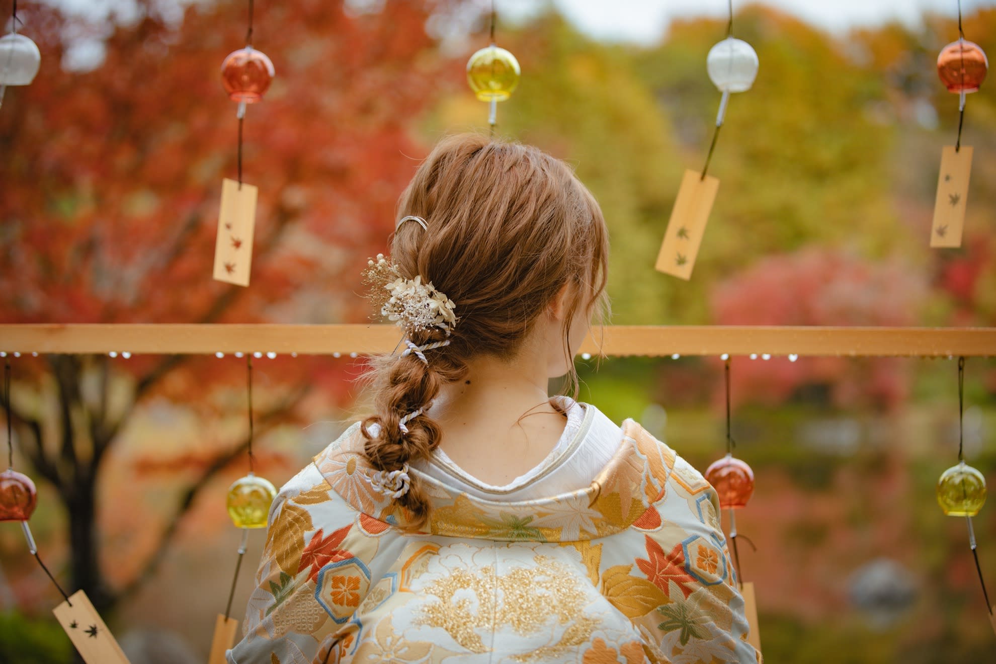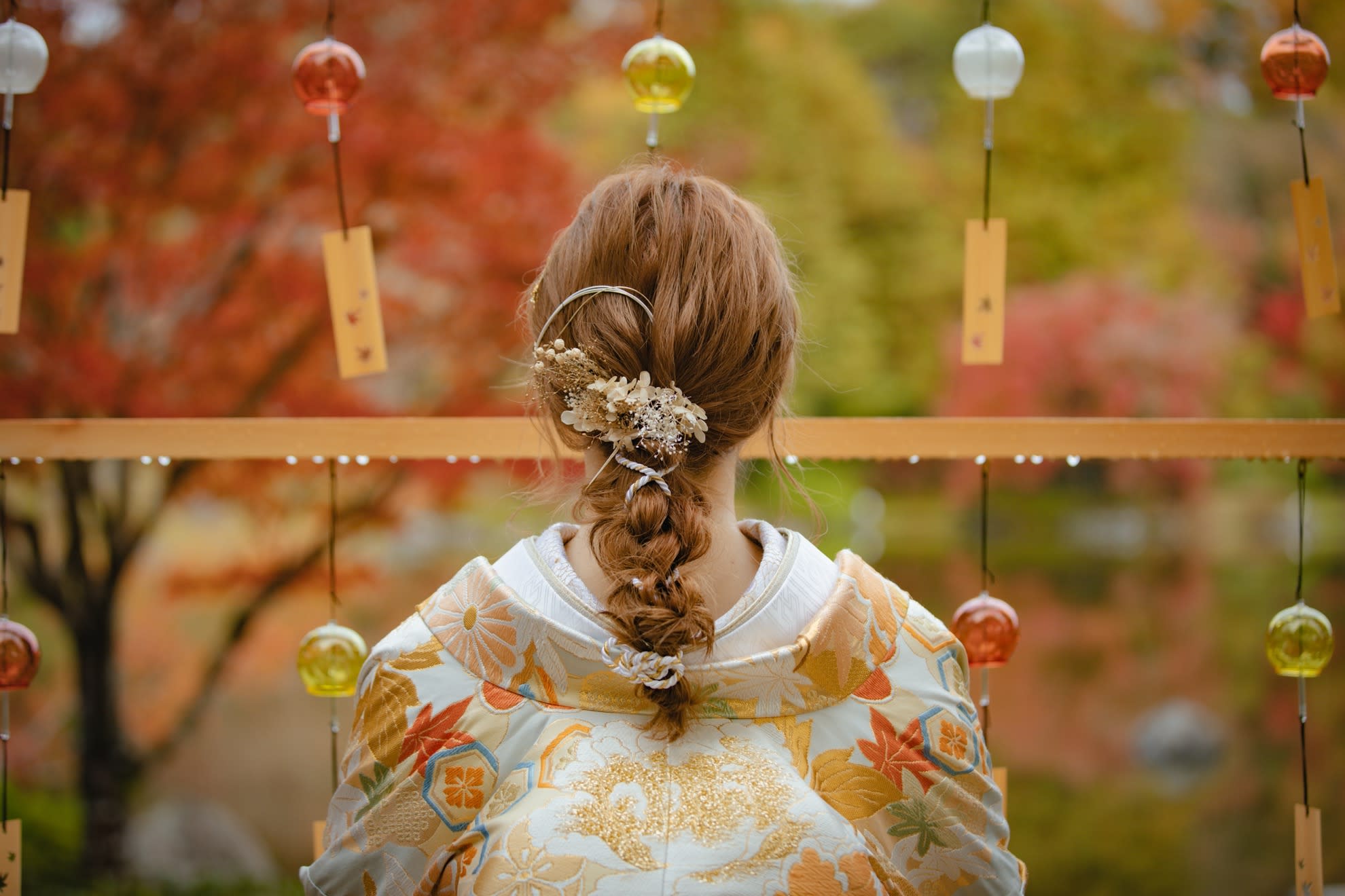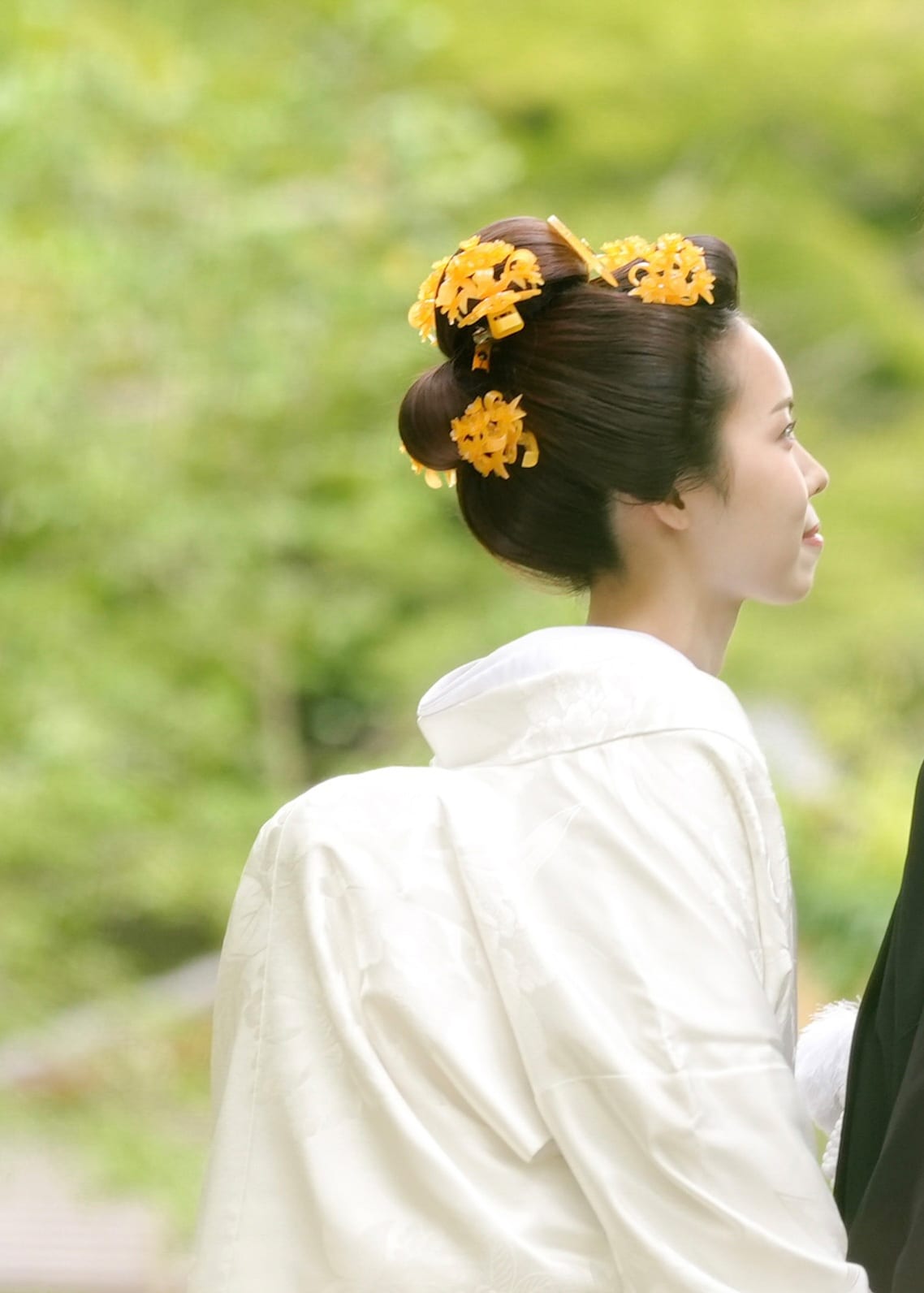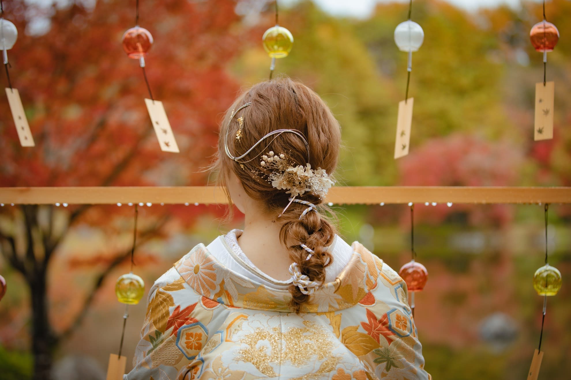本格日本庭園を再現したスタジオで撮る 和装の結婚写真