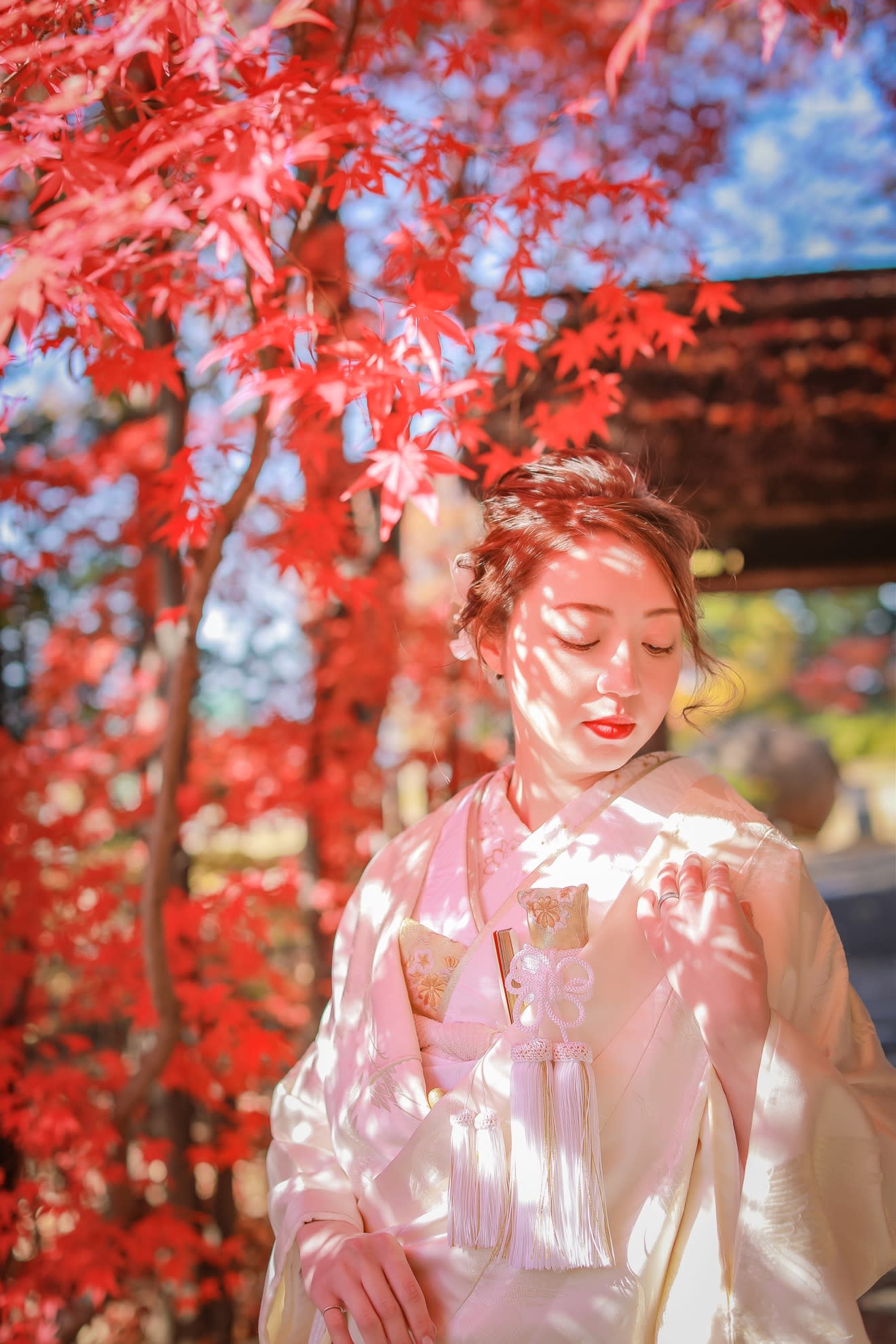 本格日本庭園を再現したスタジオで撮る 和装の結婚写真