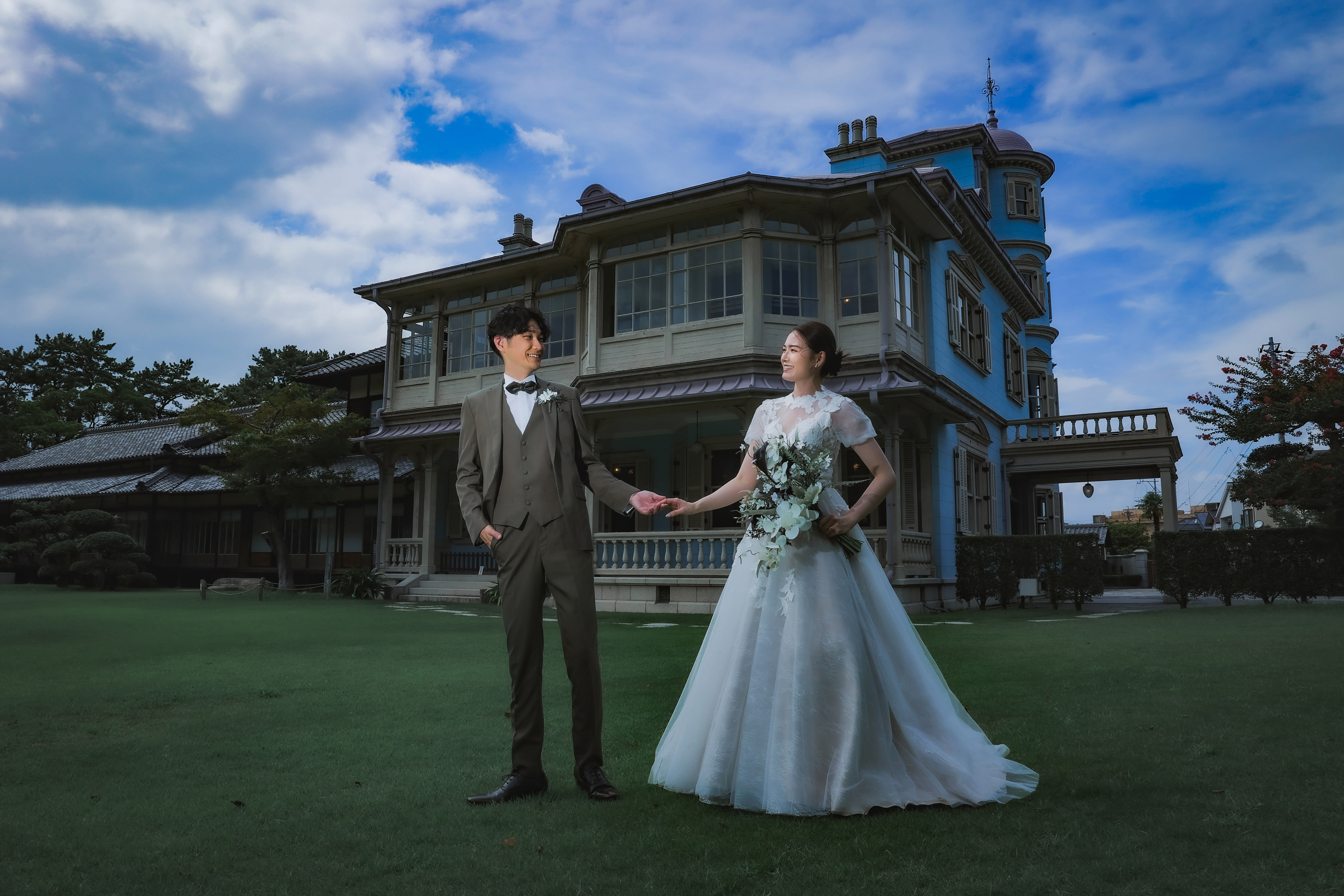 本格日本庭園を再現したスタジオで撮る 和装の結婚写真