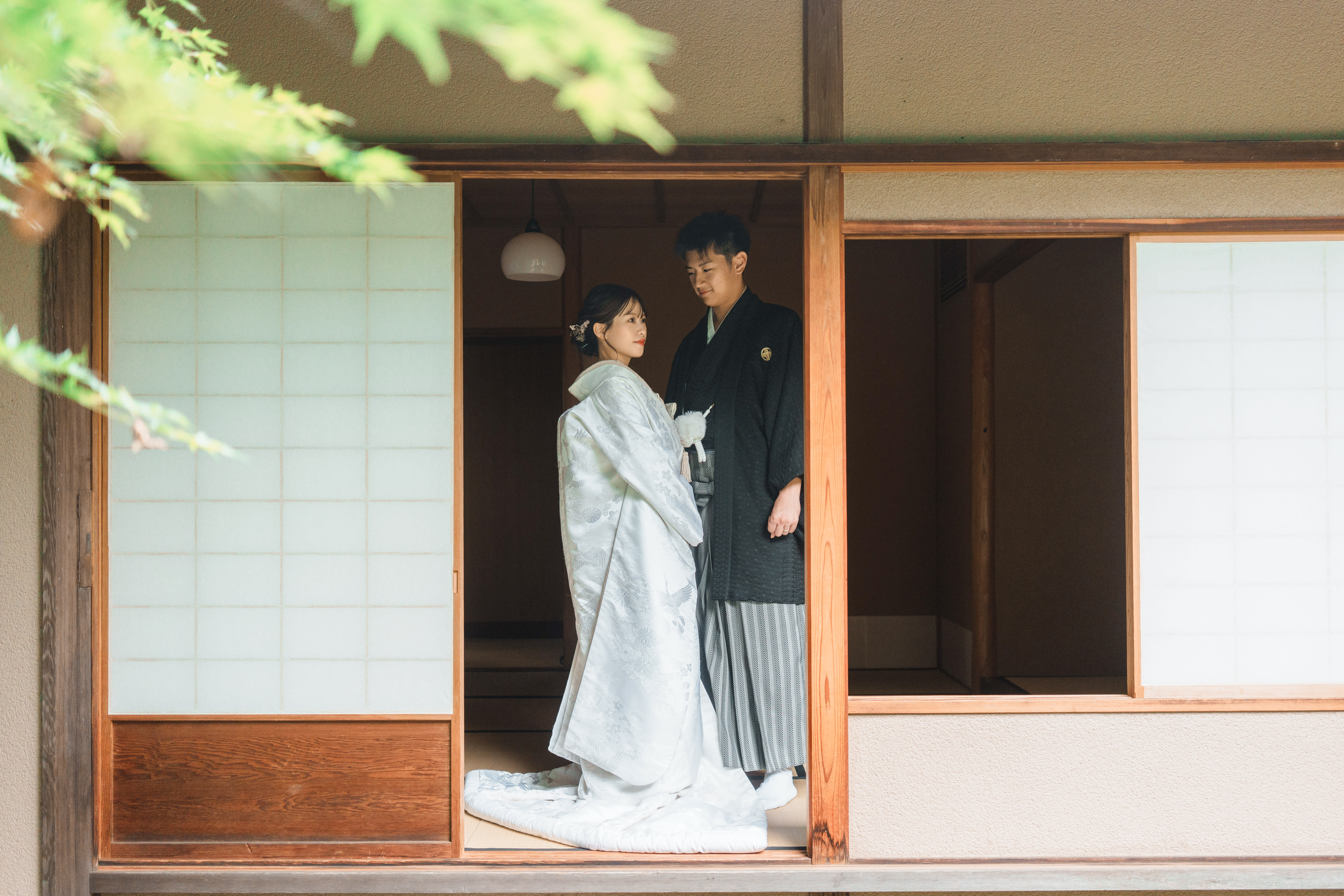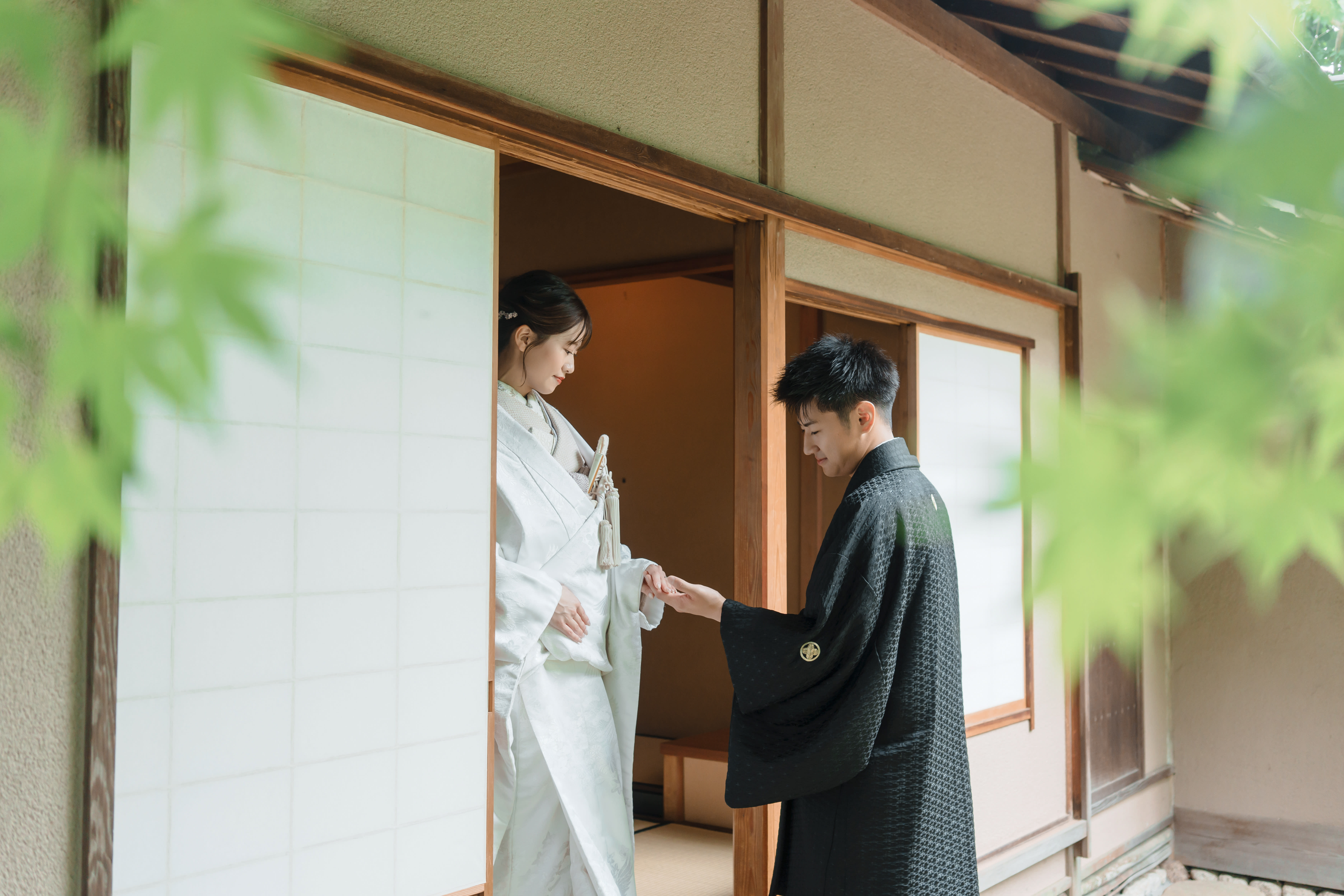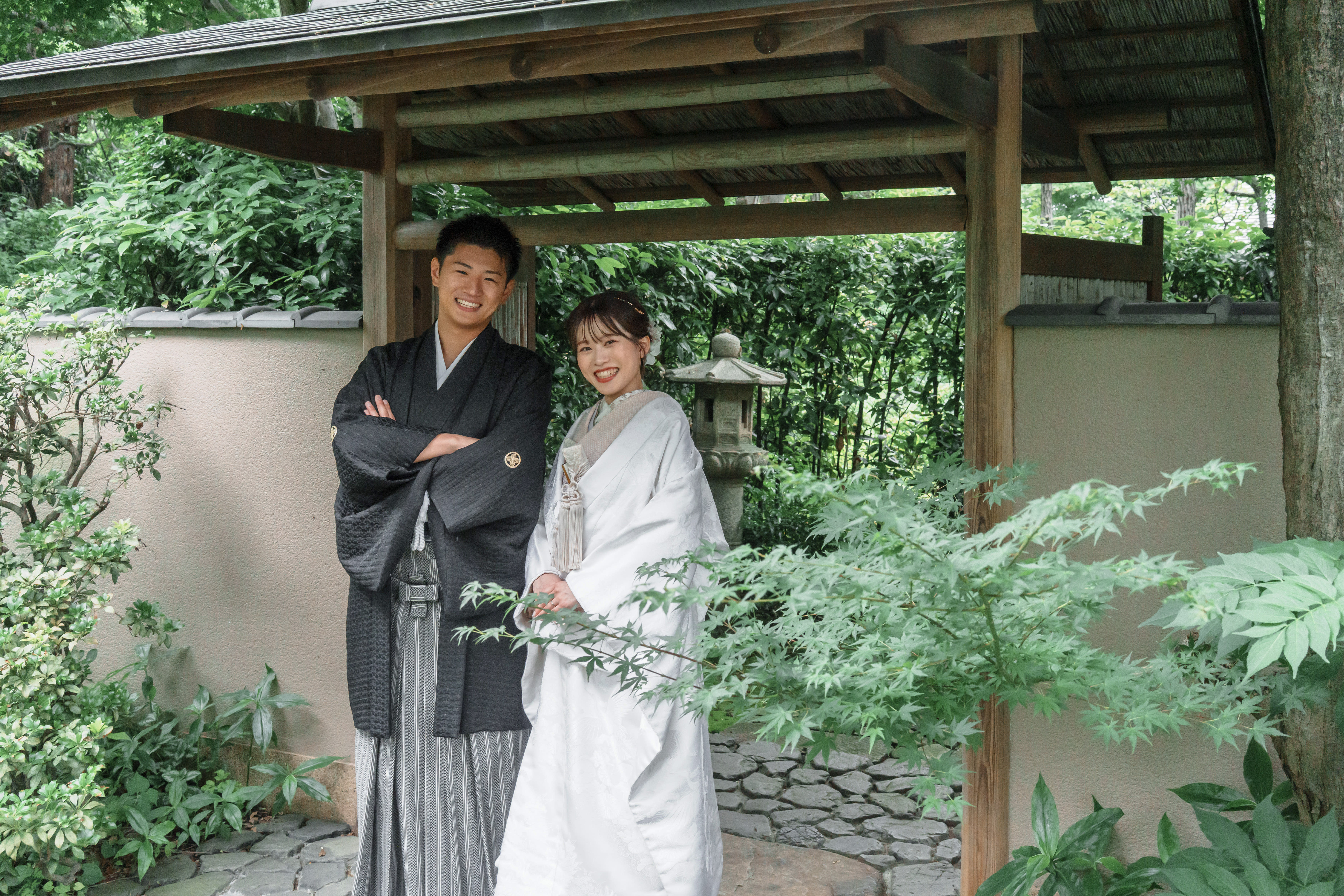 本格日本庭園を再現したスタジオで撮る 和装の結婚写真
