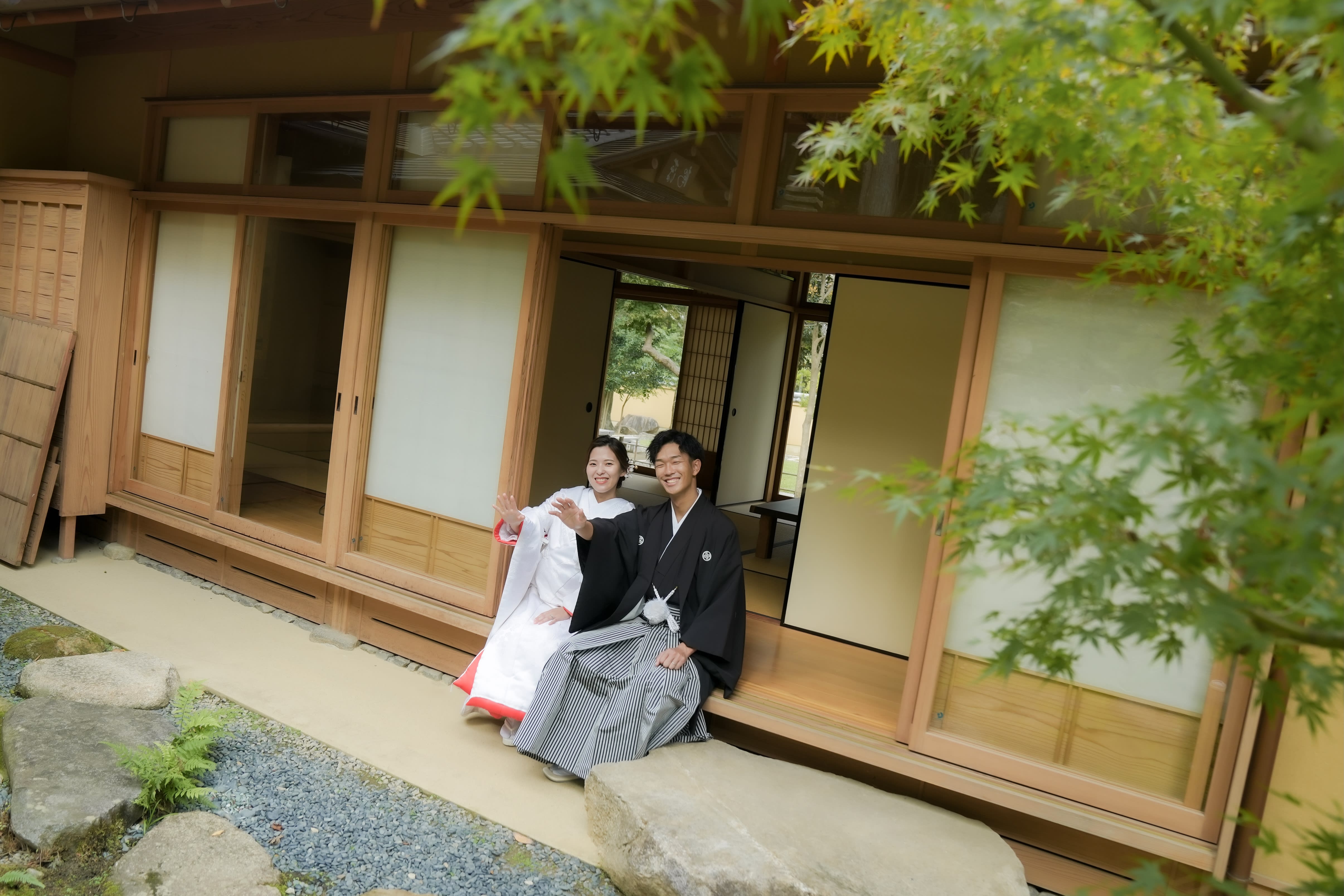 本格日本庭園を再現したスタジオで撮る 和装の結婚写真