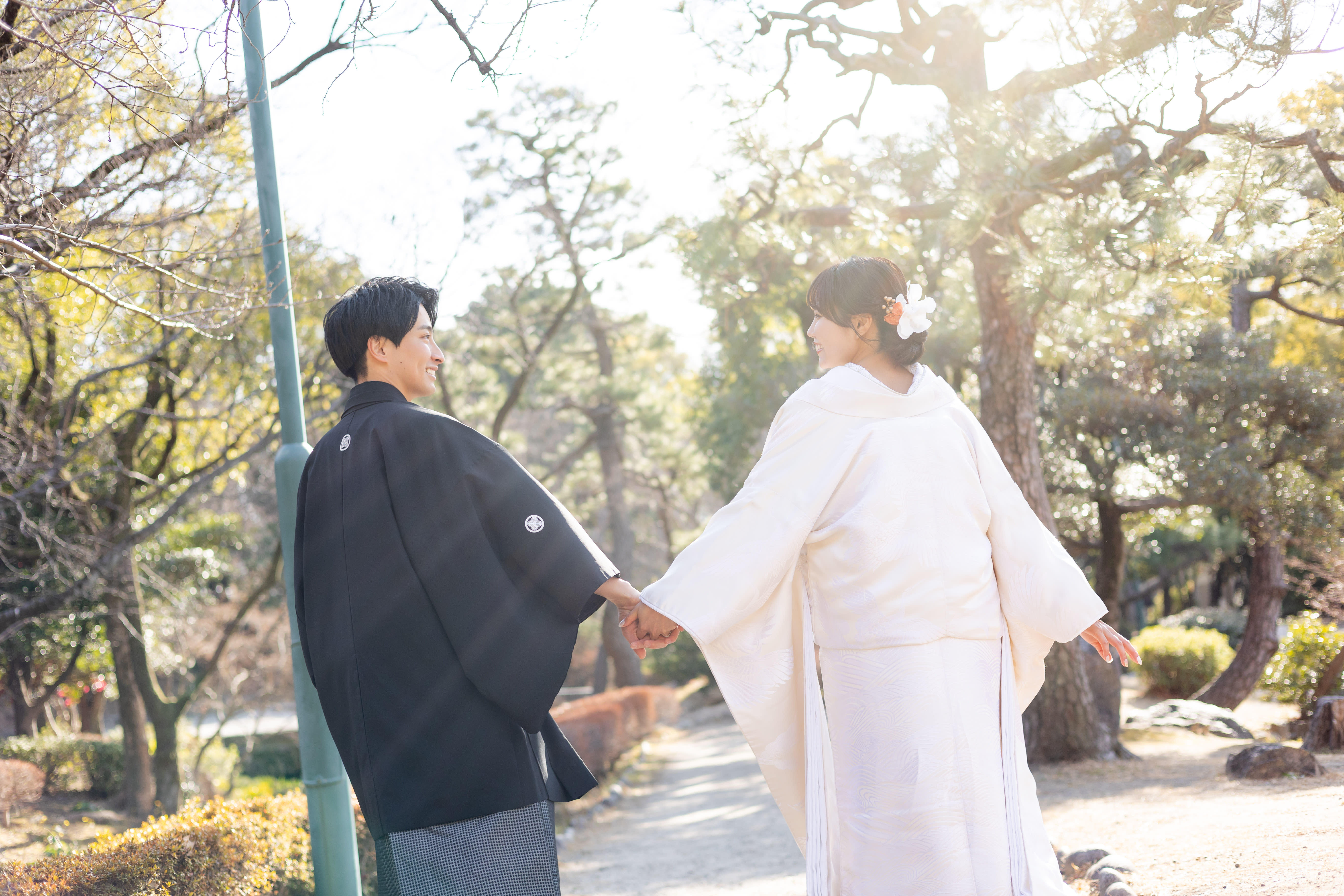 本格日本庭園を再現したスタジオで撮る 和装の結婚写真