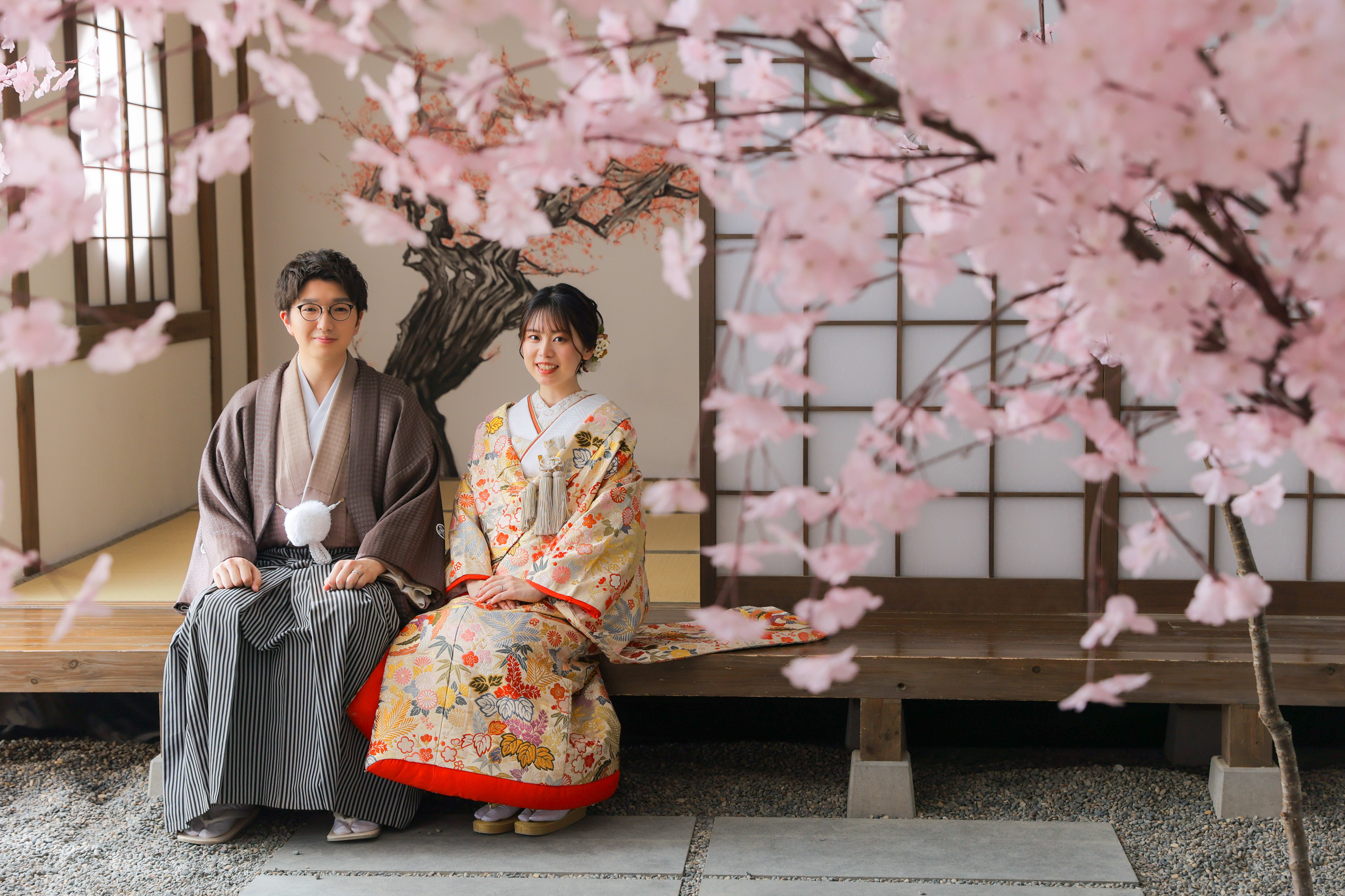 本格日本庭園を再現したスタジオで撮る 和装の結婚写真