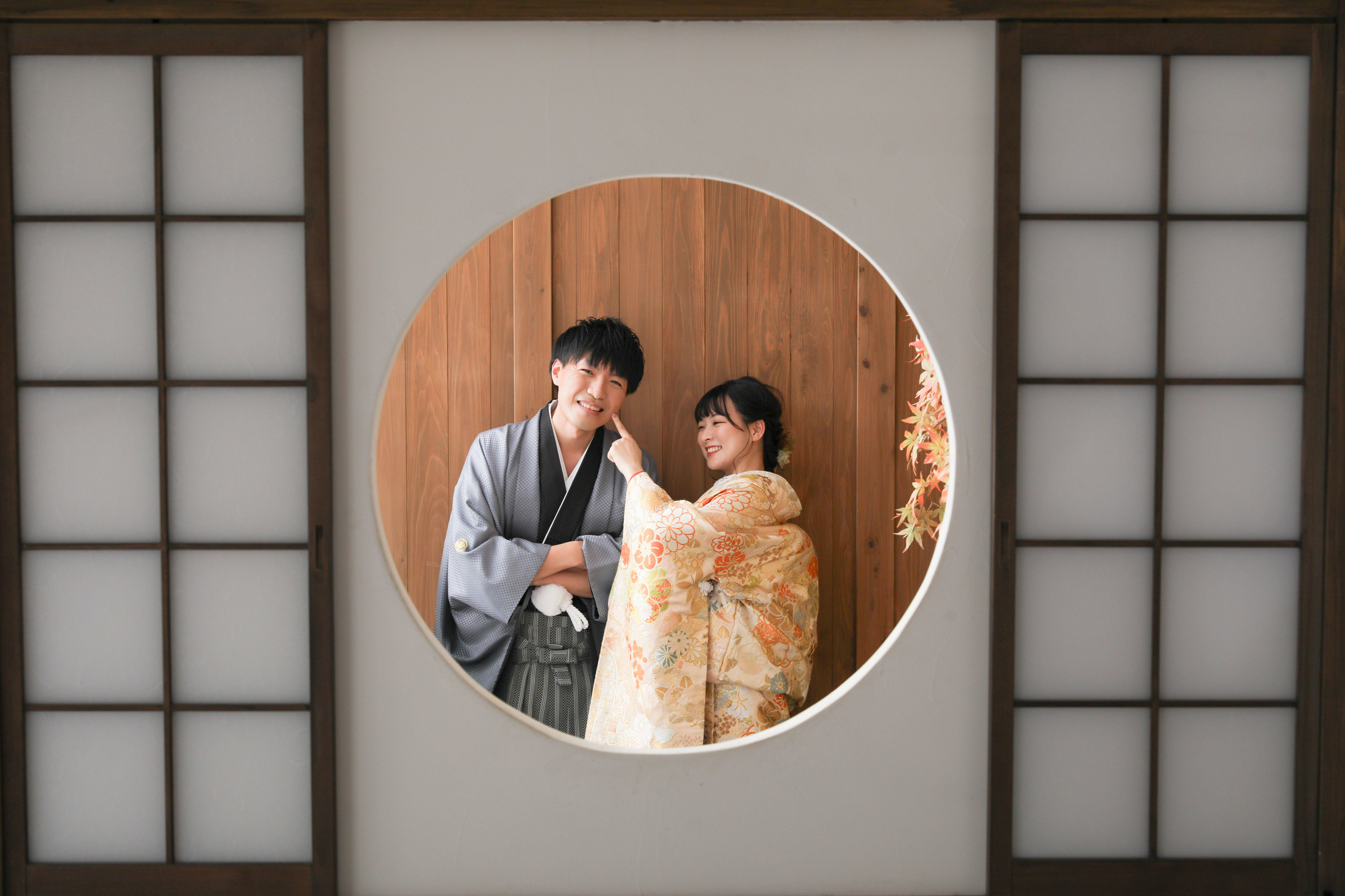 本格日本庭園を再現したスタジオで撮る 和装の結婚写真