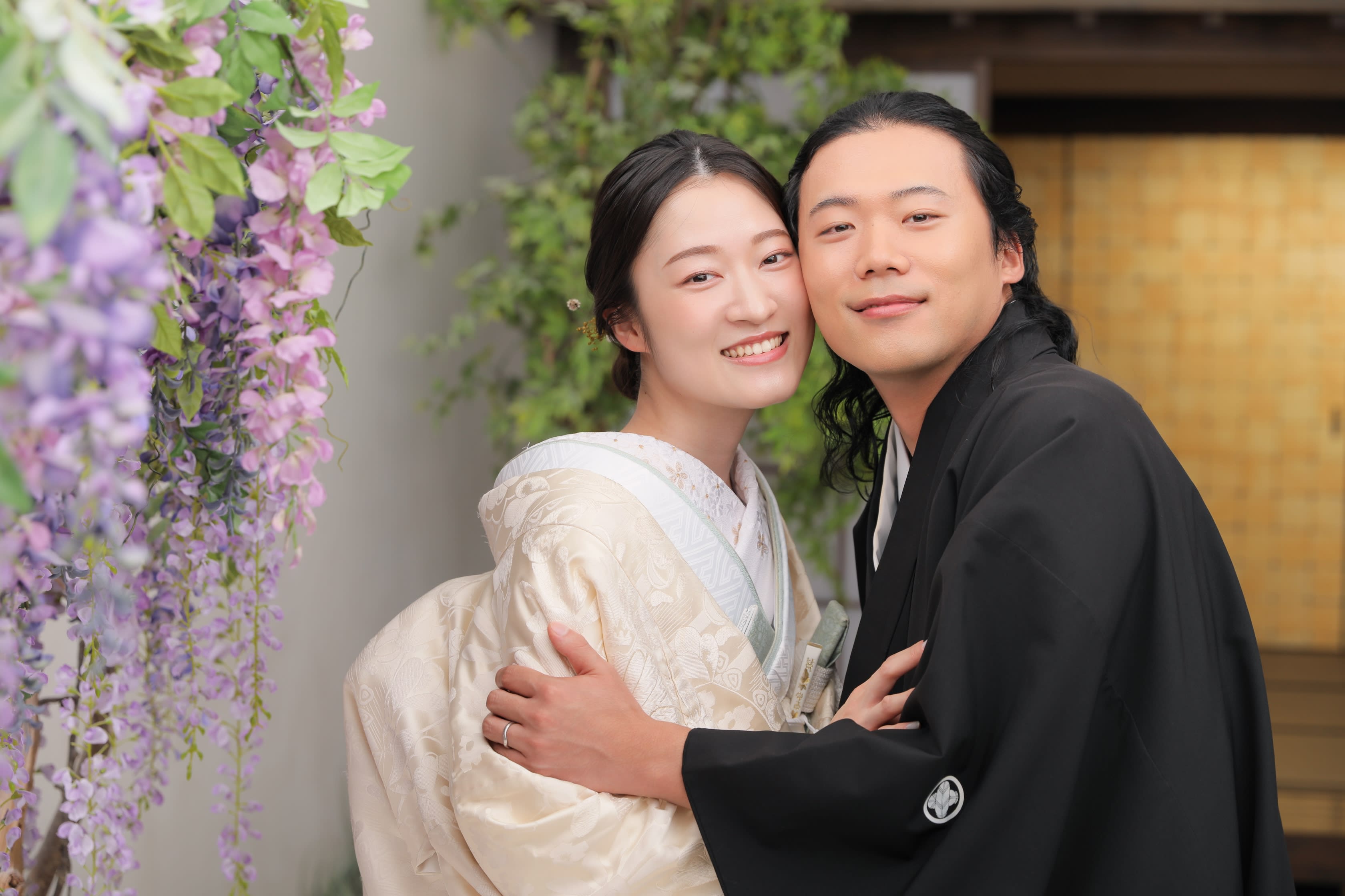 本格日本庭園を再現したスタジオで撮る 和装の結婚写真