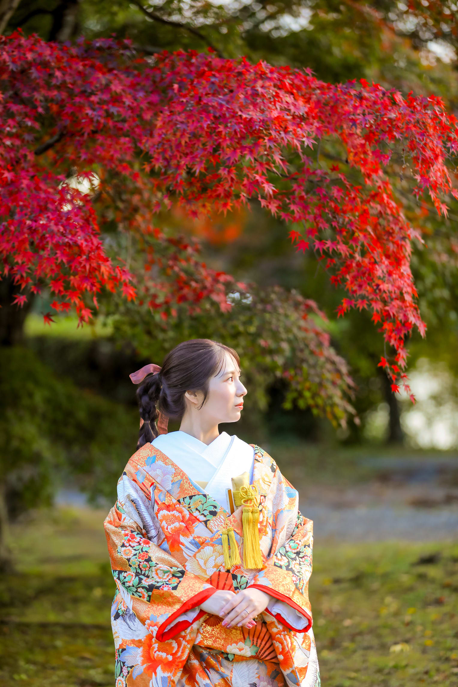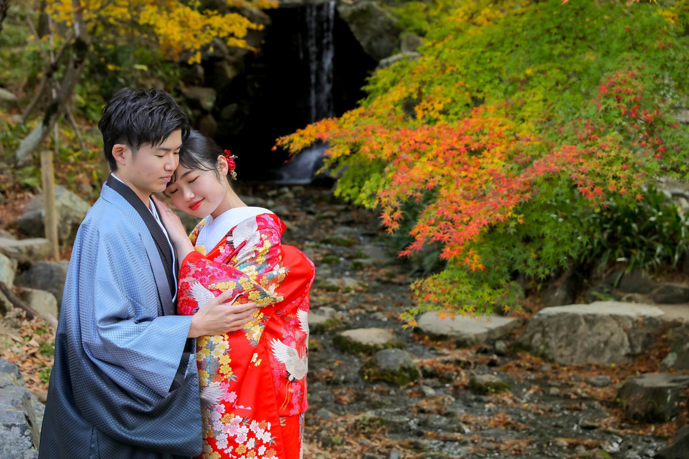 本格日本庭園を再現したスタジオで撮る 和装の結婚写真