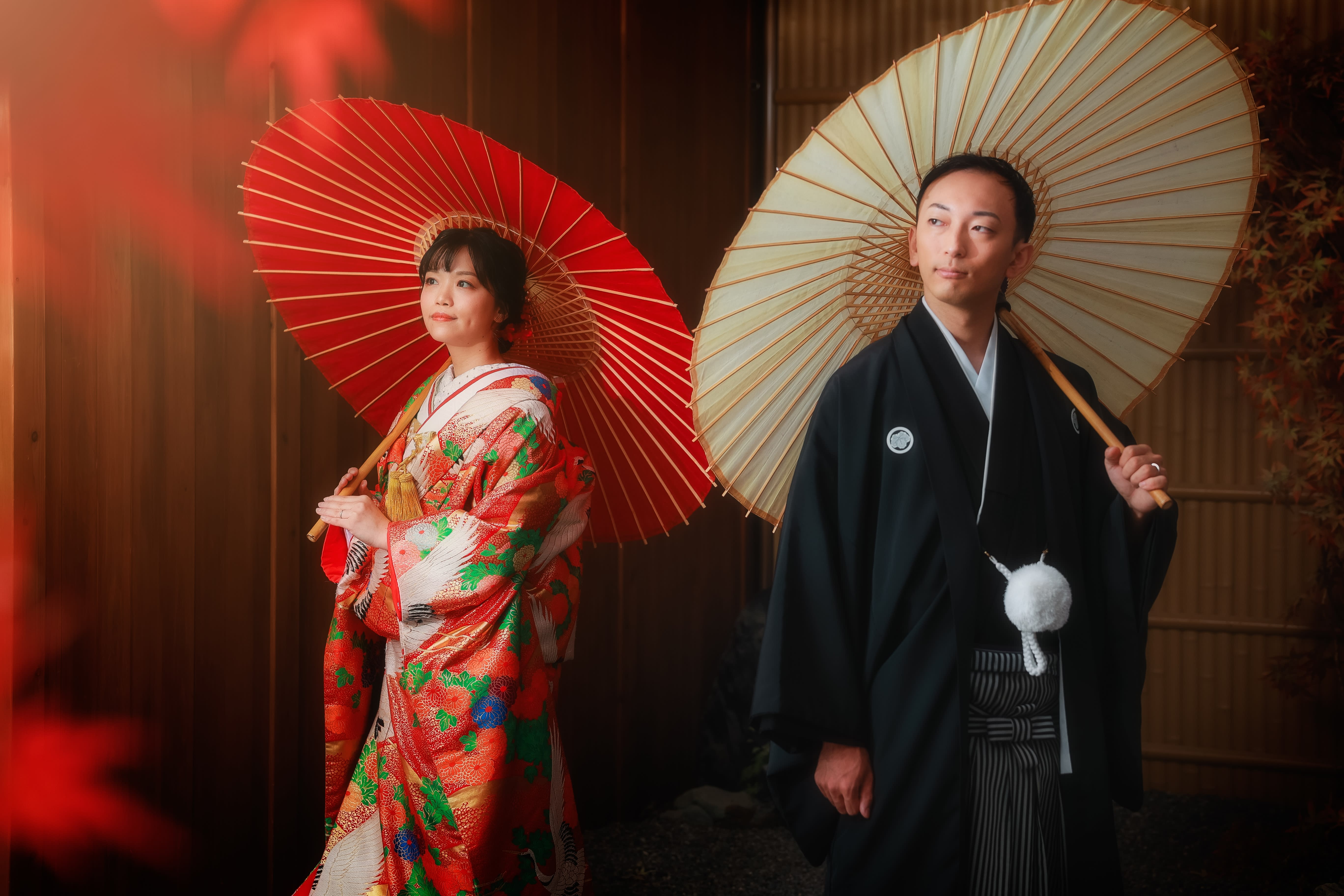 本格日本庭園を再現したスタジオで撮る 和装の結婚写真