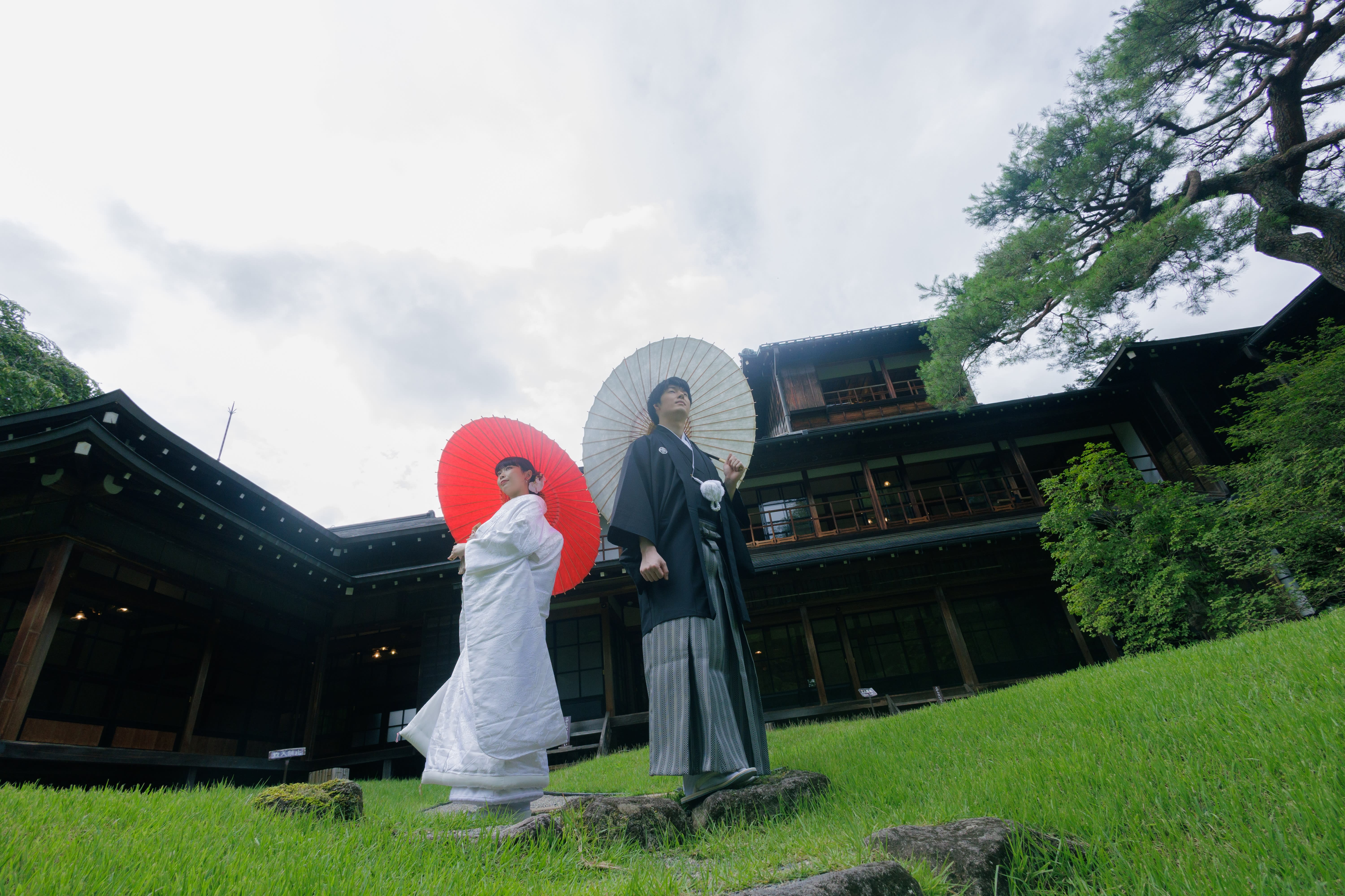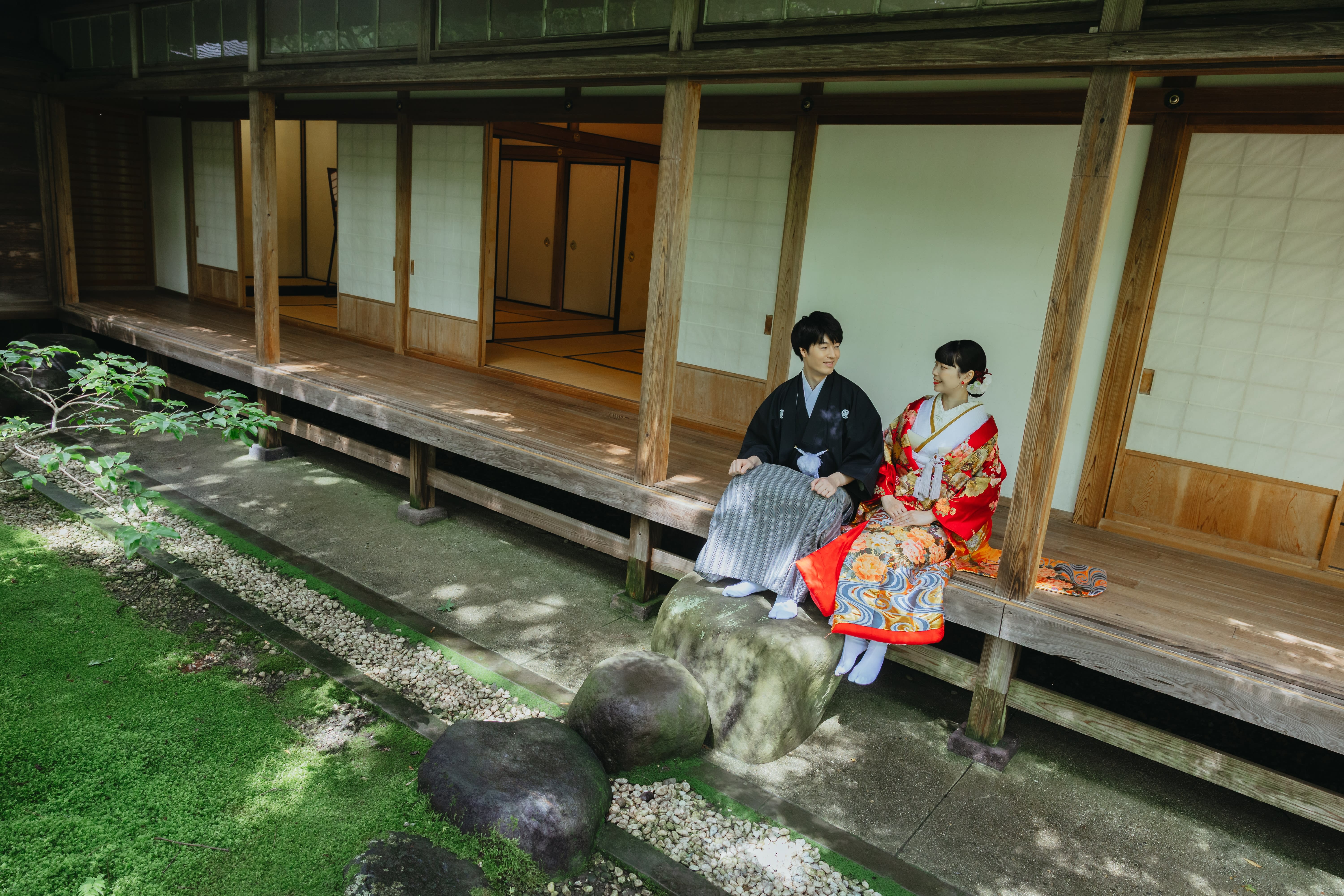 本格日本庭園を再現したスタジオで撮る 和装の結婚写真