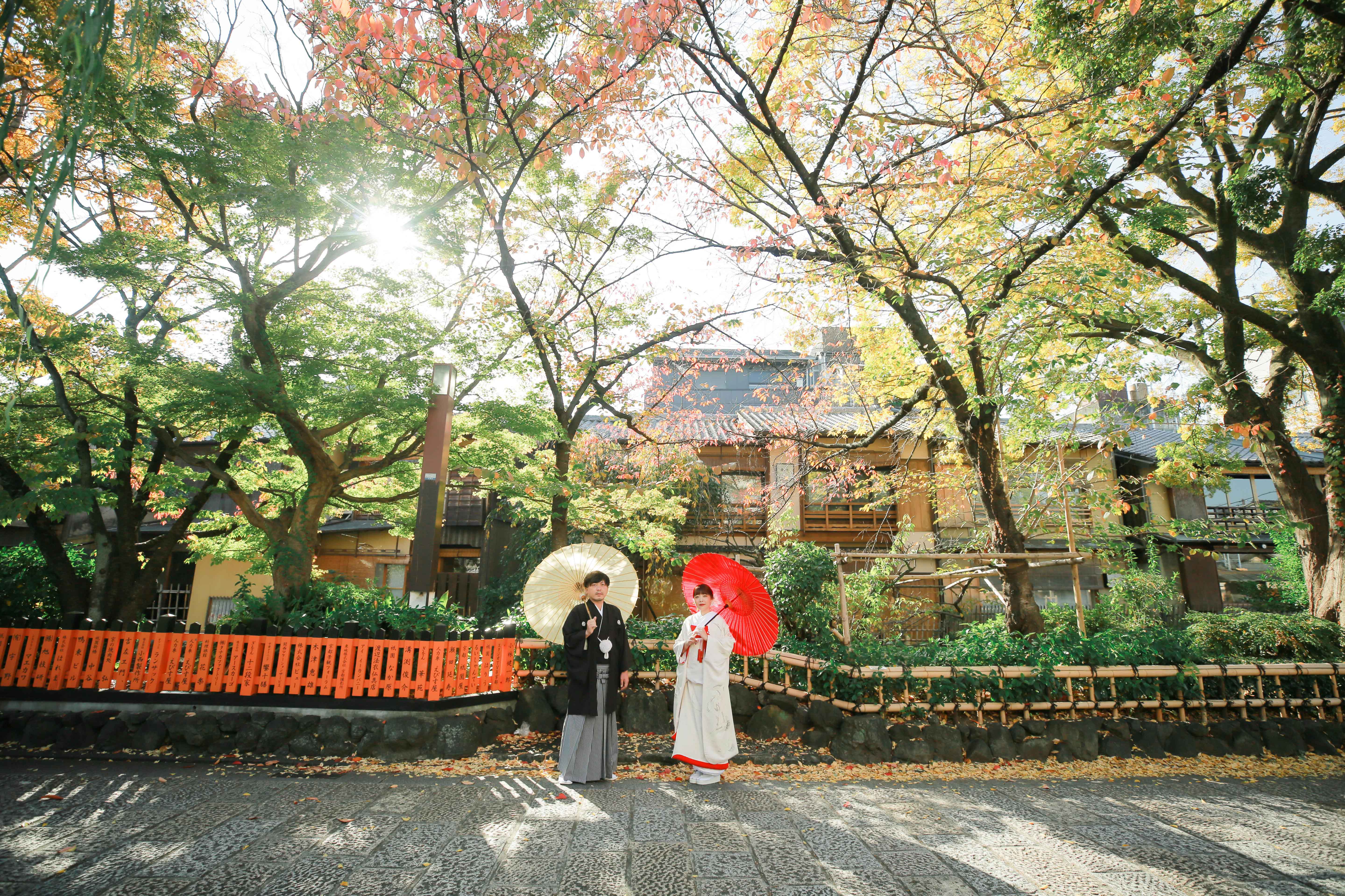 本格日本庭園を再現したスタジオで撮る 和装の結婚写真