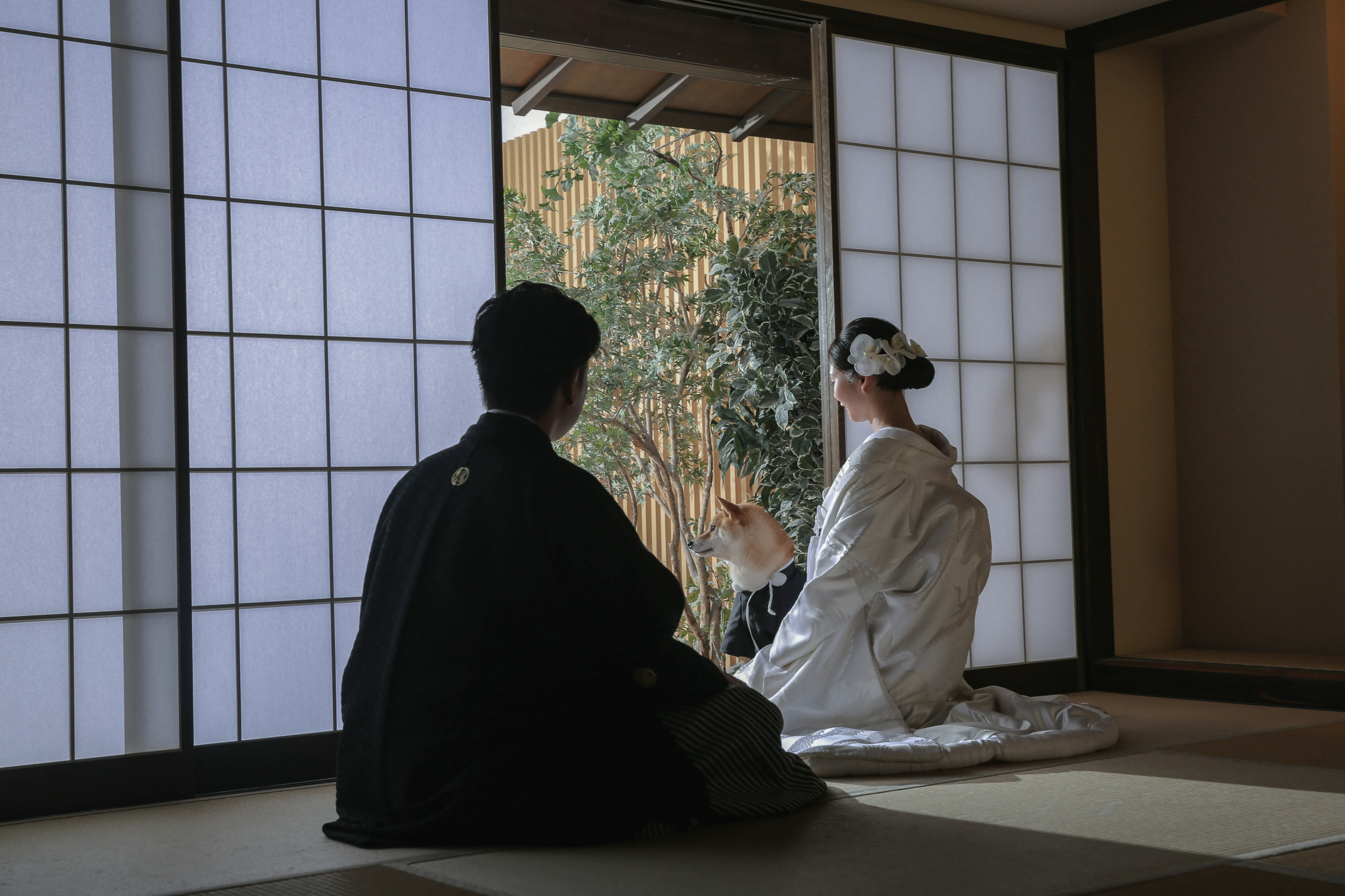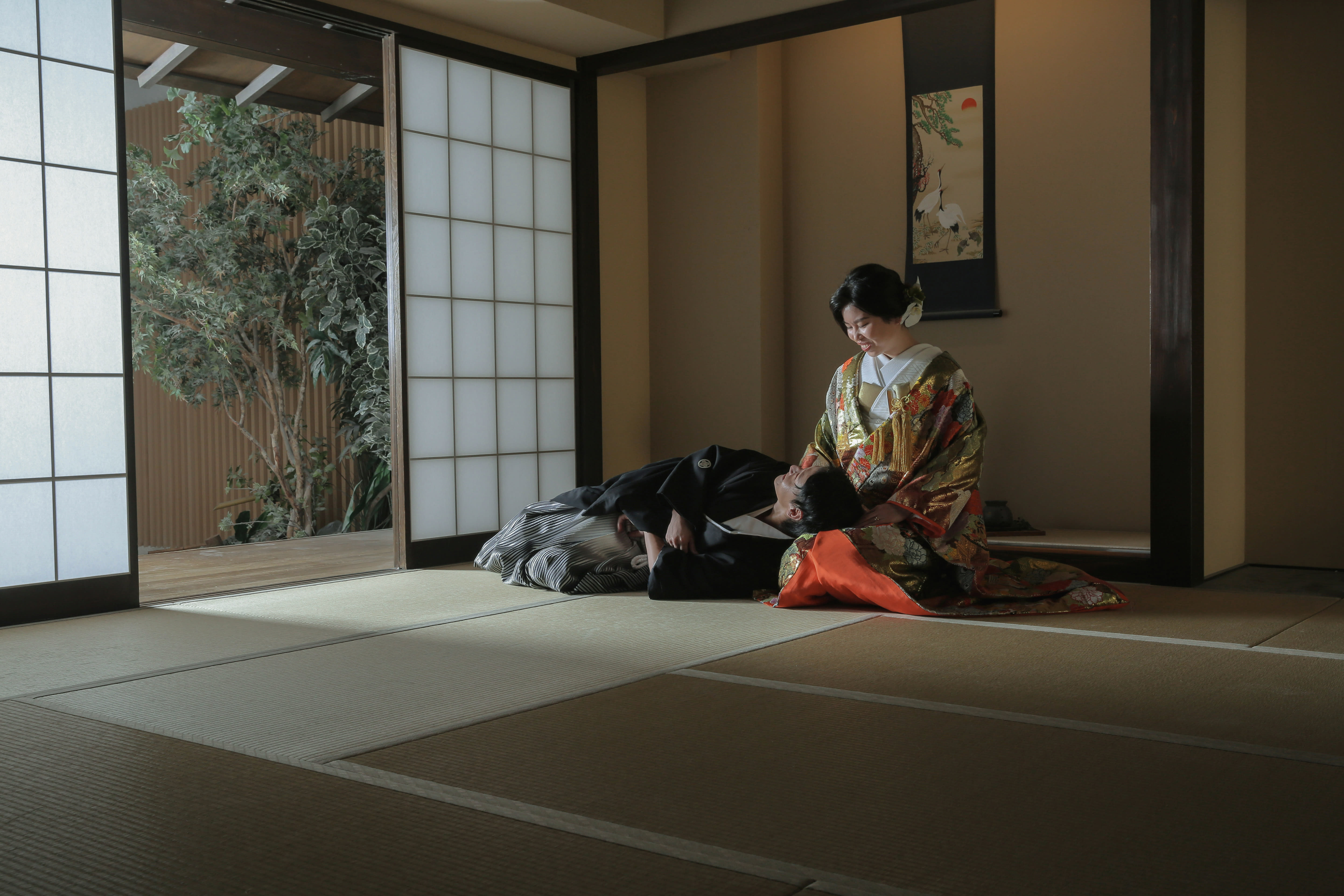 本格日本庭園を再現したスタジオで撮る 和装の結婚写真