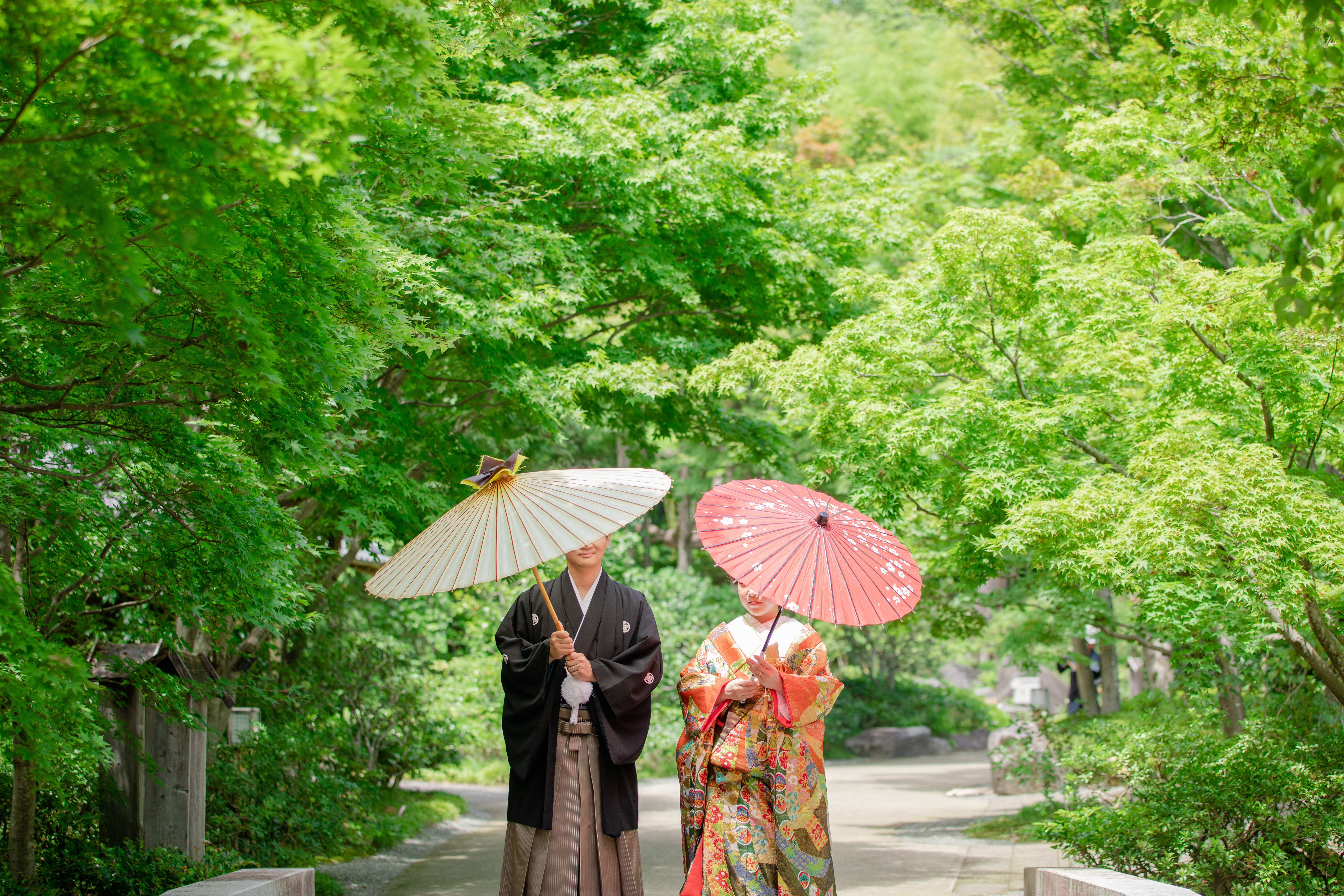 本格日本庭園を再現したスタジオで撮る 和装の結婚写真