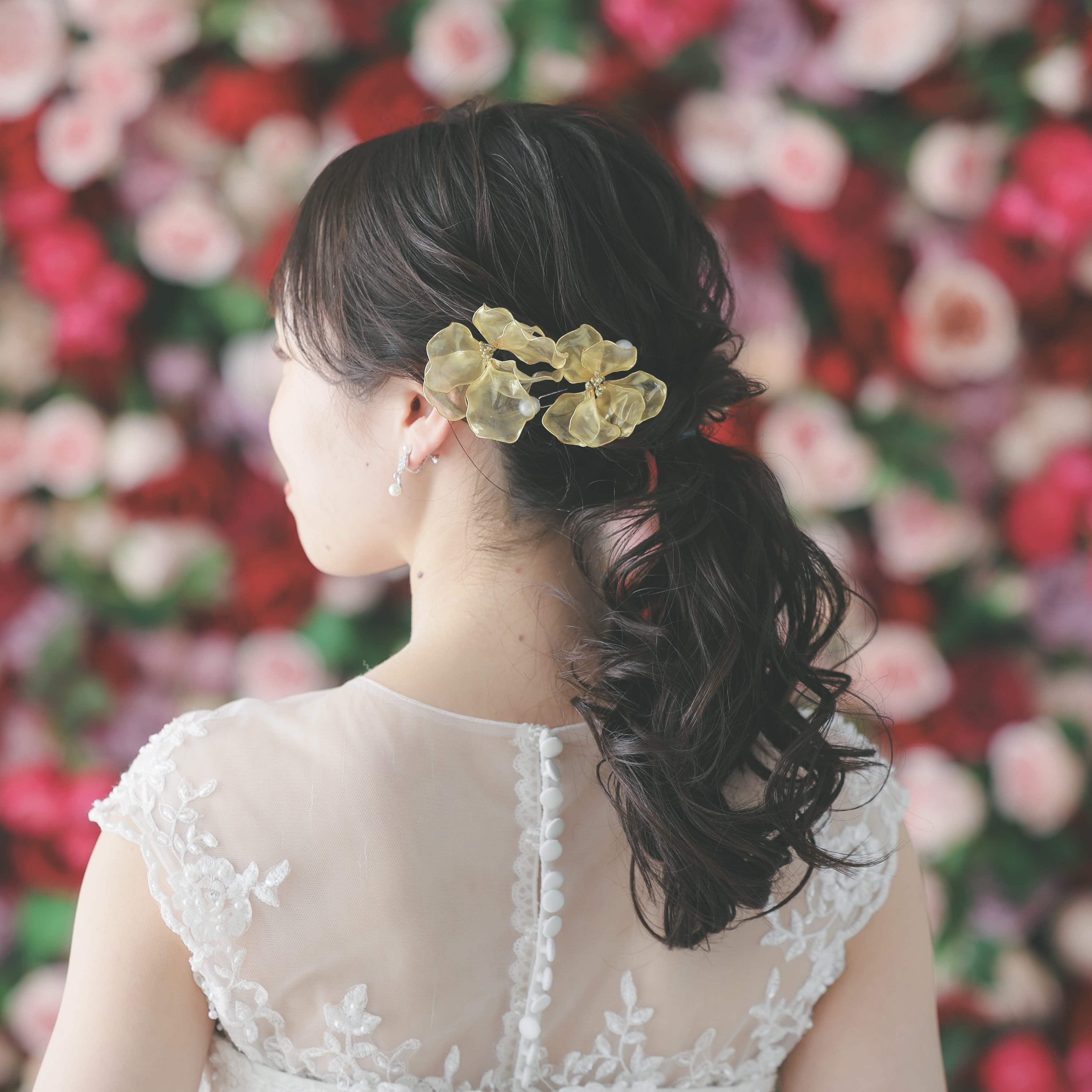 一面お花の壁が登場!新宿店ハウススタジオで撮影する洋装ウェディングフォトプラン