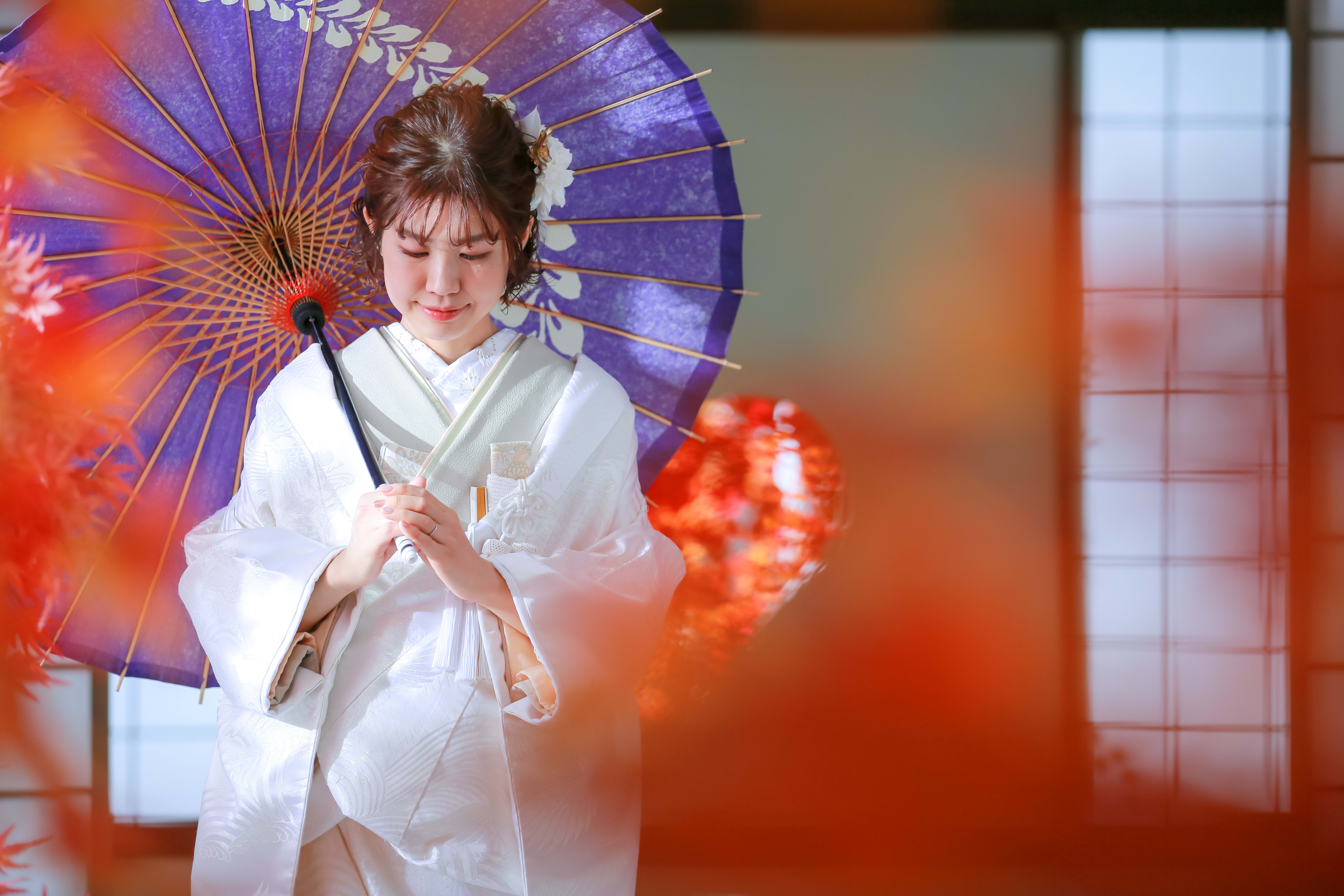 本格日本庭園を再現したスタジオで撮る 和装の結婚写真