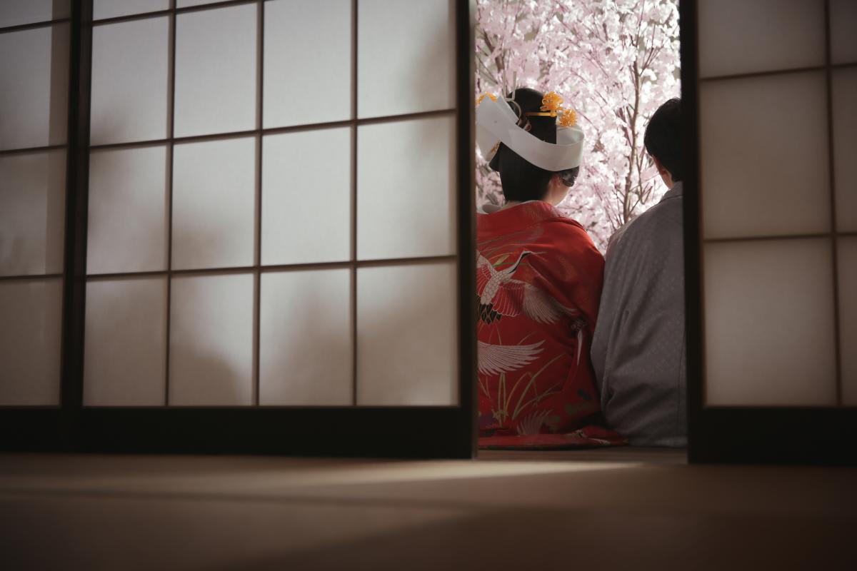 本格日本庭園を再現したスタジオで撮る 和装の結婚写真