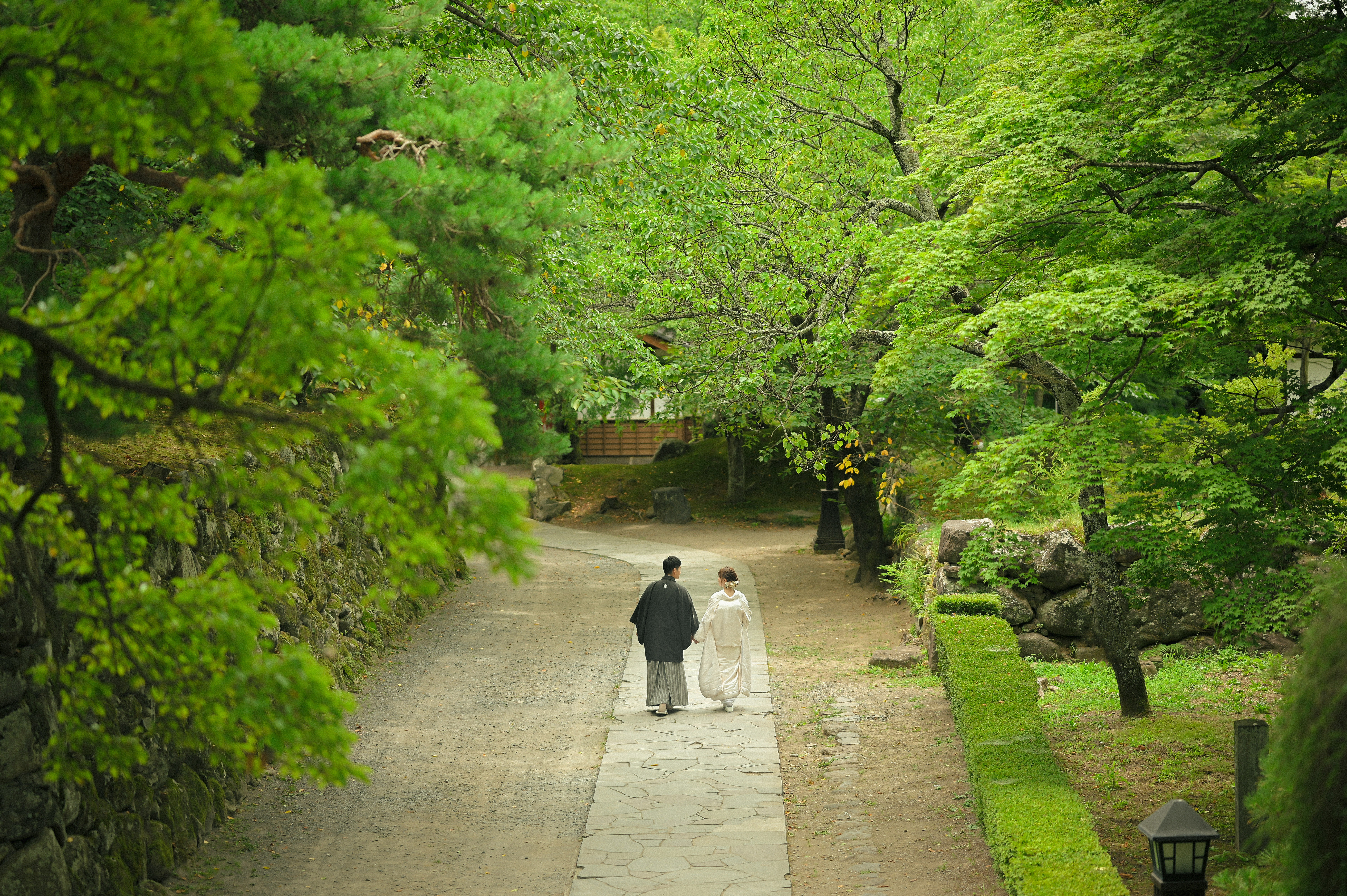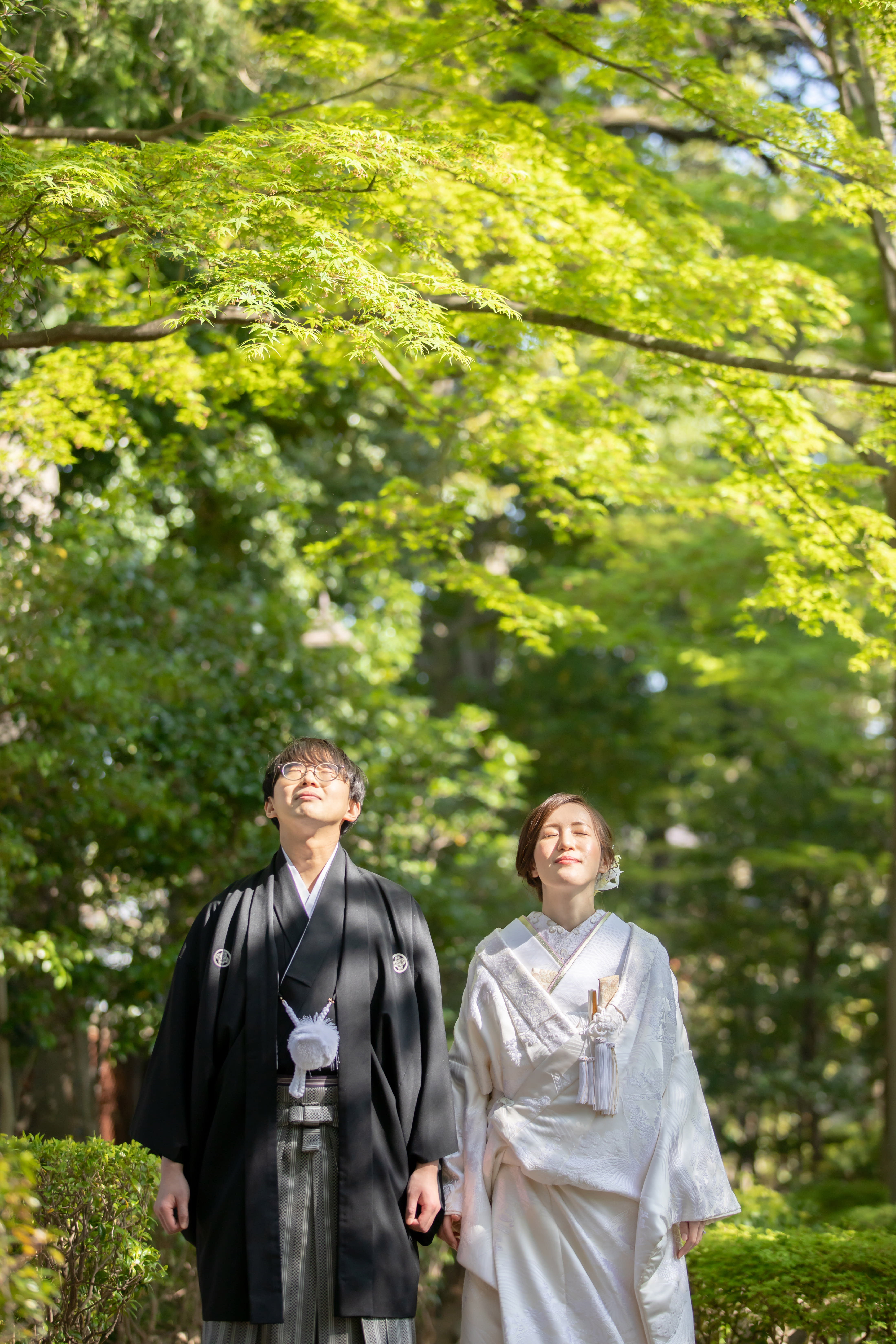 本格日本庭園を再現したスタジオで撮る 和装の結婚写真