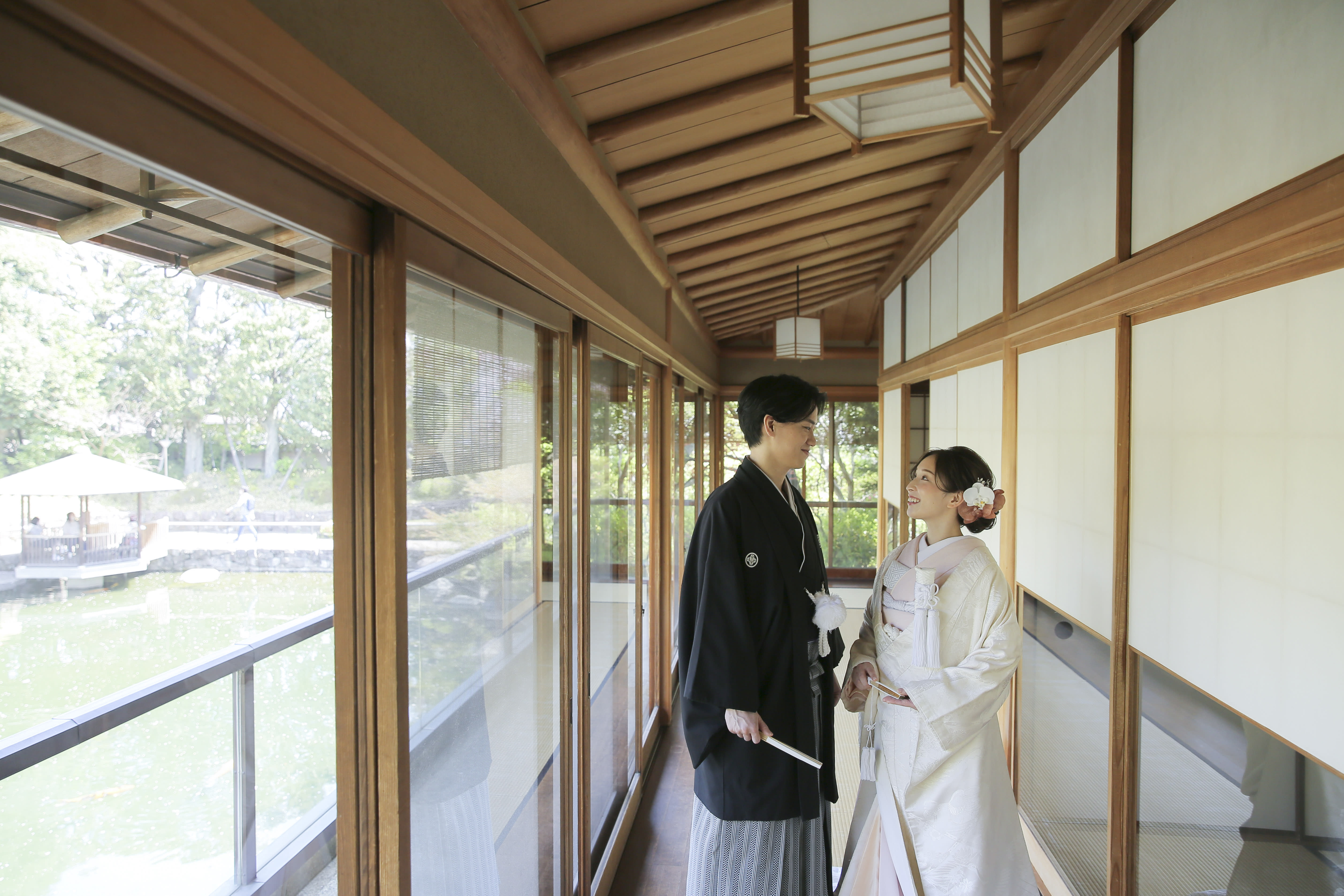 本格日本庭園を再現したスタジオで撮る 和装の結婚写真