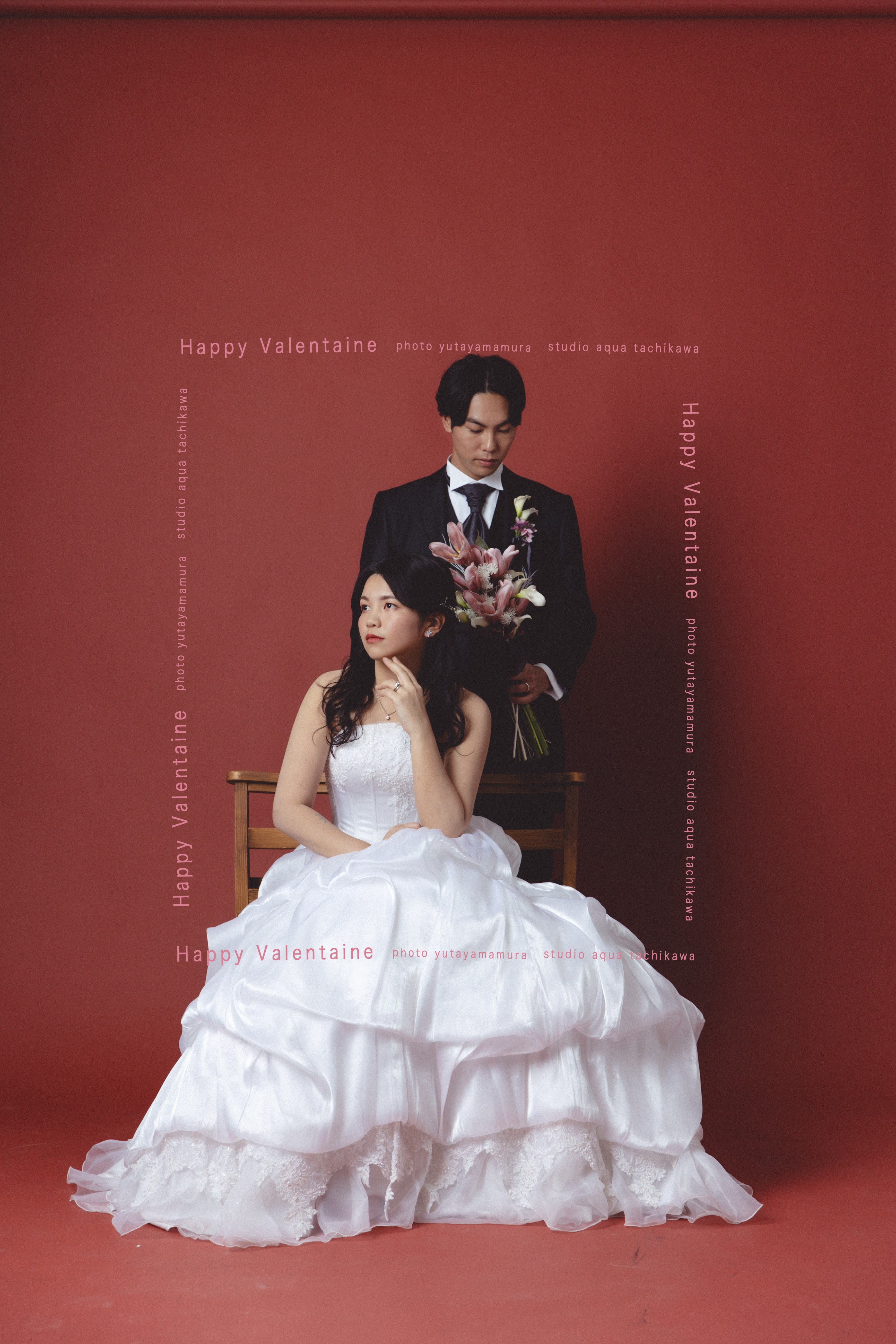 一面お花の壁が登場! 洋館風の立川店スタジオで撮影する洋装ウェディングフォトプラン