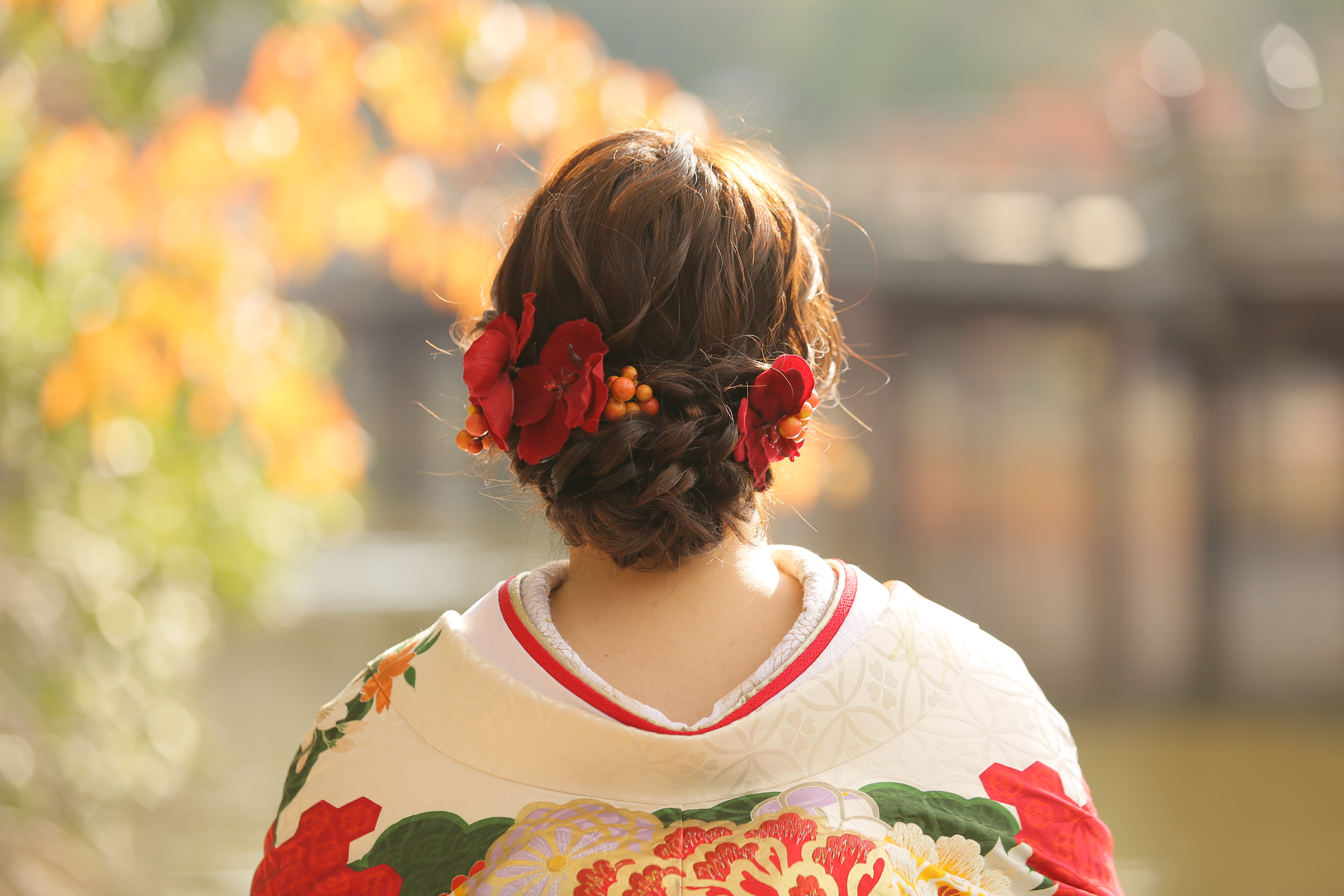 本格日本庭園を再現したスタジオで撮る 和装の結婚写真