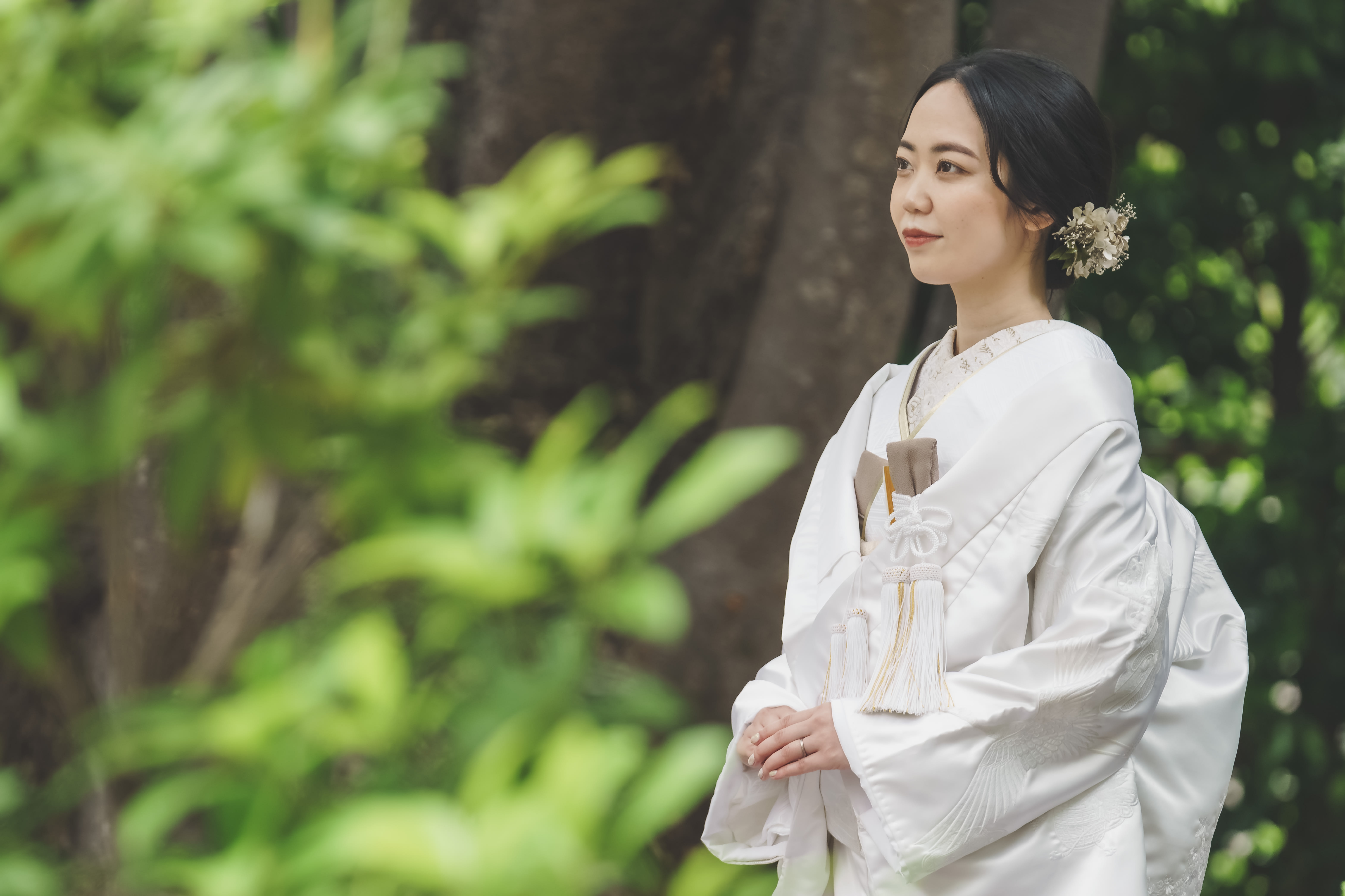 本格日本庭園を再現したスタジオで撮る 和装の結婚写真