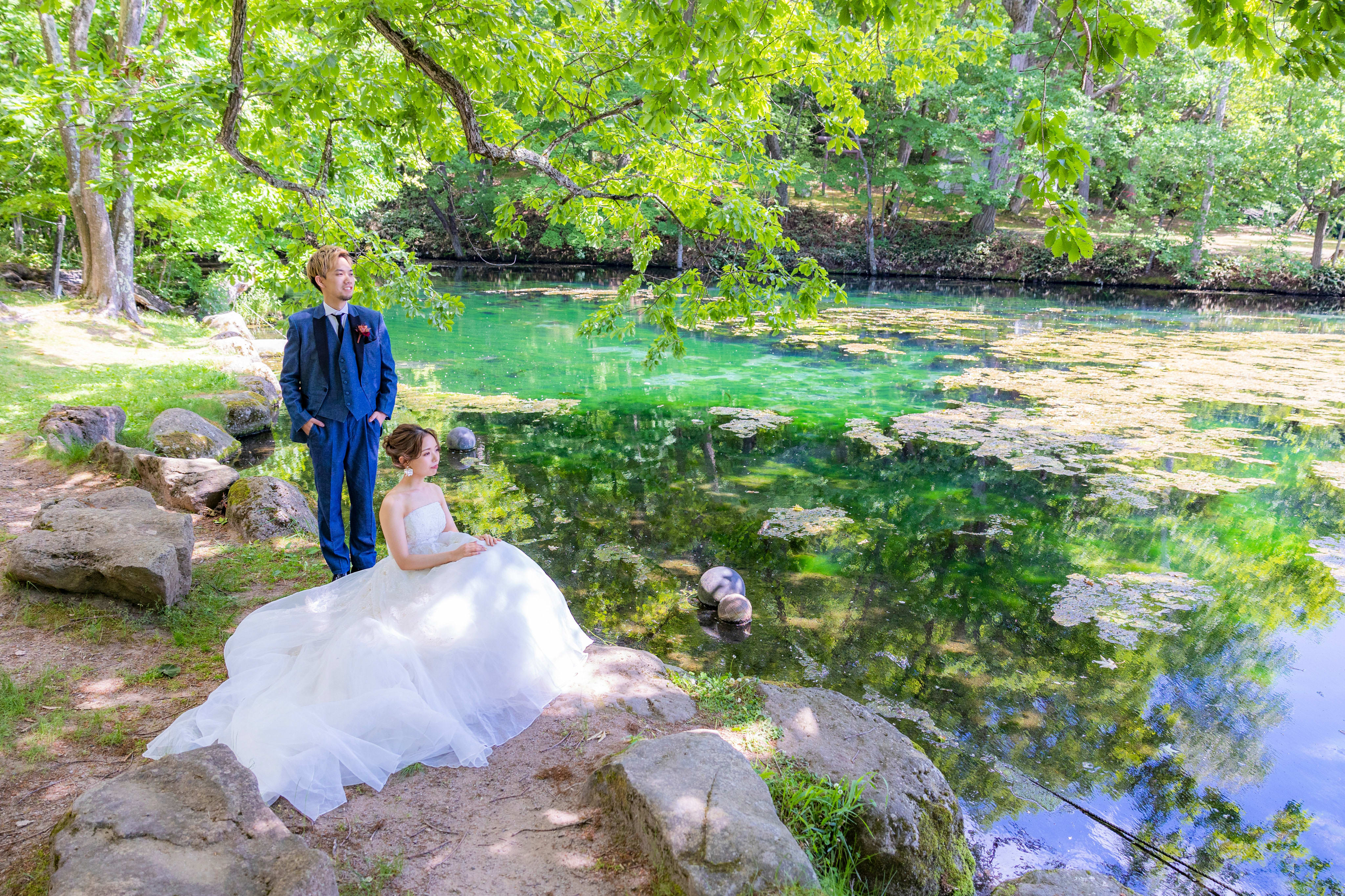 本格日本庭園を再現したスタジオで撮る 和装の結婚写真