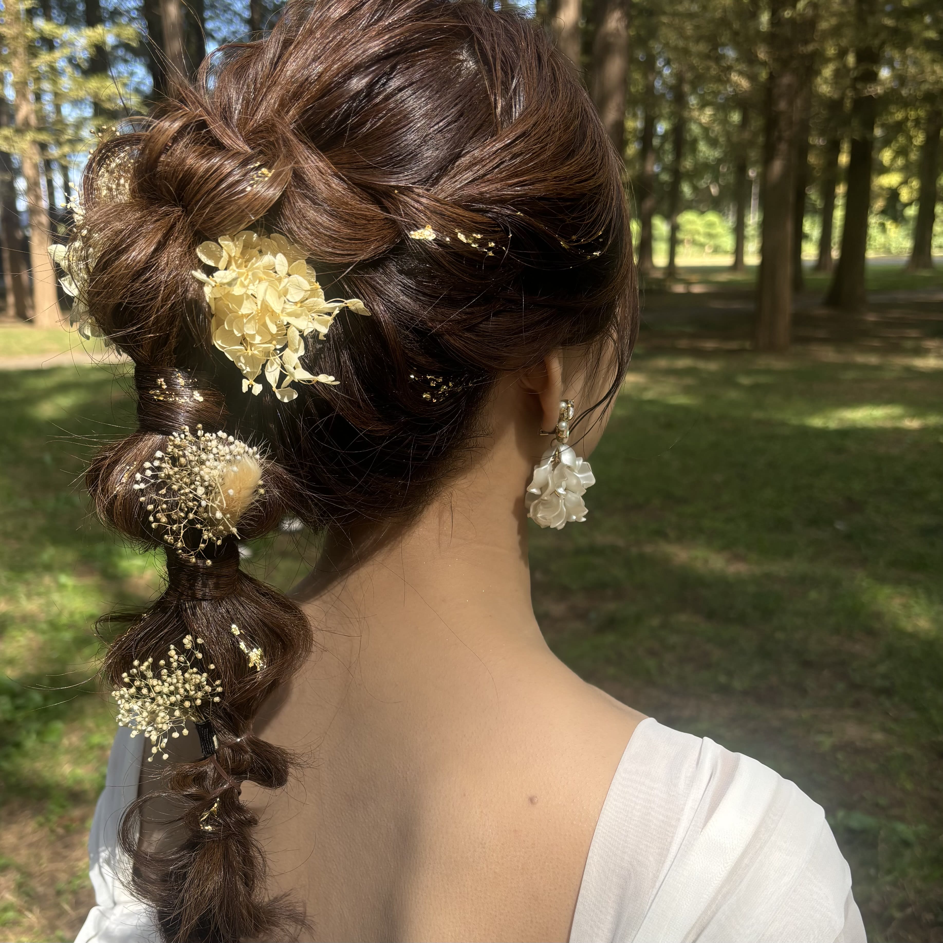 新婦さんこんにちは! ヘアメイクの君島です💄 私は大人かわいい雰囲気を作るのが得意です(^^) 自分のメイクはキレイめメイクが好きですが、、 ふんわりメイク、ナチュラルメイクが得意です!笑 ふわっとかわいいスタイルや可愛過ぎないゆるっとしたスタイルお任せ下さい!! くすみカラーが好きで、髪飾りによく使ってます! ご新婦様に頂いたリクエストを参考にヘアメイクのご提案をさせていただきます☺︎ もちろんご自身に合う色や雰囲気がわからない方も大歓迎です〜 ぜひ可愛くさせてください♪ メイクの雰囲気、ヘアスタイルのご相談お待ちしてます☆